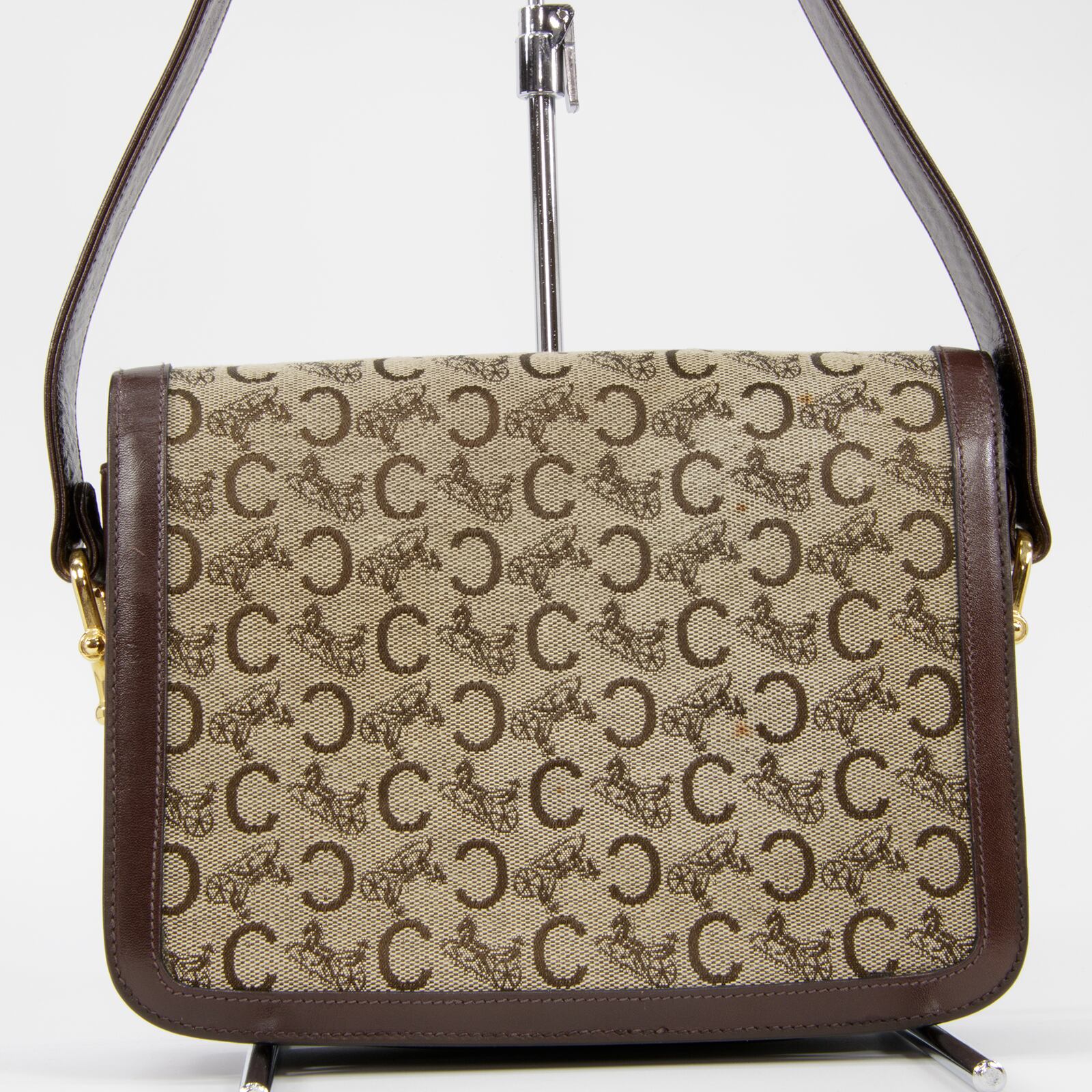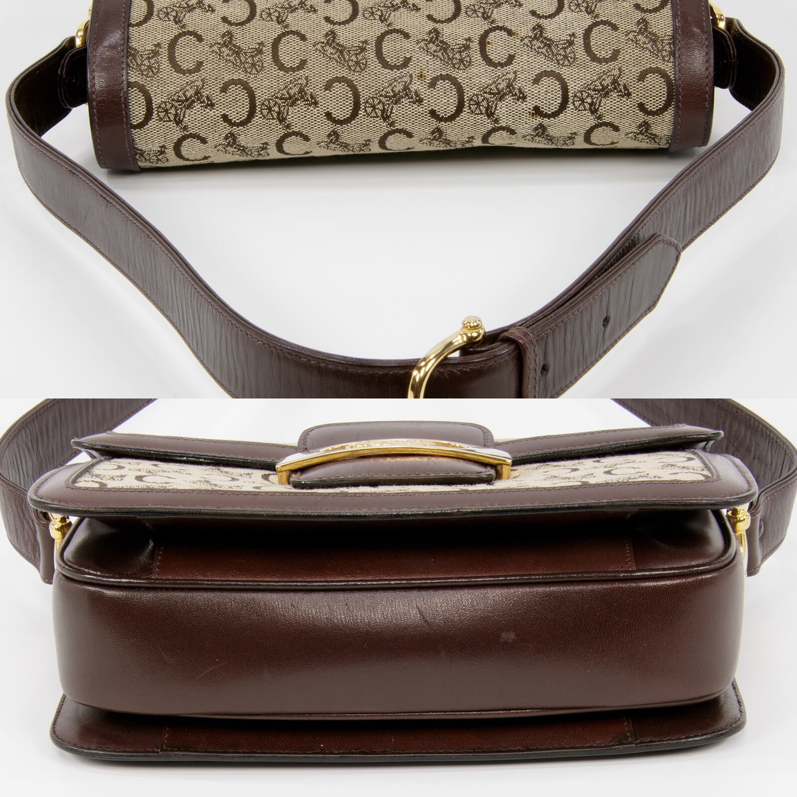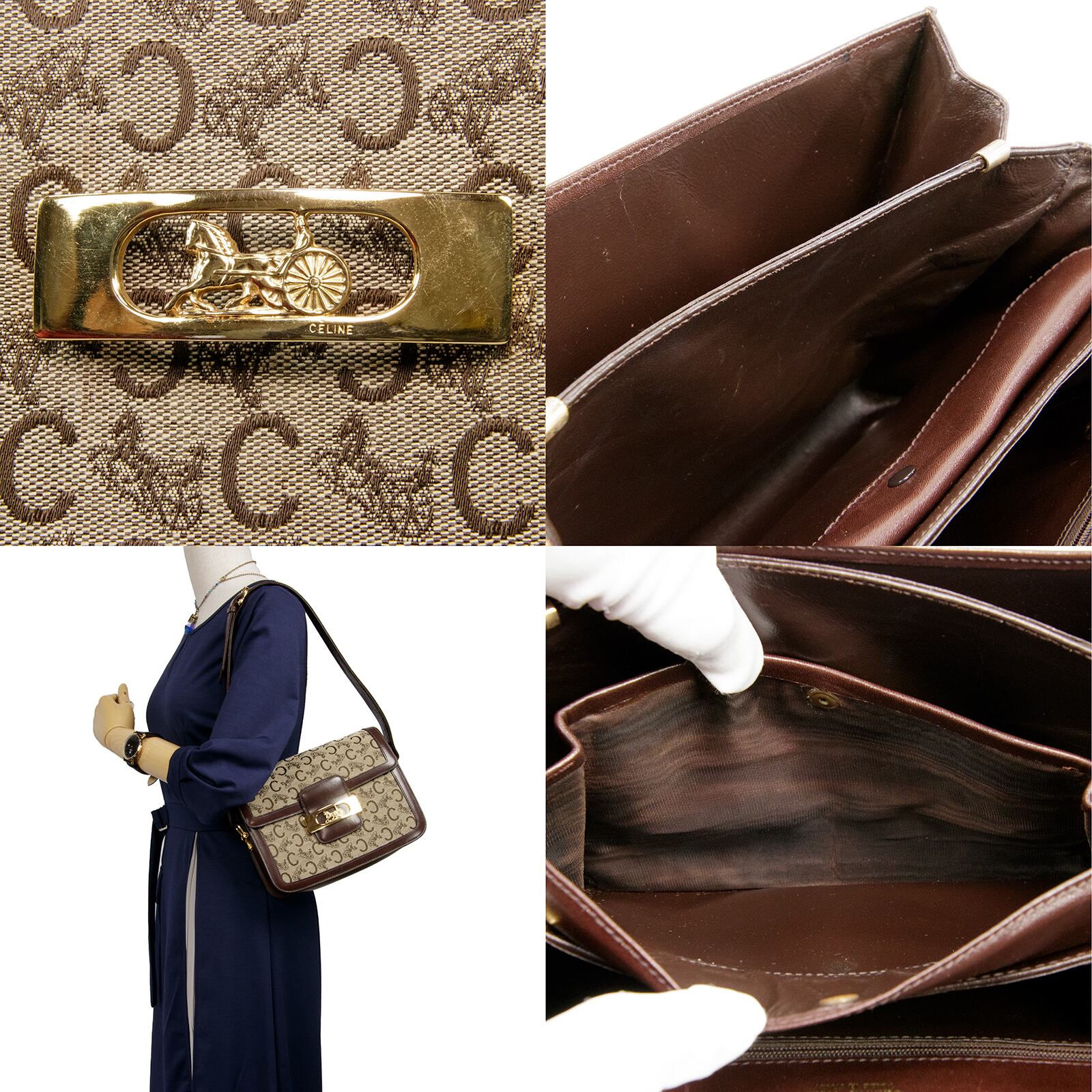 【本物・送料無料・良品】オールドセリーヌ・ショルダーバッグ(Cマカダム・レア・馬車・ヴィンテージ・茶色・鞄・バック・L077)