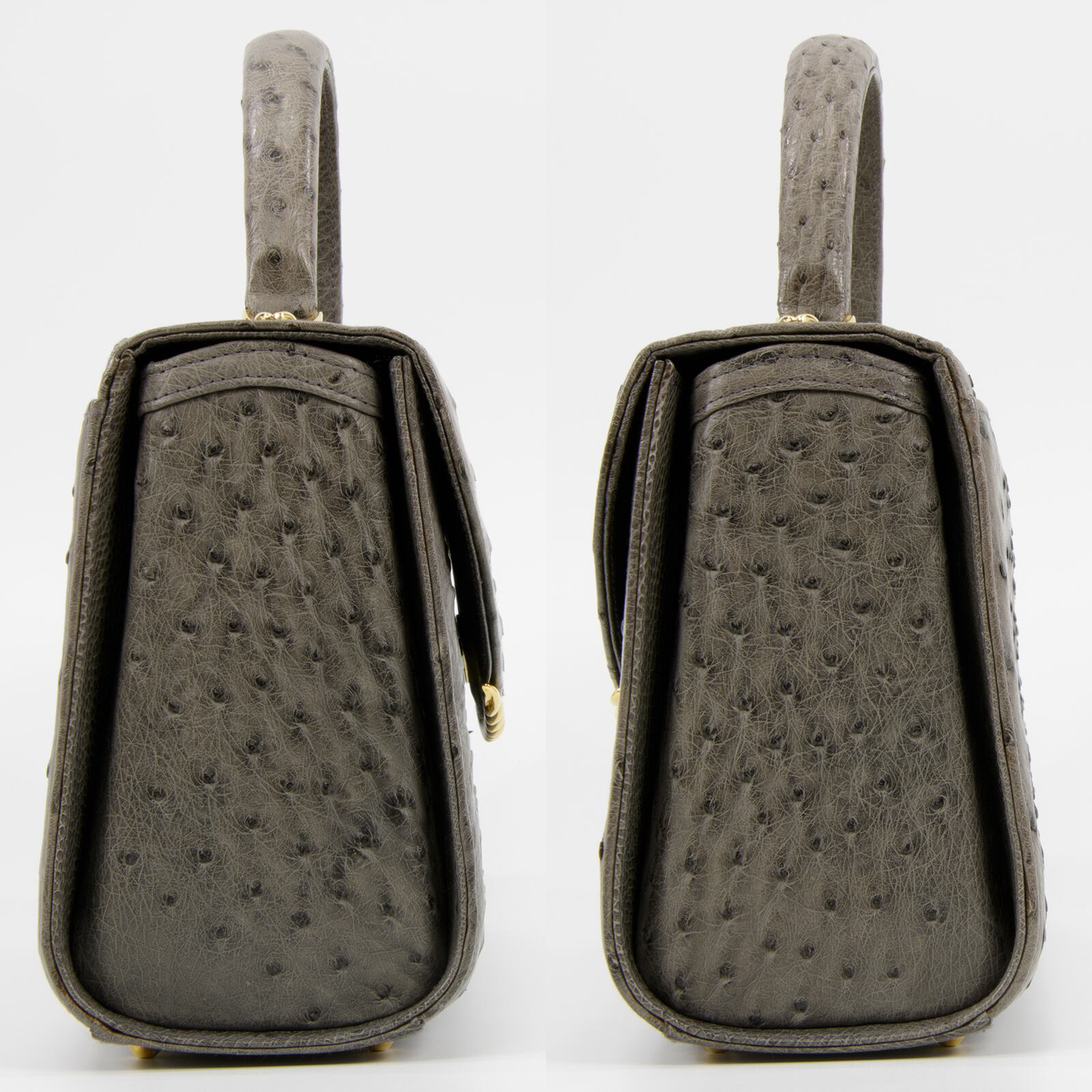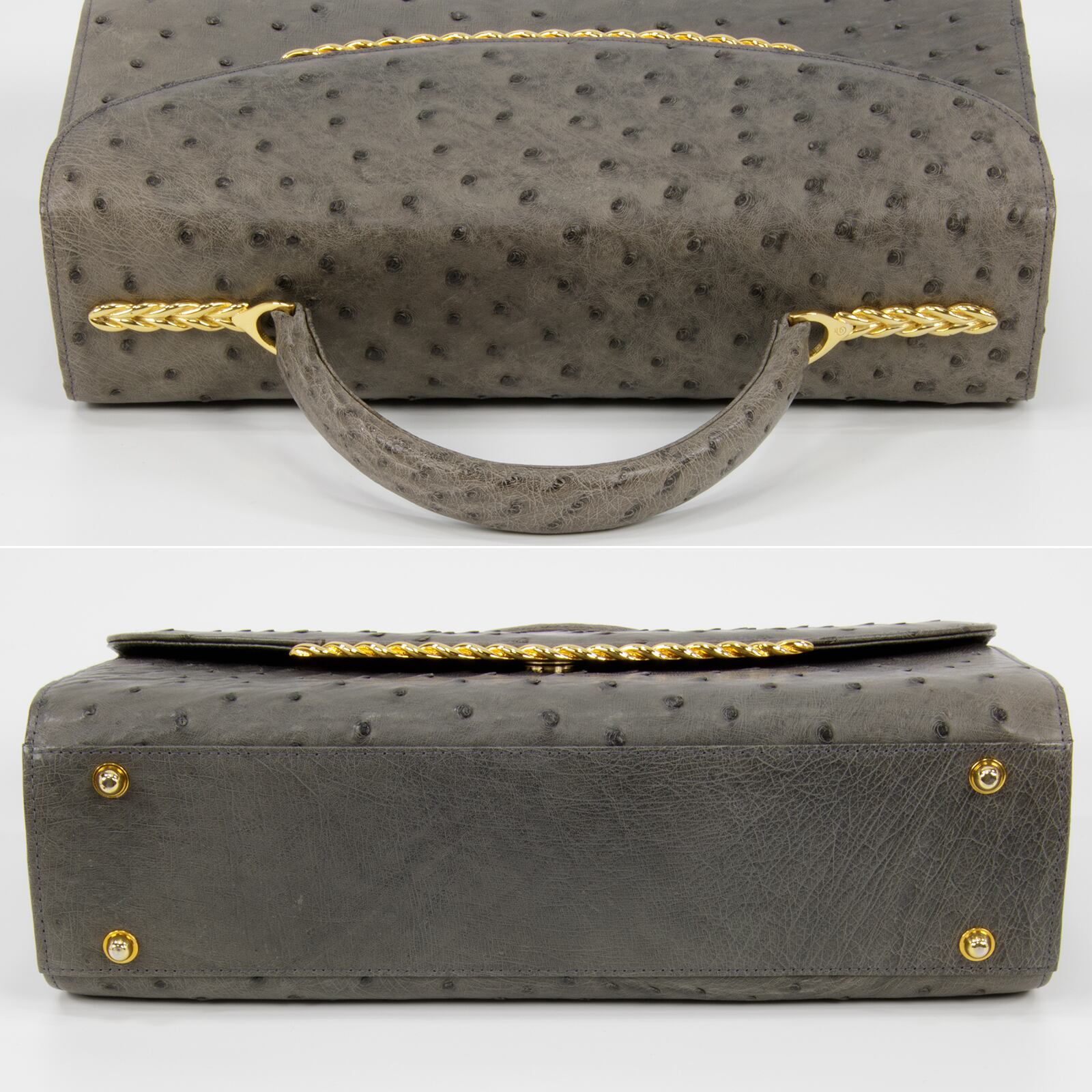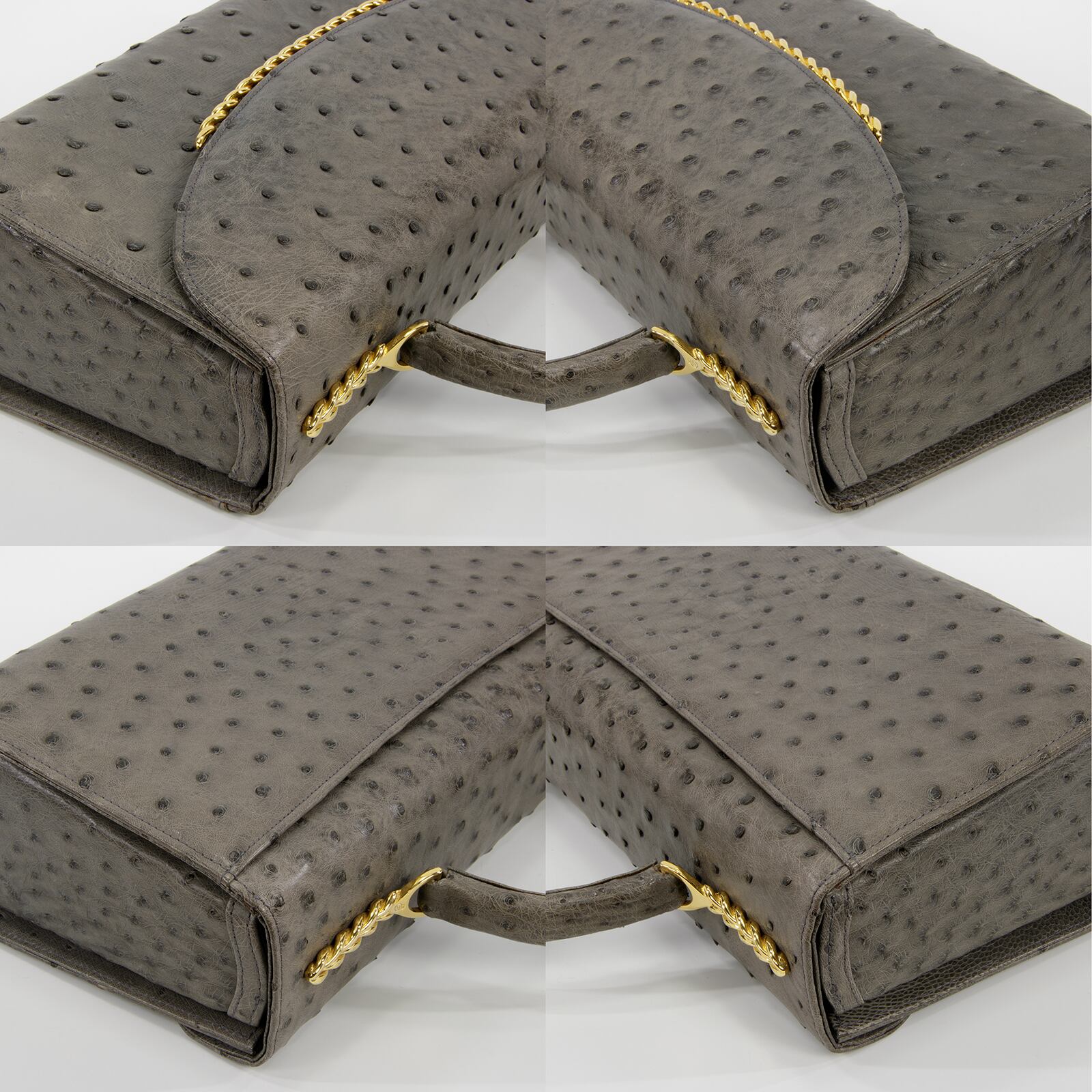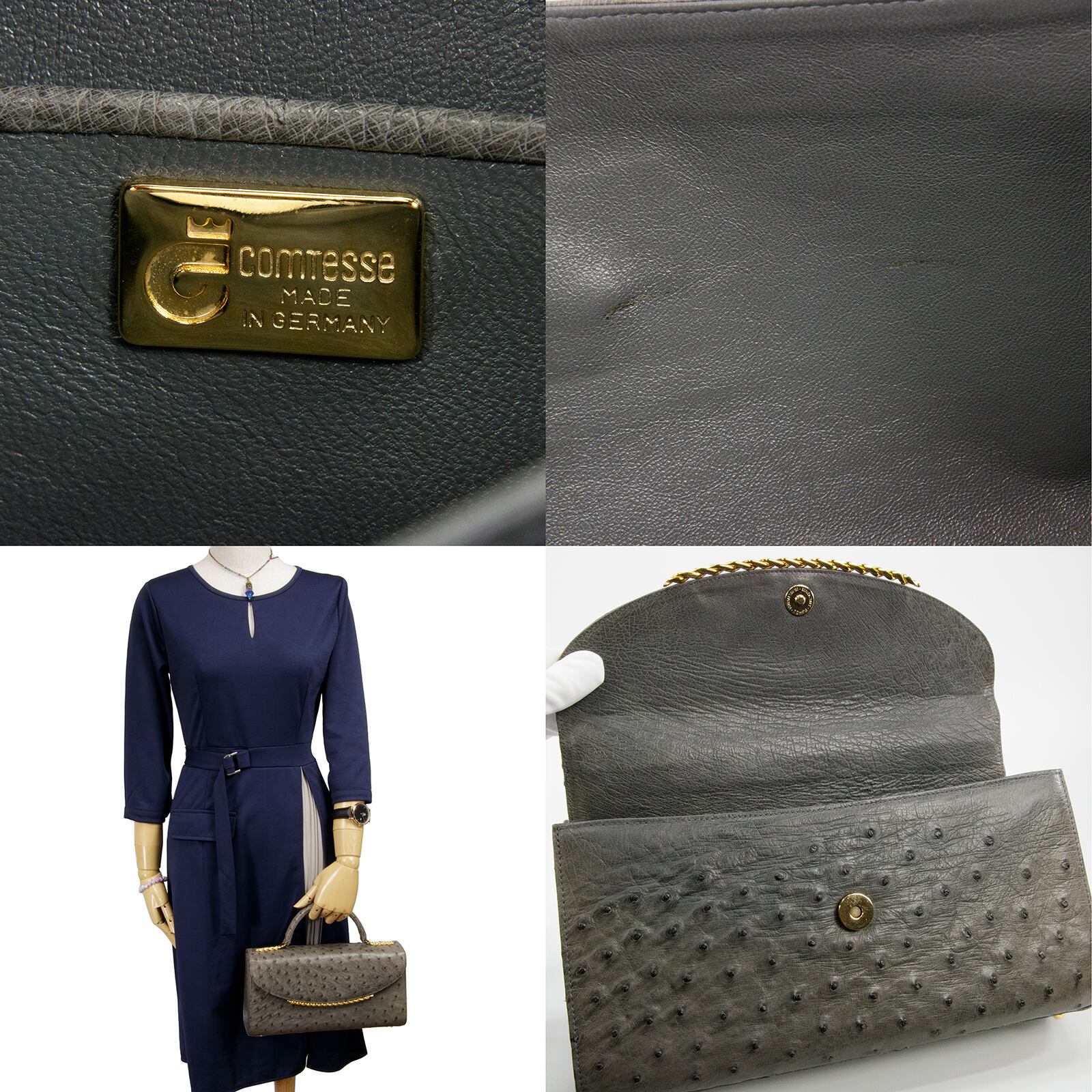 【本物・送料無料・極美品】コンテス・ハンドバッグ(オーストリッチ・綺麗・最高級・レア・珍しい・灰色・グレー・バック・F157)