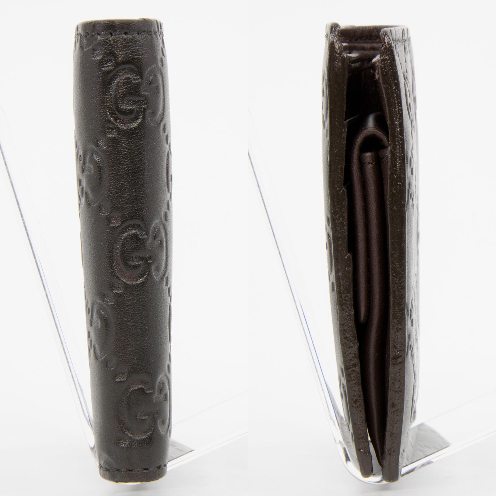 グッチシマのカーフは、少しの擦れであれば皮革専用クリームで目立たなくできます。胸ポケットに収まるほどのサイズでありながら、収納スペースが多い・物の出し入れがしやすいなど、使い心地の良さも素晴らしく、本気で末永く最高の短財布を使い続けたいお客様にピッタリでございます。