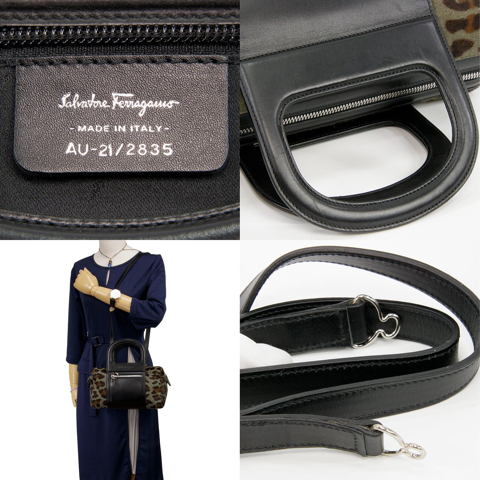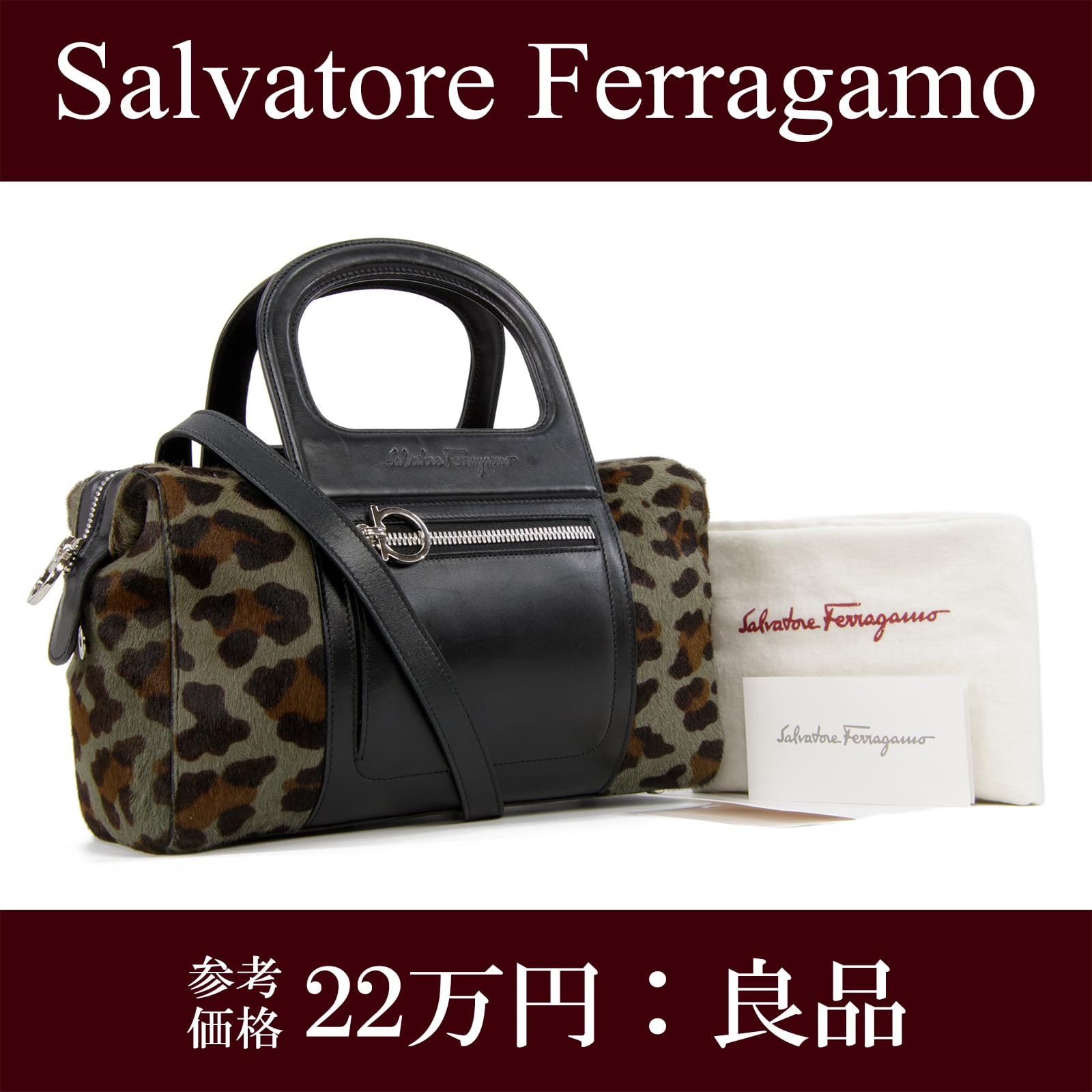 【本物・送料無料・良品】フェラガモ・2WAYショルダーバッグ(ガンチーニ・ハラコ・レア・斜め掛け・鞄・ハンドバック・I119)