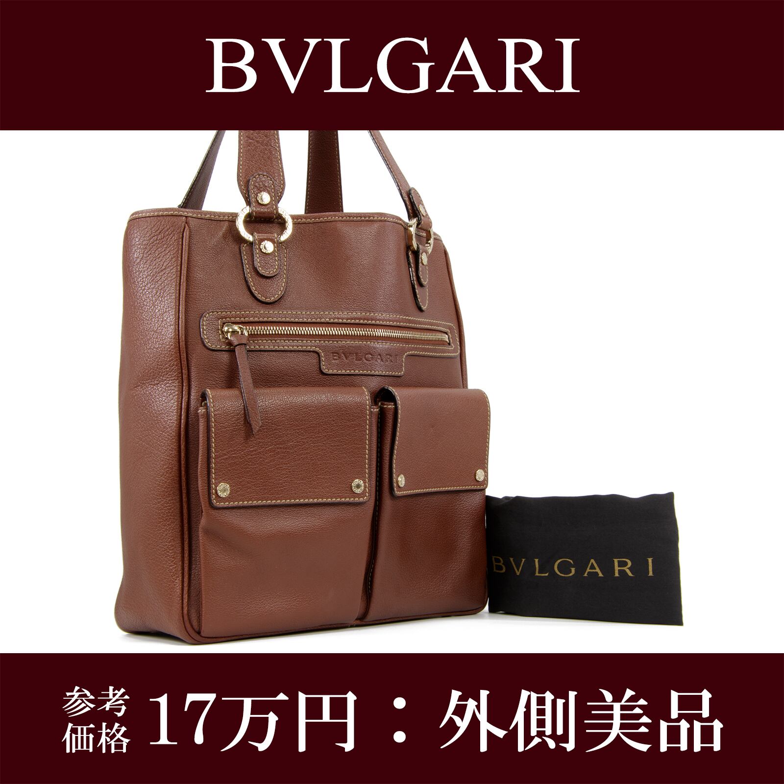 【本物・送料無料・外側美品】ブルガリ・トートバッグ(マキシレッタレ・人気・A4・茶色・ブラウン・男女兼用・鞄・バック・I123)