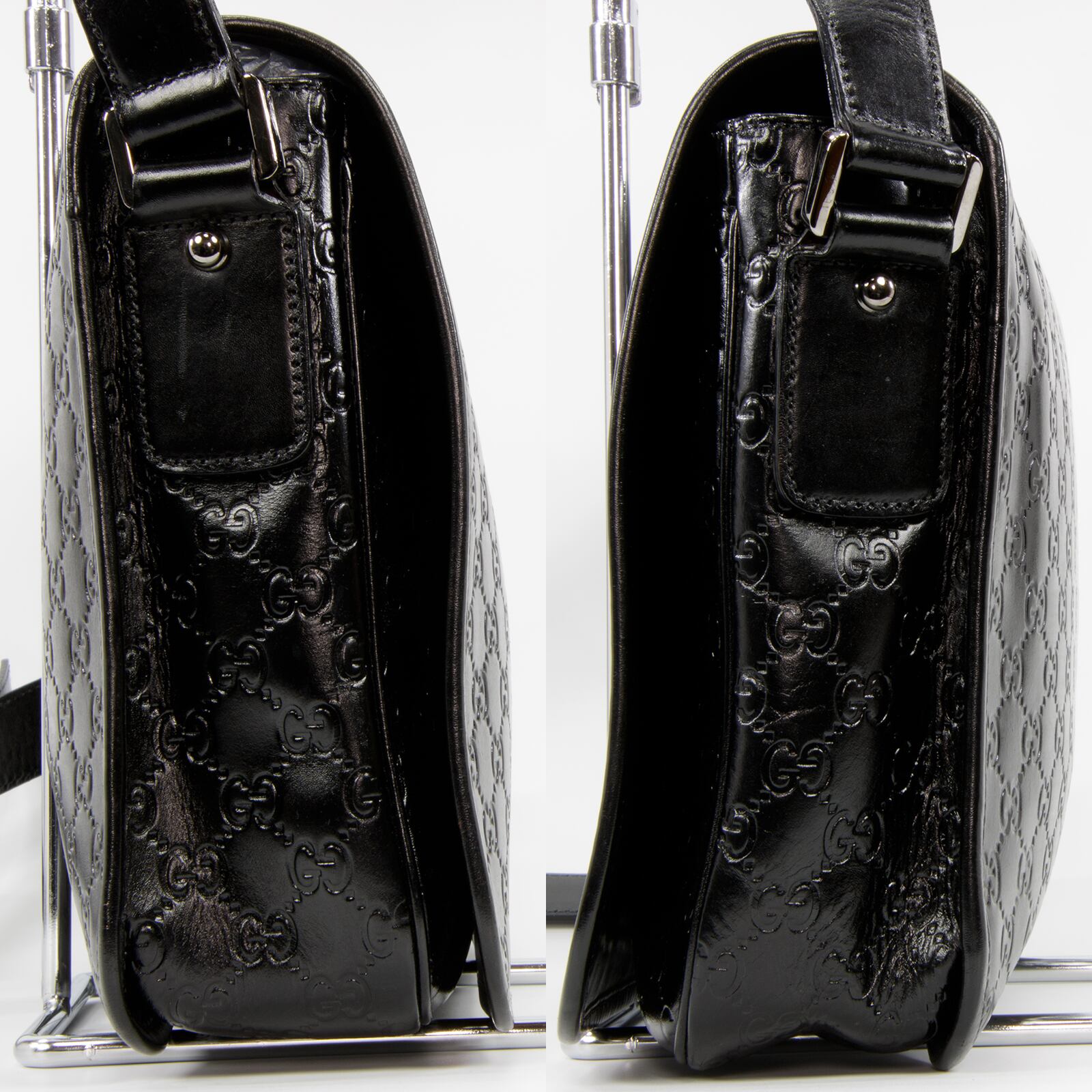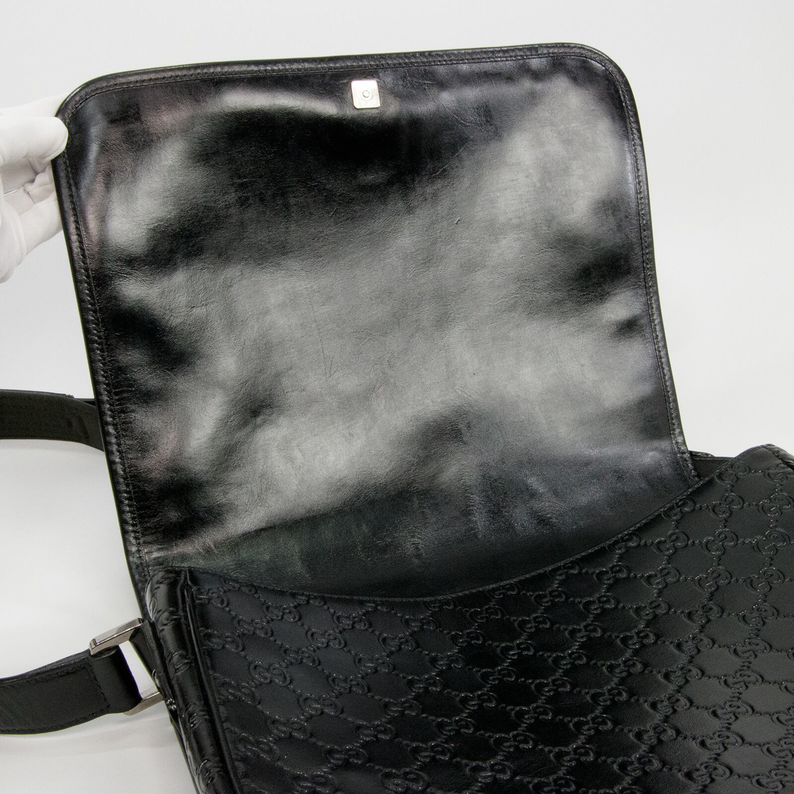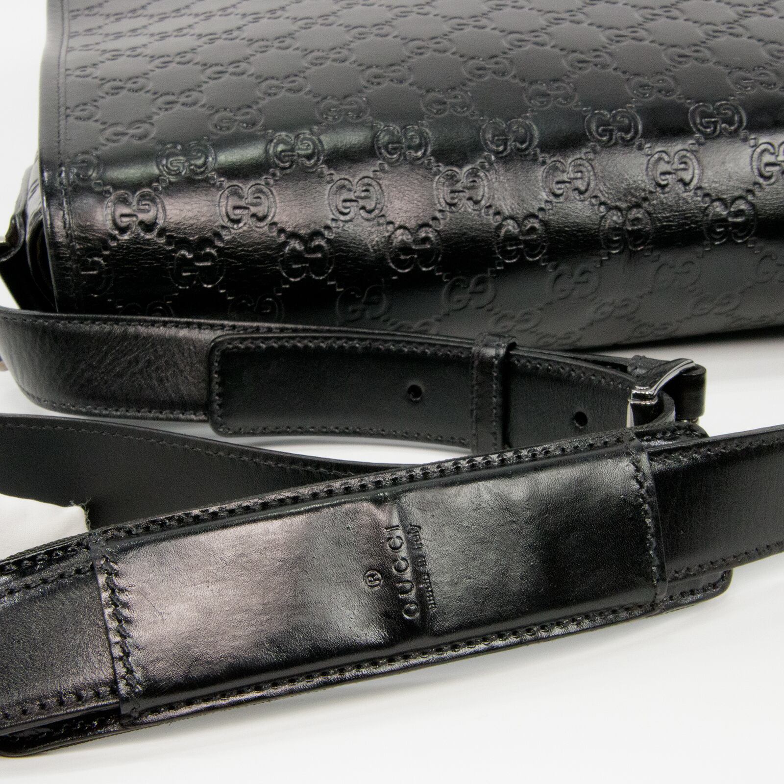 性別問わず一番人気のブラックカラー・GG総柄によって一目でグッチとわかる存在感がある、大変珍しいグッチシマのメッセンジャーバッグ。高級皮革の深い味わいとエレガントな大人の魅力が感じられる逸品でございます。
