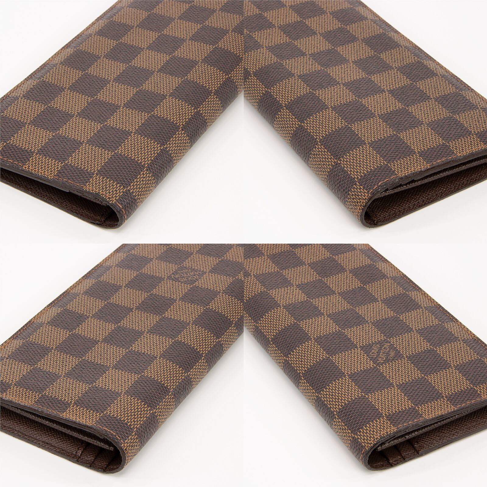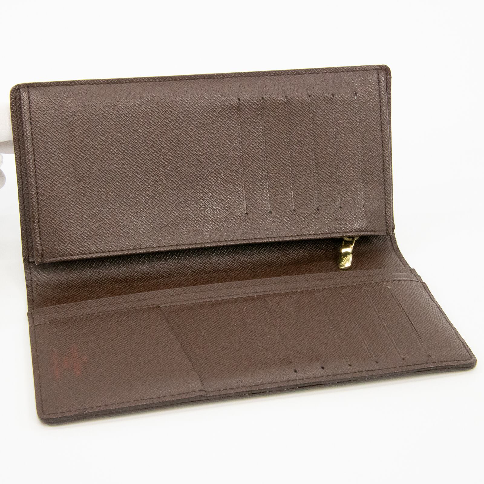【本物・送料無料・極美品】ヴィトン・長財布・二つ折り財布(ダミエ・エベヌ・ブラザ・綺麗・男女兼用・茶色・ブラウン・D150)