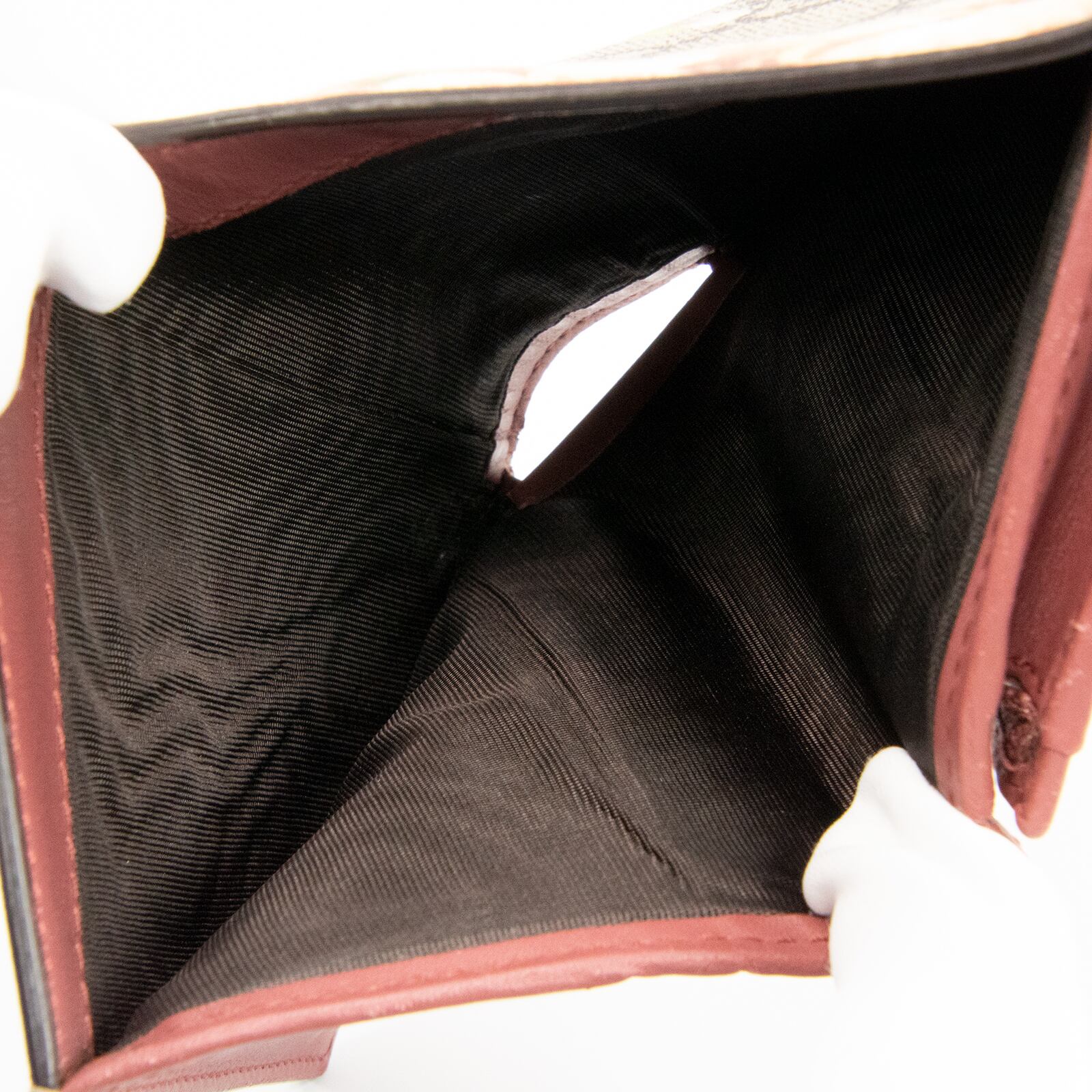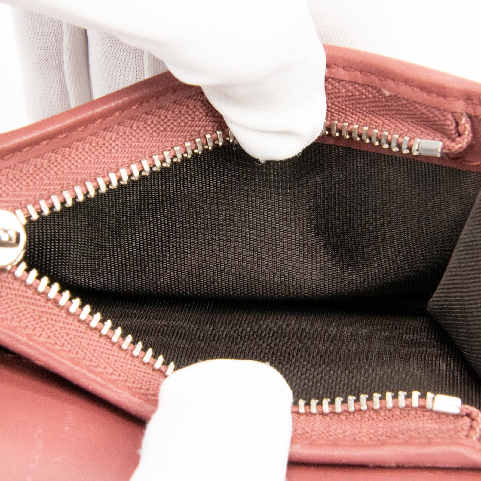 財布の内側には、ゼラニウムのカラーにあった最高級カーフがあしらわれており、ジャケットの内ポケットにスッポリと収まるデザインでありながら、物の出し入れがしやすい・収納力が高いなど、使い心地の良さも素晴らしく、どのような場面でもお客様の洗練された美しさを引き立ててくれます。