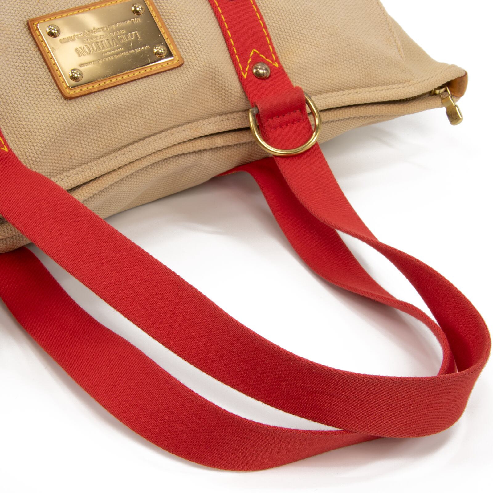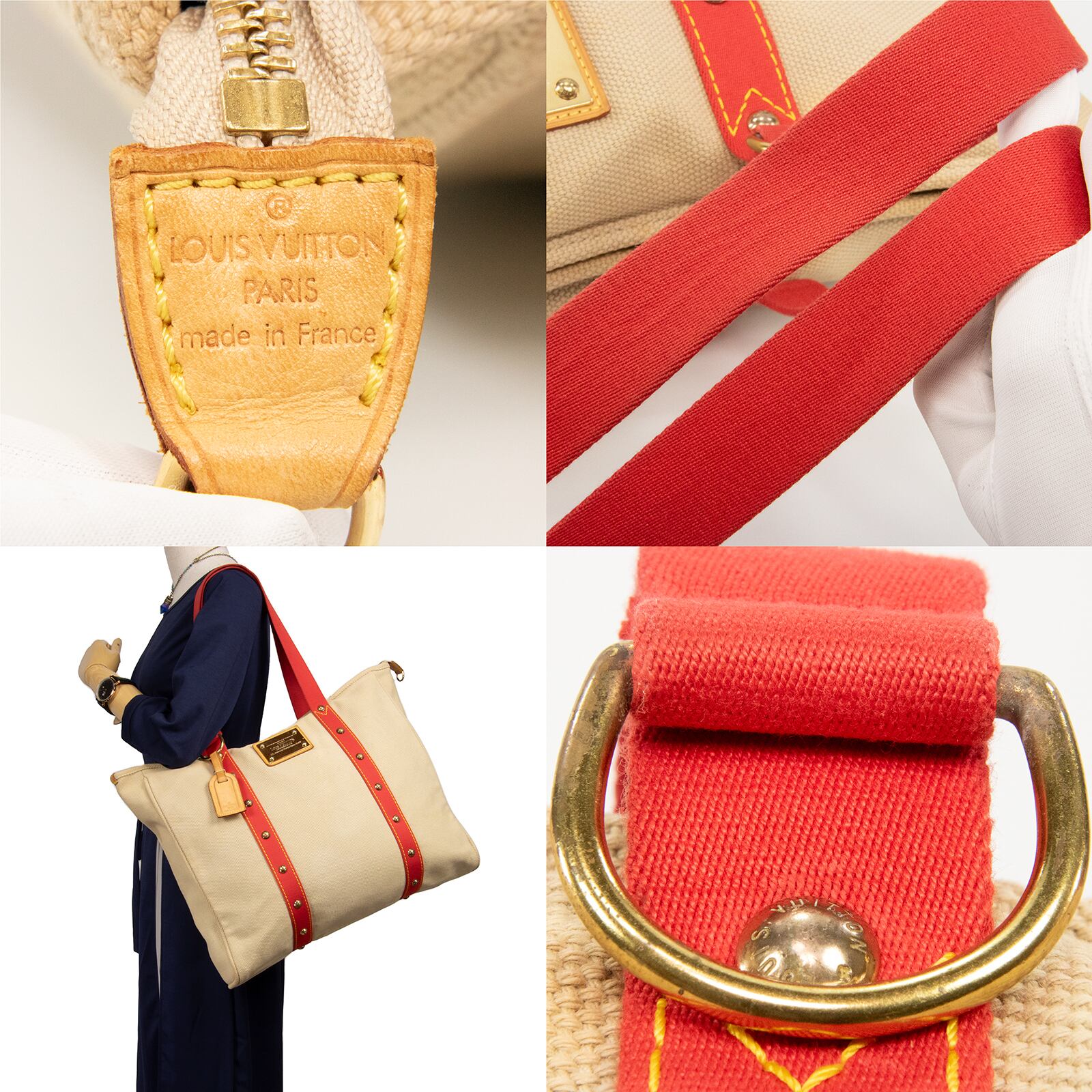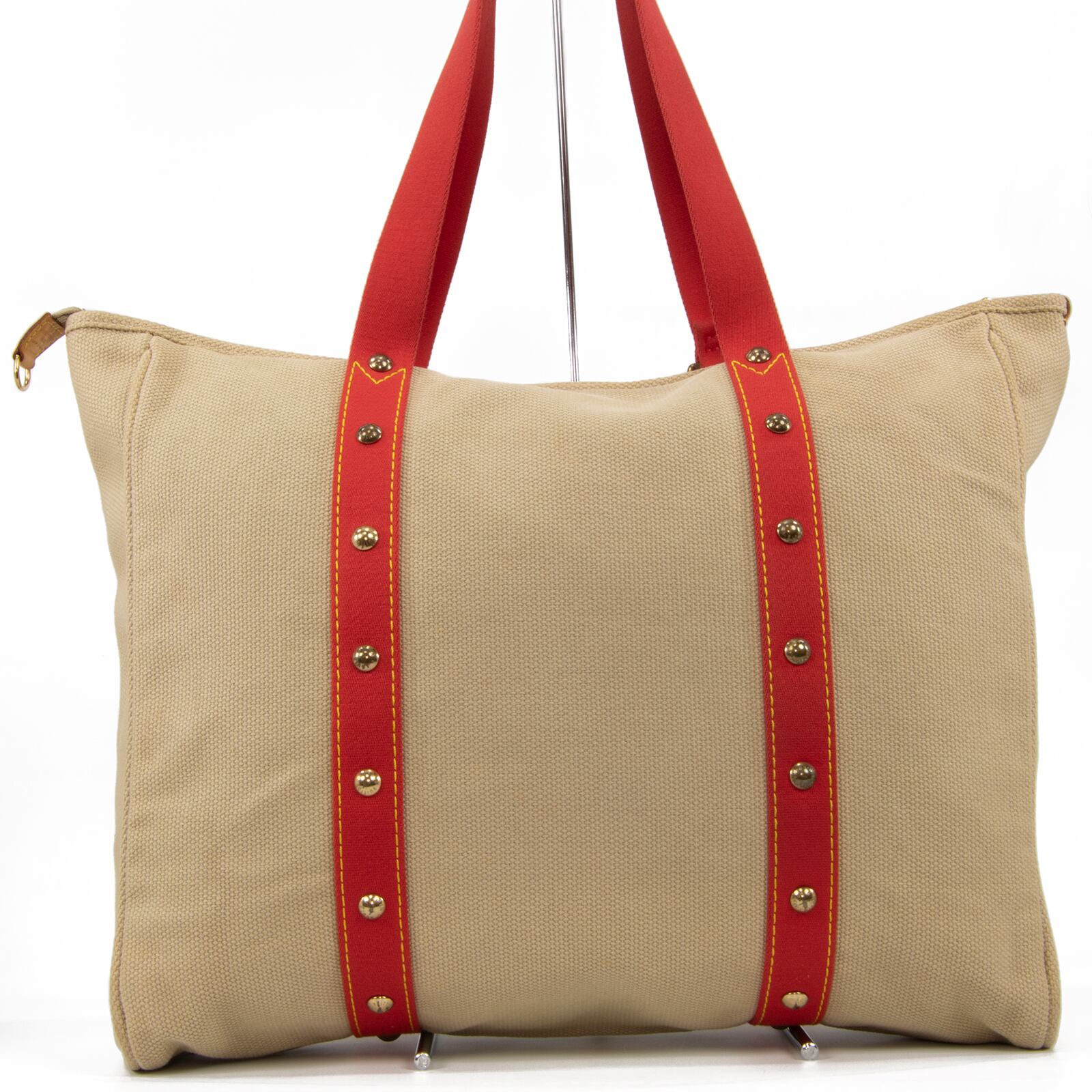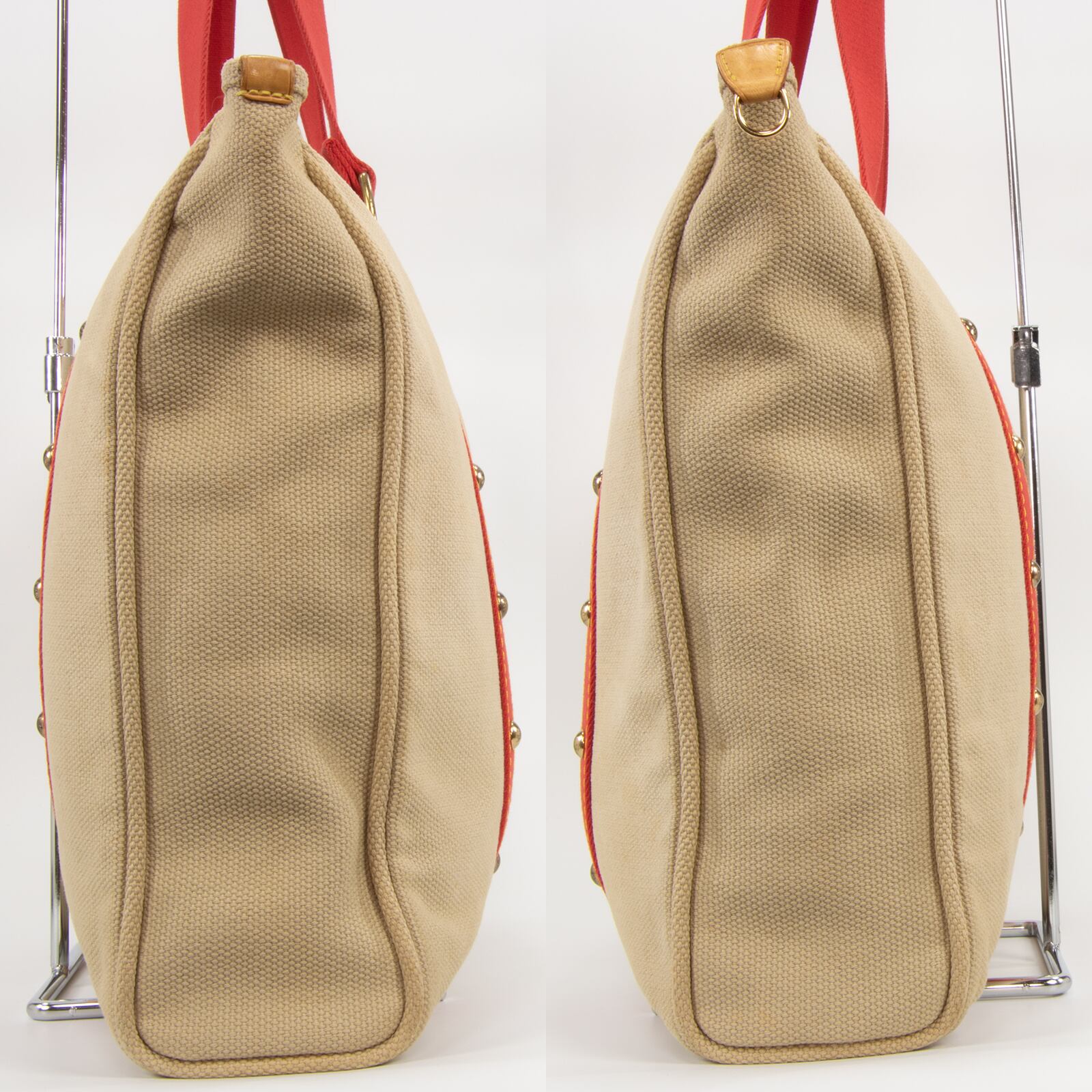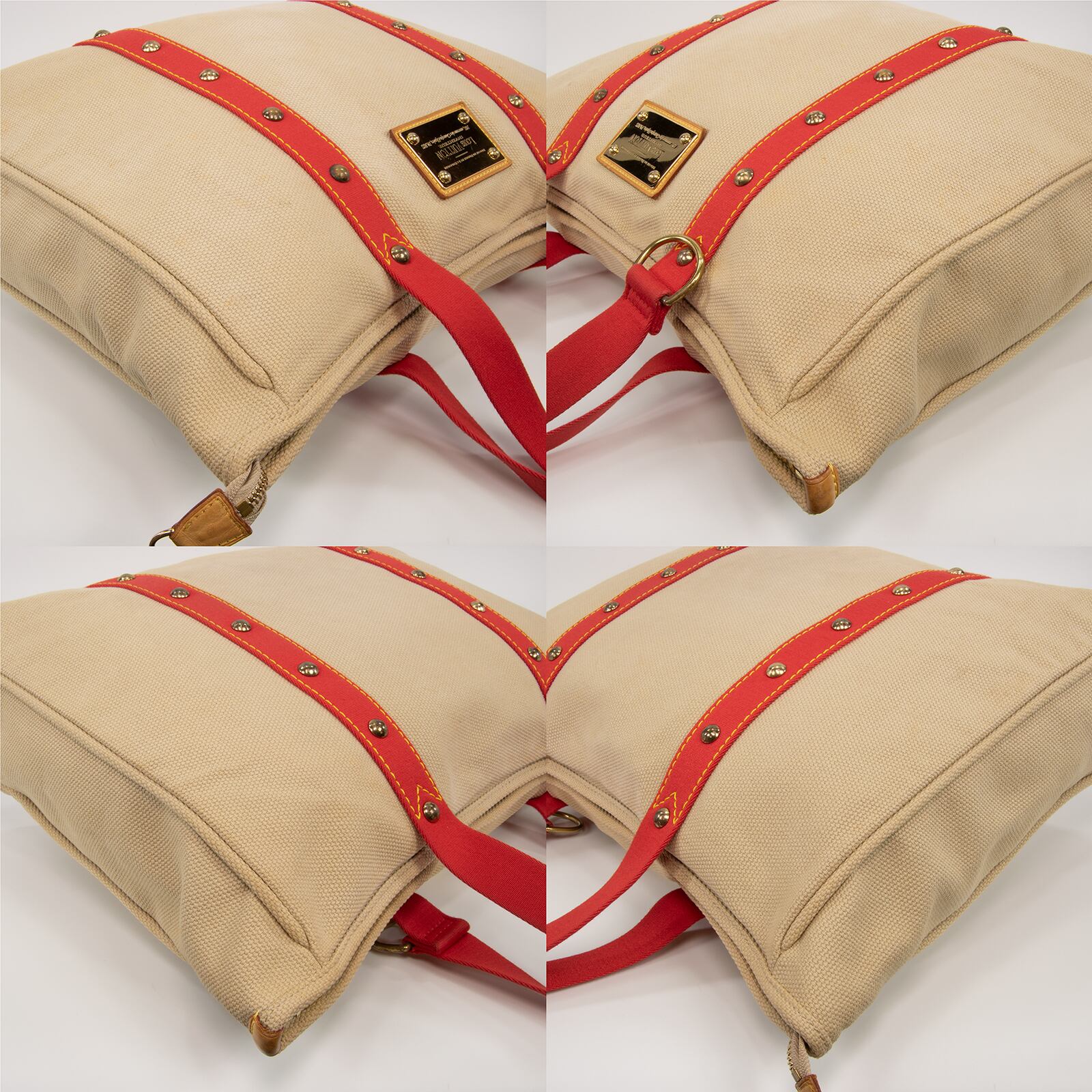 【本物・送料無料・良品】ヴィトン・トートバッグ(アンティグア・ベージュ・カバGM・レア・A4・男女兼用・ベージュ・レッド・A762)