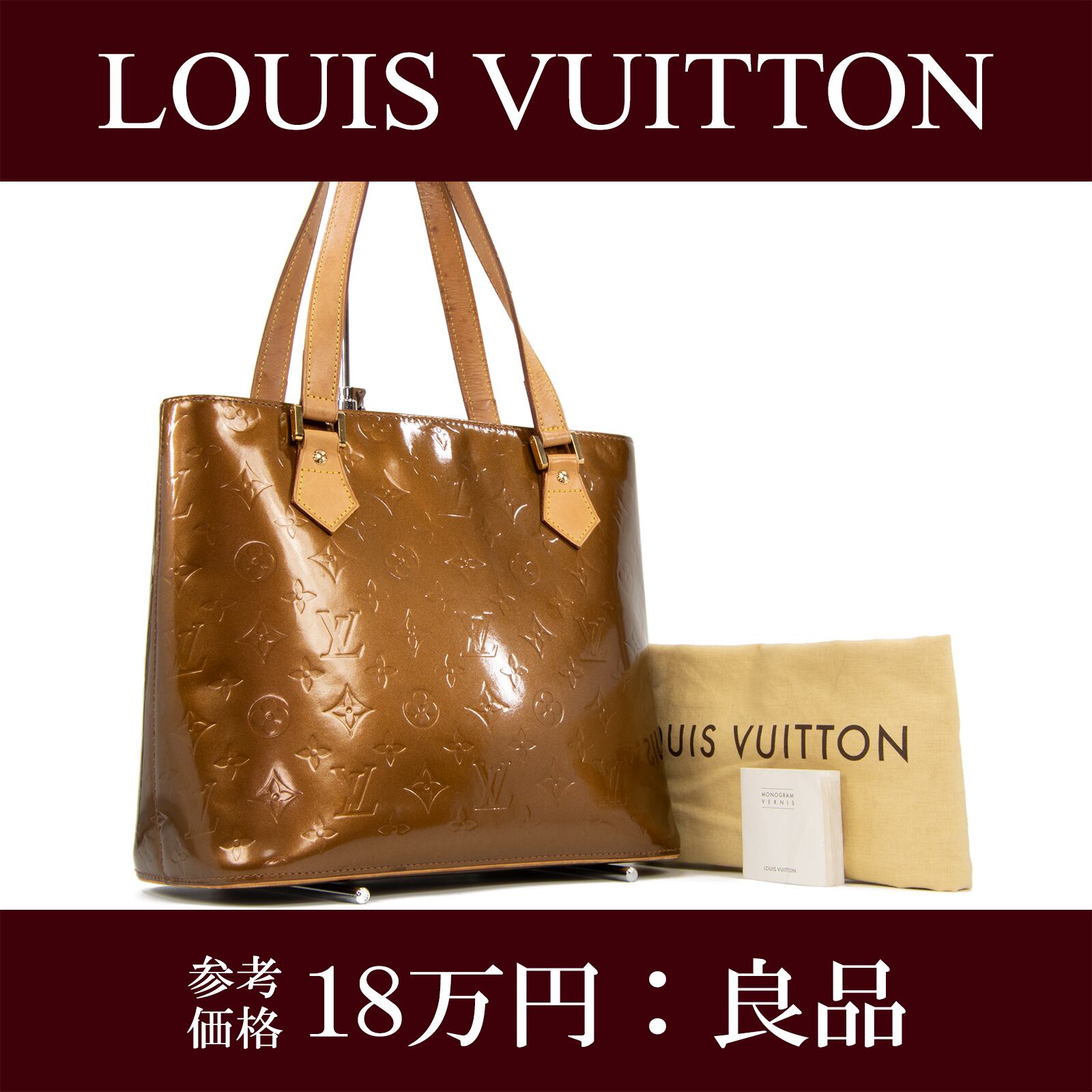 【本物・送料無料・良品】ヴィトン・トートバッグ(ヴェルニ・ブロンズ・ヒューストン・人気・ビトン・鞄・ショルダーバック・E290)