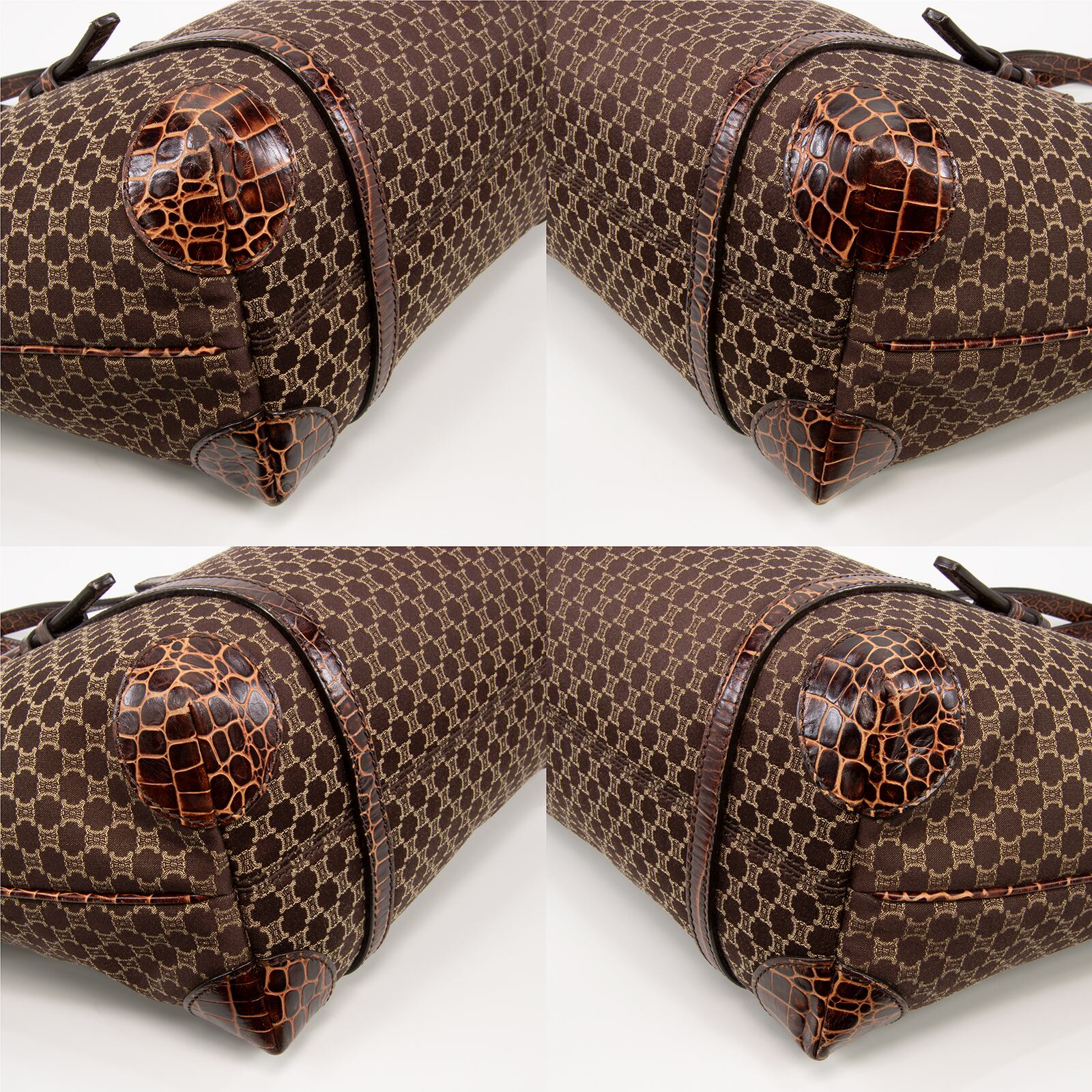 セリーヌのロゴをモノグラムのようにあしらったマカダム総柄が特徴で、一目でセリーヌとわかる存在感がありながら、クロコ型押しレザーの高級感と相まって、エレガントで落ち着いた大人の魅力にうっとりさせられます。