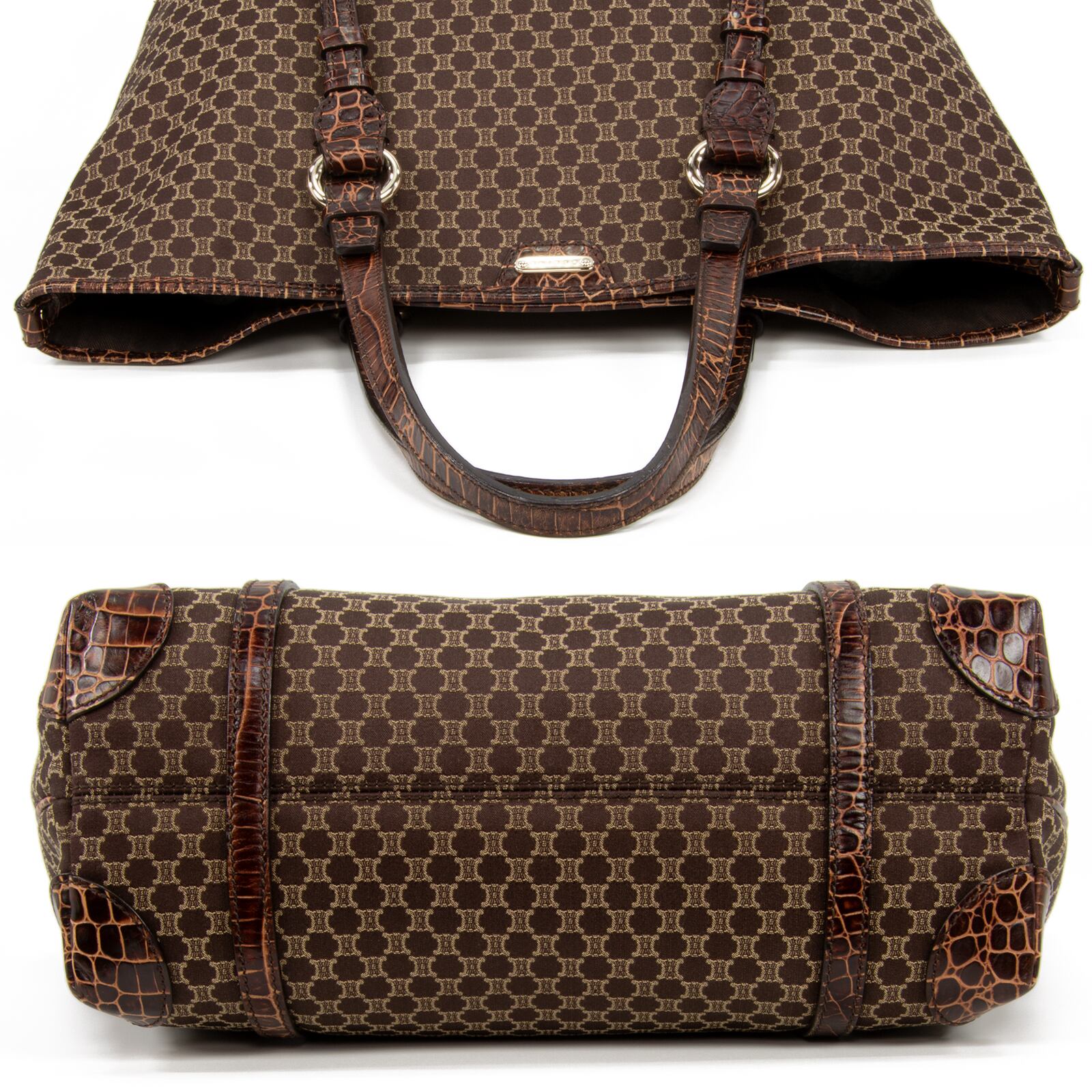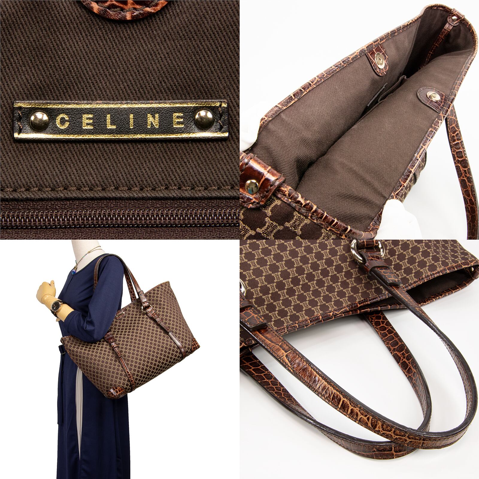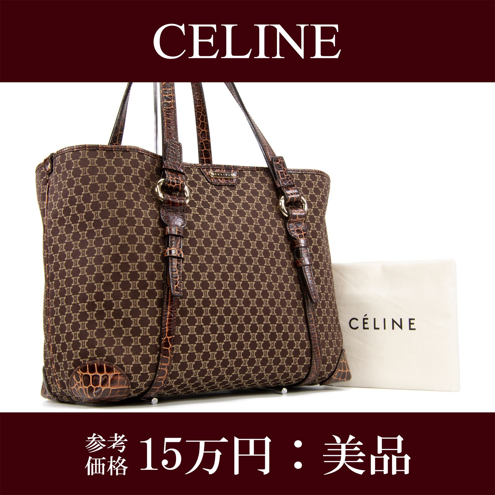 【本物・送料無料・美品】セリーヌ・トートバッグ(クロコ型押し・綺麗・レア・A4・女性・メンズ・男性・ショルダーバック・E292)