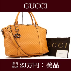 【本物・送料無料・美品】グッチ・2WAYショルダーバッグ(アビー・マイクログッチシマ・綺麗・斜め掛け・橙色・オレンジ・I129)