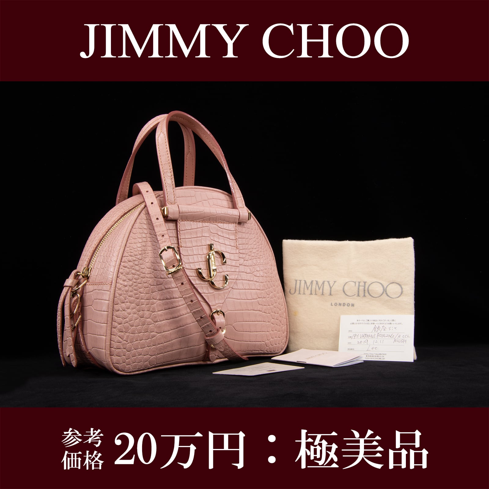 【本物・送料無料・極美品】ジミーチュウ・2WAYショルダーバッグ(ヴァレンヌ・ボーリング・S・綺麗・斜め掛け・ピンク・I138)