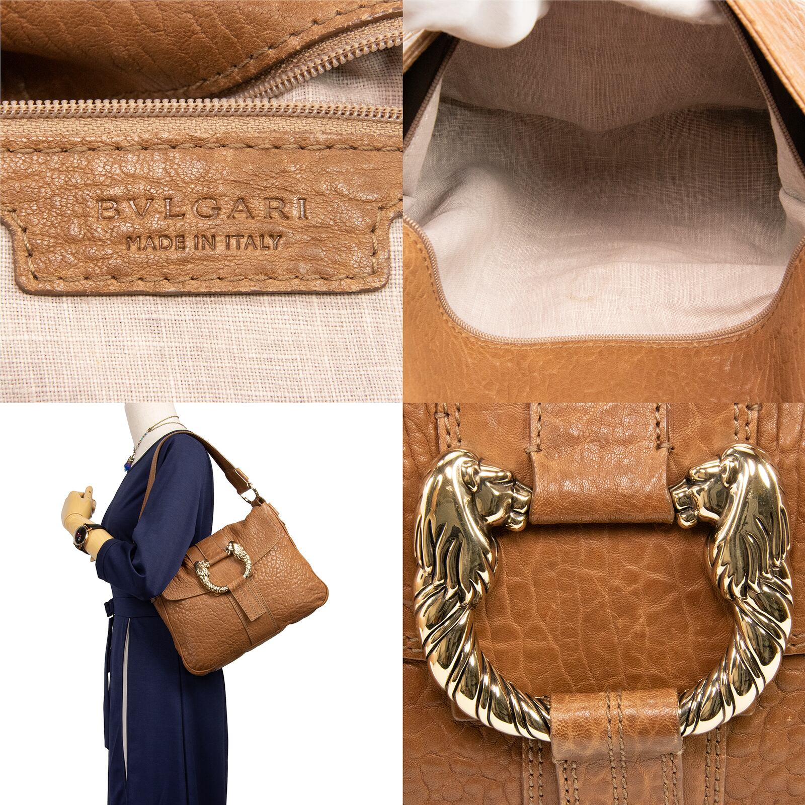【本物・送料無料・美品】ブルガリ・ショルダーバッグ(レオーニ・人気・綺麗・高級・ライオン・茶色・ブラウン・鞄・バック・A769)