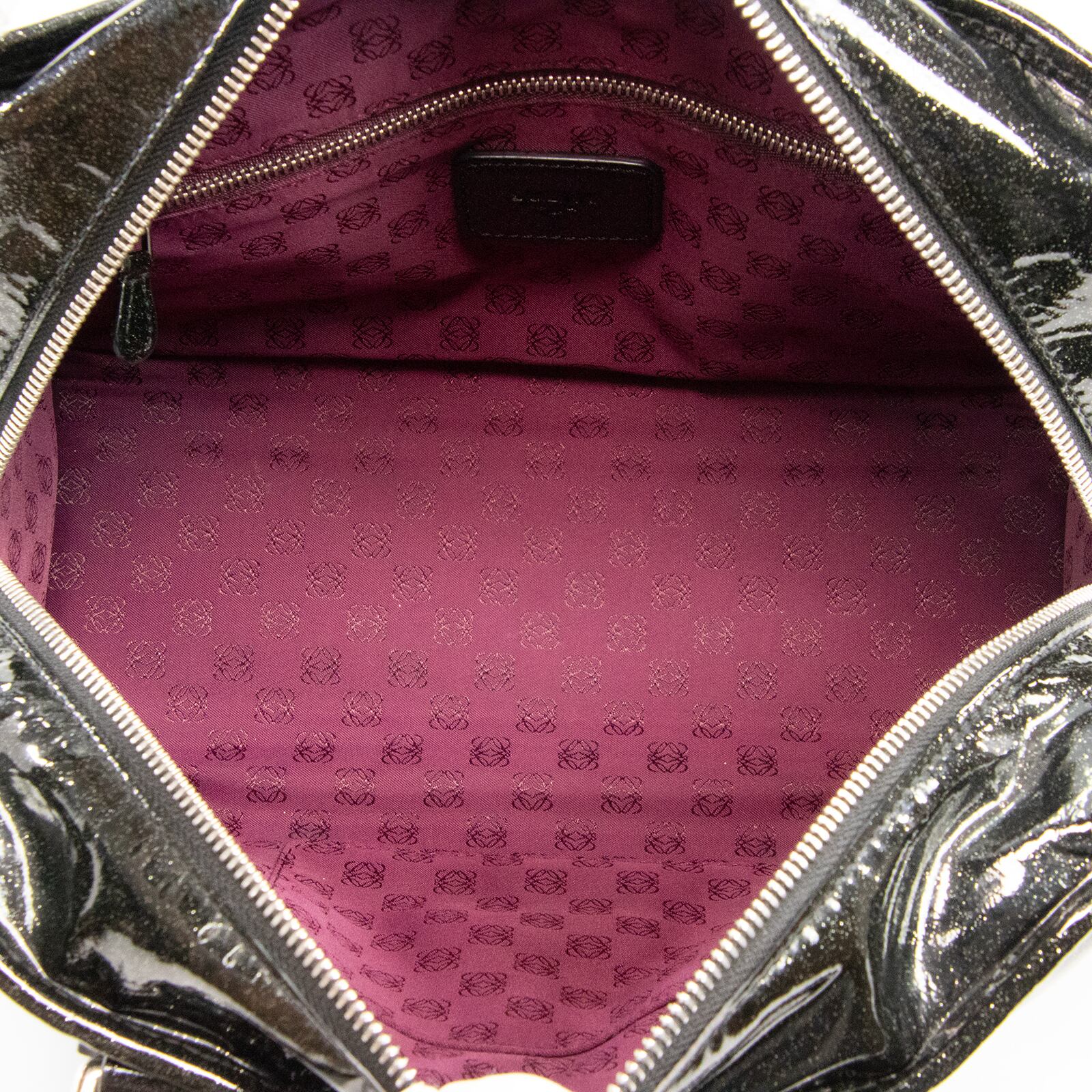 アマソナの中でも大変珍しい、ラメ入りブラックカラーのパテントレザーの光沢と前面の特大アナグラムが相まって、一目でロエベとわかる存在感がございます。物の出し入れがしやすい・丈夫で軽いなど、使い心地の良さも素晴らしく、どのような場面でもお客様の洗練された美しさとセレブ感を引き立ててくれます。