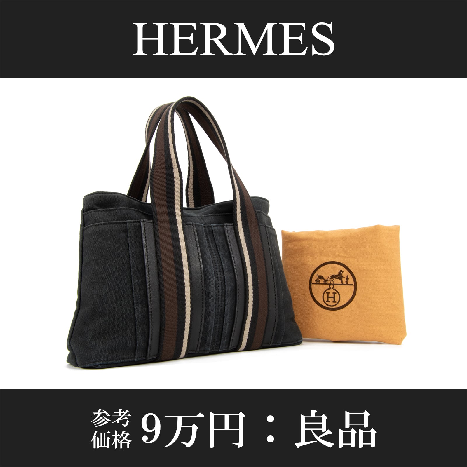 【本物・送料無料・良品】エルメス・トートバッグ(トロカホリゾンタルPM・人気・女性・メンズ・男性・黒・ブラック・バック・B202)