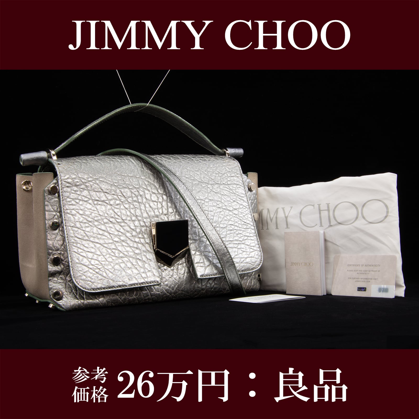 【本物・送料無料・良品】ジミーチュウ・2WAYショルダーバッグ(ロケット S・人気・斜め掛け・レア・銀色・シルバー・鞄・I144)