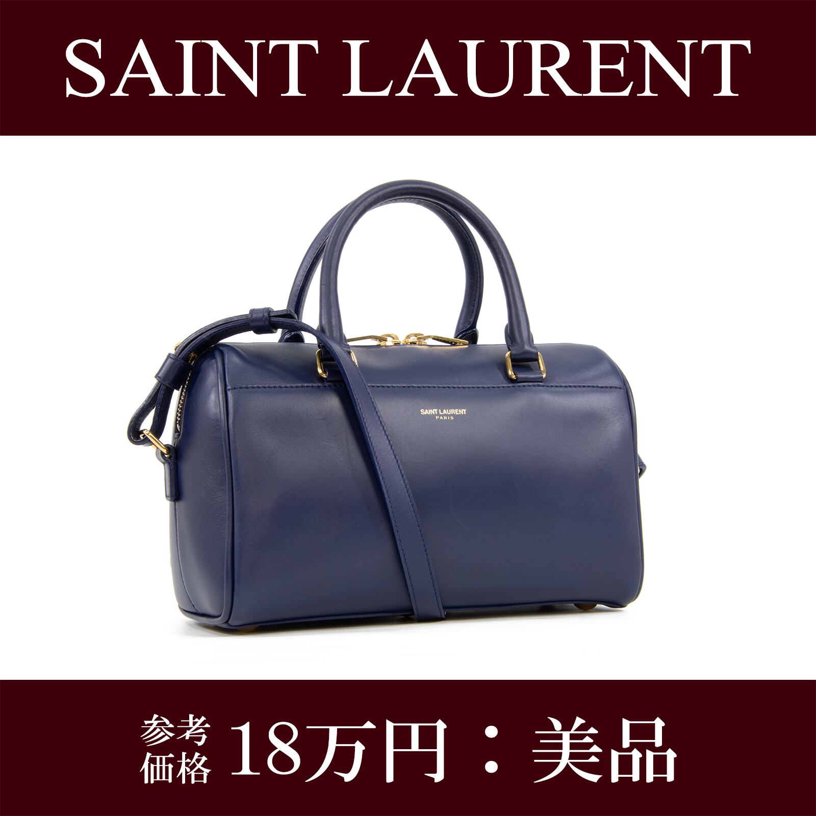 【本物・送料無料・美品】サンローラン・2WAYショルダーバッグ(ベイビーダッフル・人気・綺麗・斜め掛け・青・ブルー・鞄・F180)