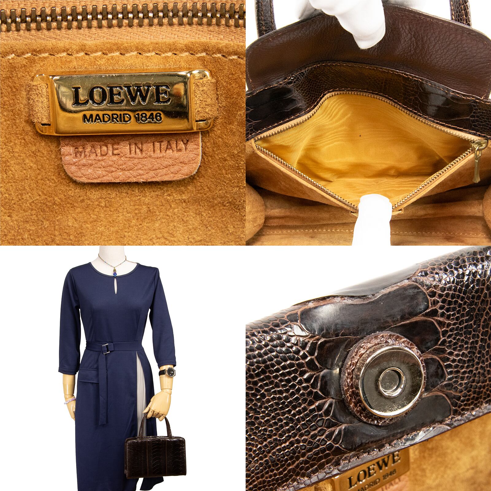 2023年9月8日、日本最大級の古物市場・エコリングで購入いたしました、ロエベの大変珍しい、最高級クロコダイルをあしらったハンドバッグでございます。