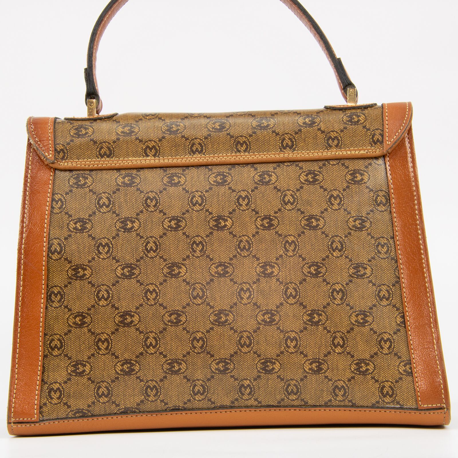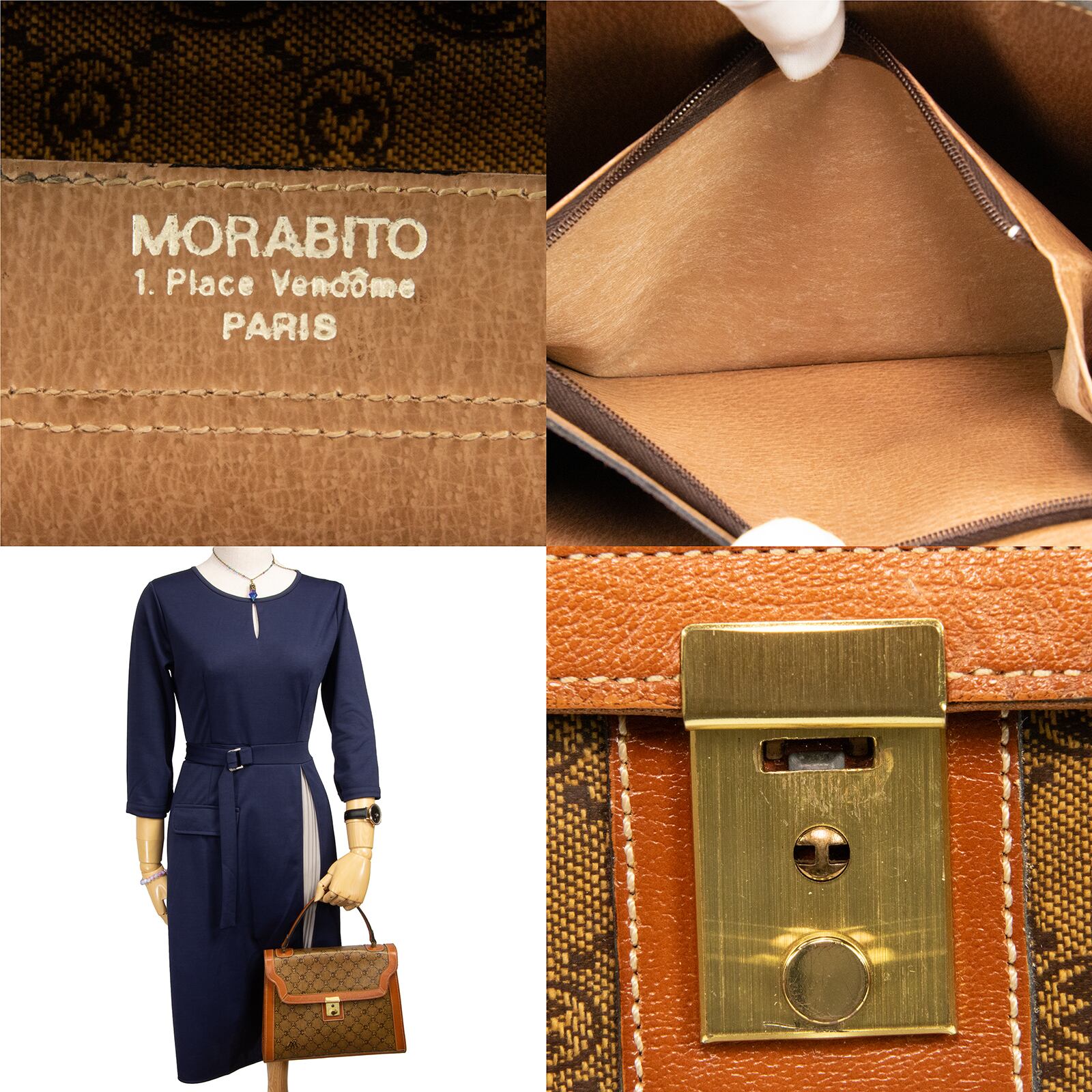 【本物・送料無料・美品】モラビト・ハンドバッグ(人気・綺麗・レア・珍しい・総柄・茶色・ブラウン・ロゴ・鞄・バック・B219)