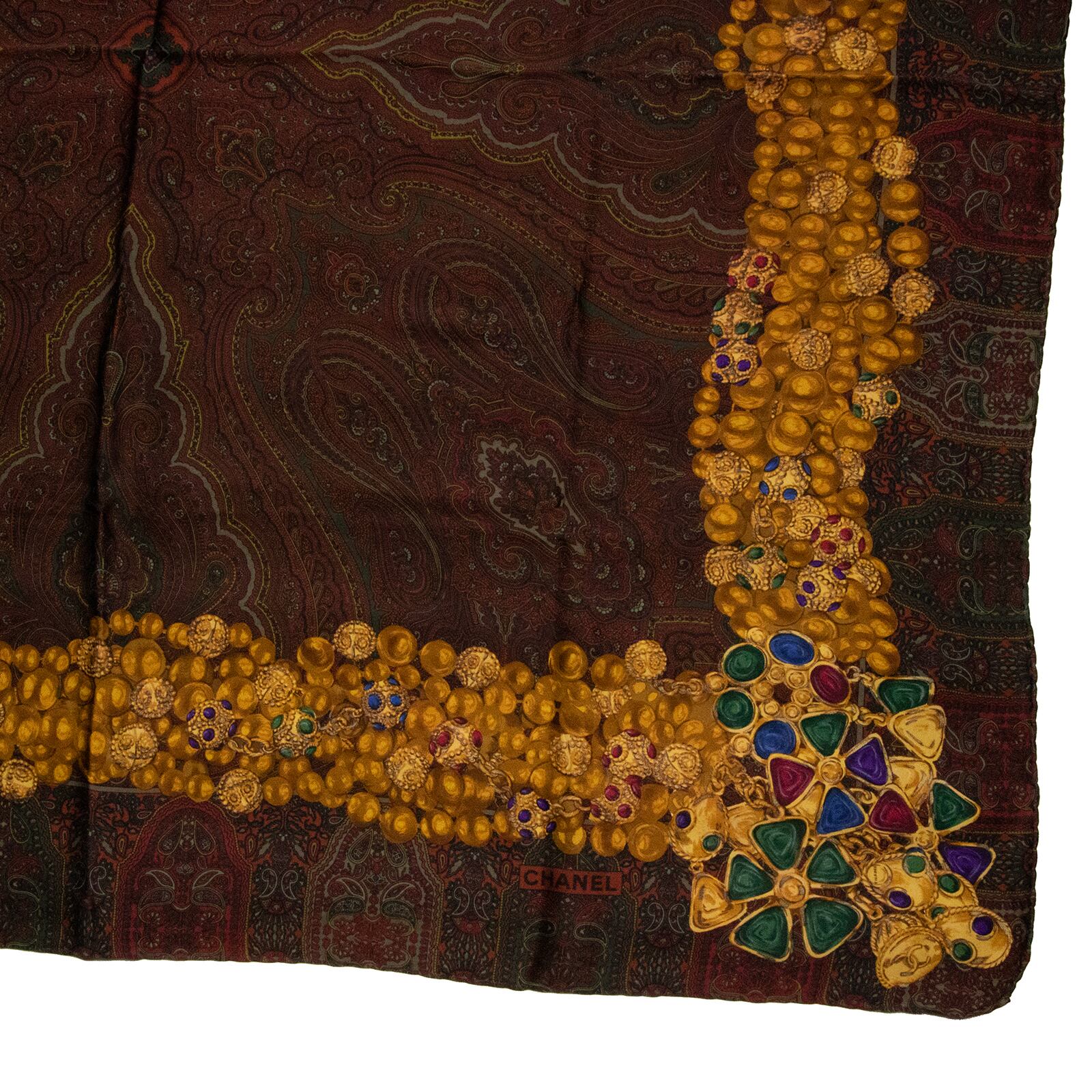 【本物・送料無料・新品同様】シャネル・大判スカーフ(綺麗・グリボア柄・ペイズリー柄・レア・珍しい・ボルドー・ゴールド・X037)