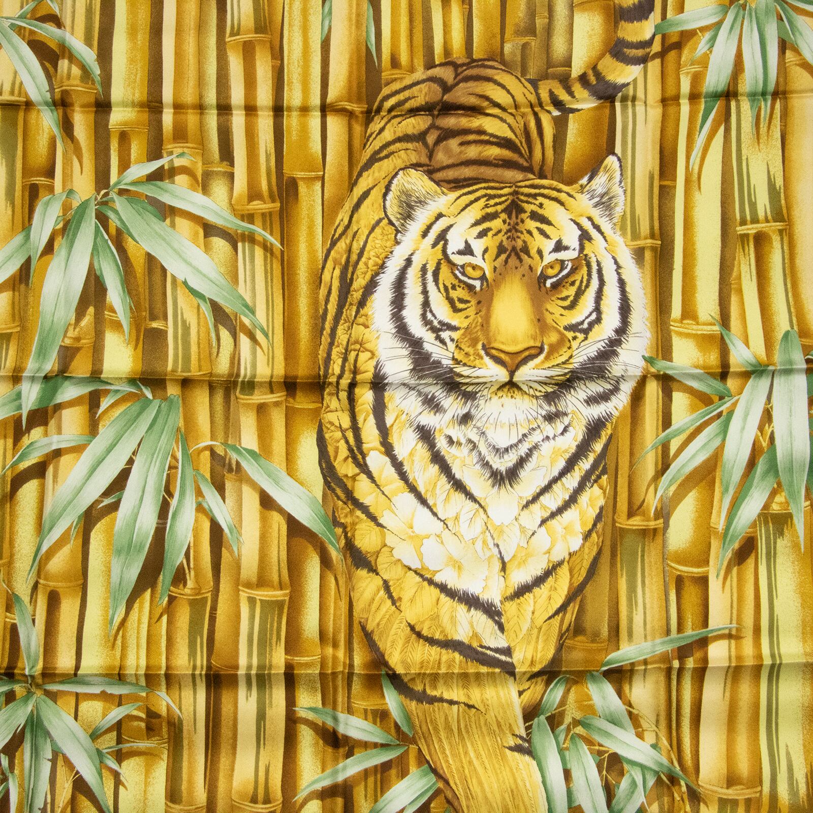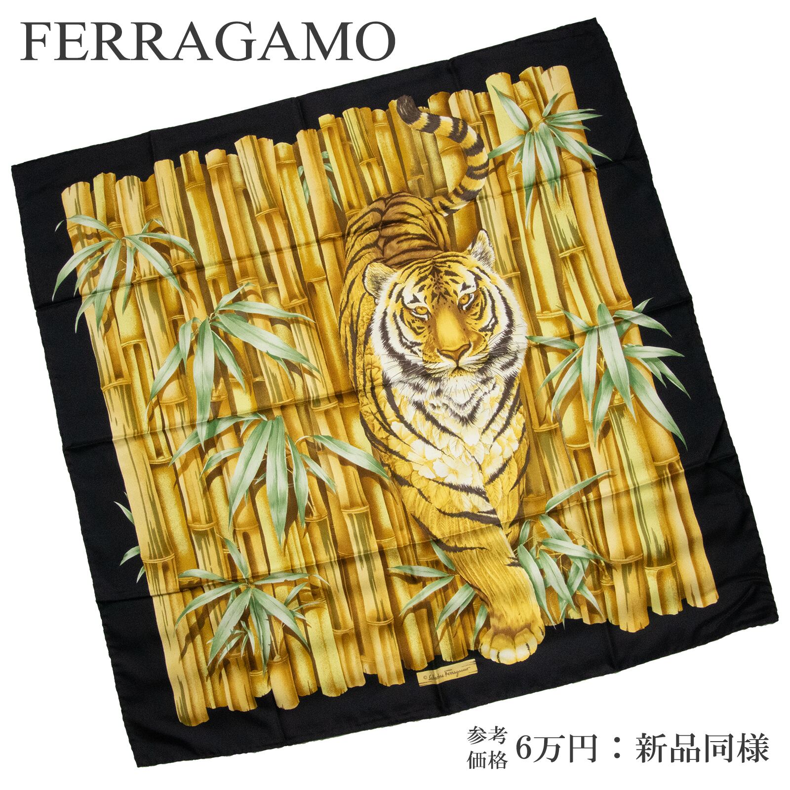 【本物・送料無料・新品同様】フェラガモ・大判スカーフ(人気・綺麗・レア・珍しい・虎・タイガー・ゴールド・動物・シルク・X044)