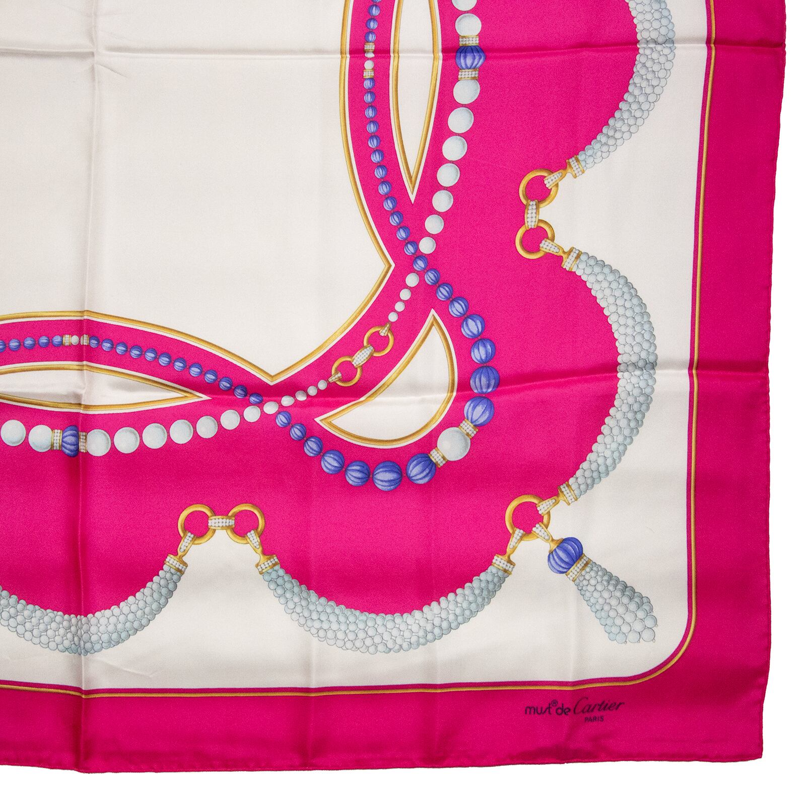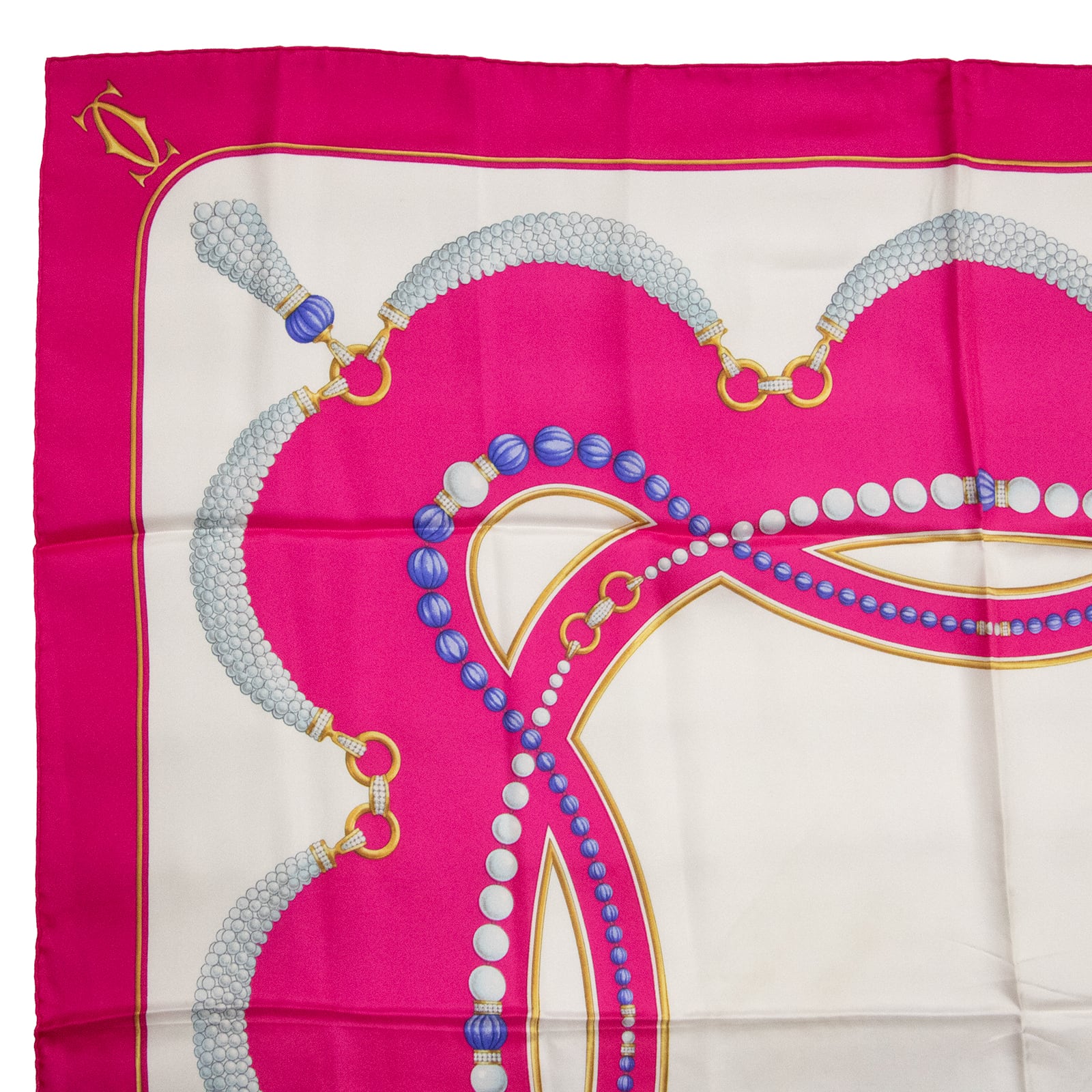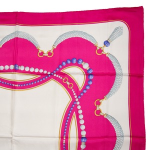 【本物・送料無料・良品】カルティエ・大判スカーフ(マスト ドゥ カルティエ・人気・レア・ピンク・ホワイト・シルク・X045)