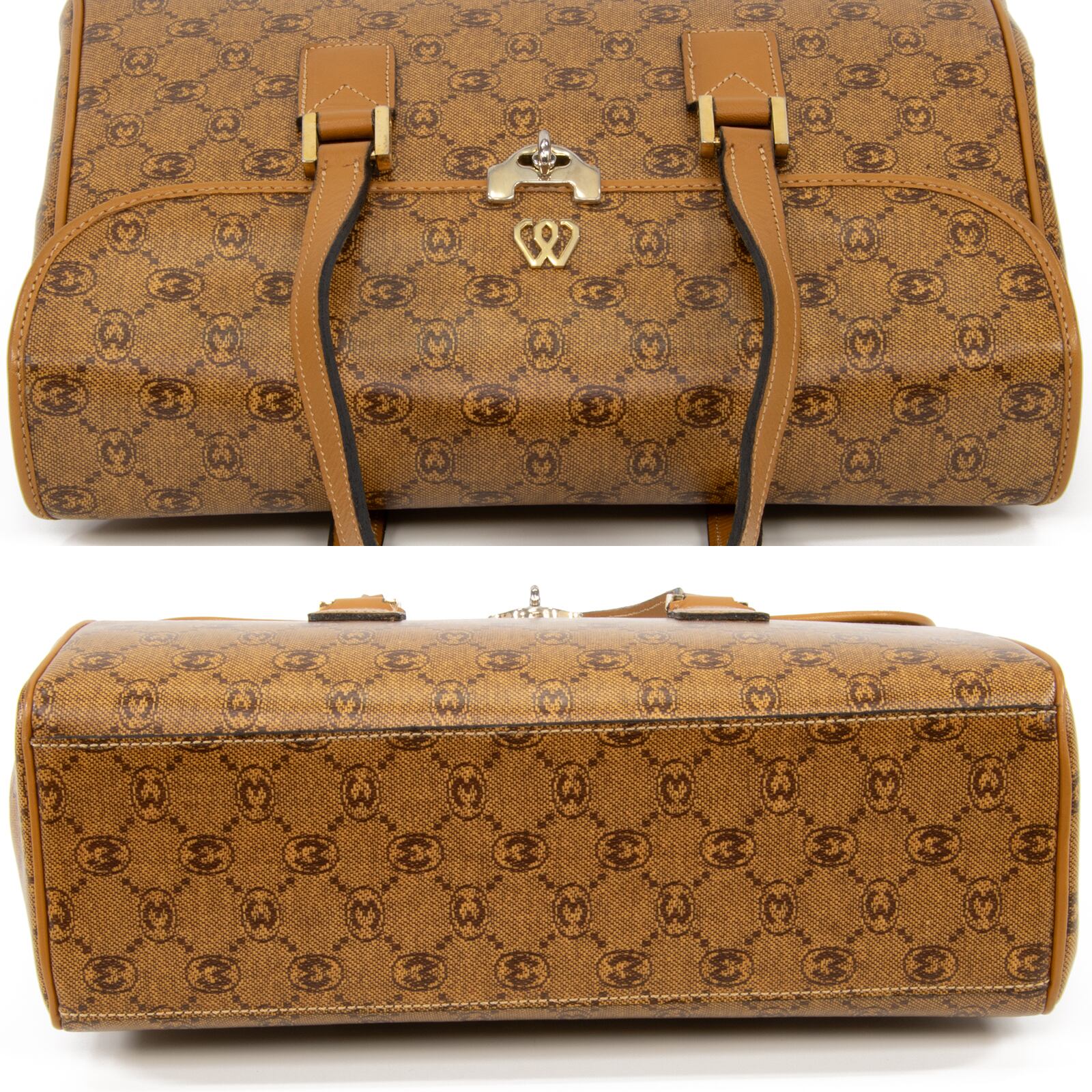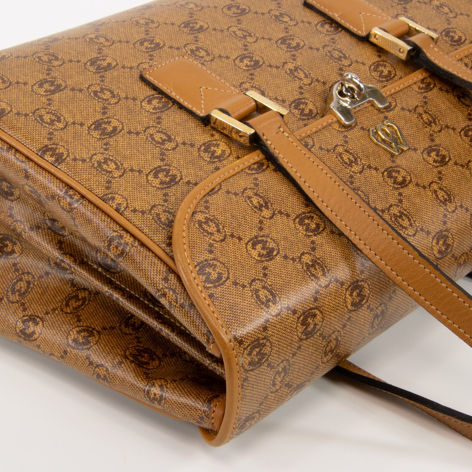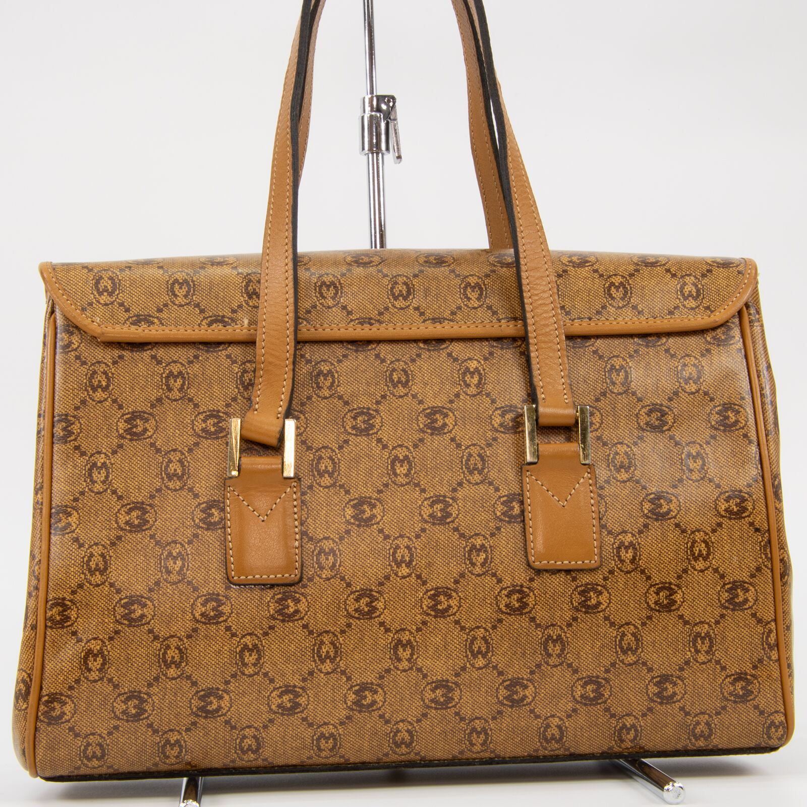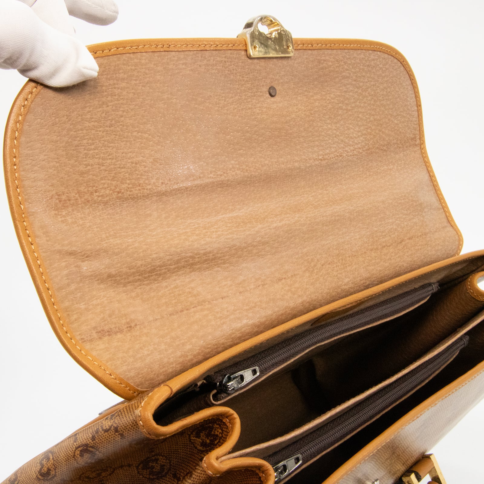 【本物・送料無料・美品】モラビト・ハンドバッグ(綺麗・レア・珍しい・M総柄・茶色・ブラウン・かっちり・鞄・バック・E307)
