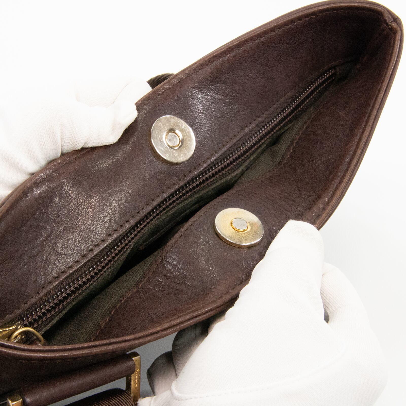 ゴールドカラーの金具やショルダー全体には様々なフェラガモが刻印されており、一目でフェラガモとわかる存在感がございます。全体的に落ち着いた配色のデザインで、流行に左右されない不変の美しさとエレガントな大人の魅力が感じられます。
