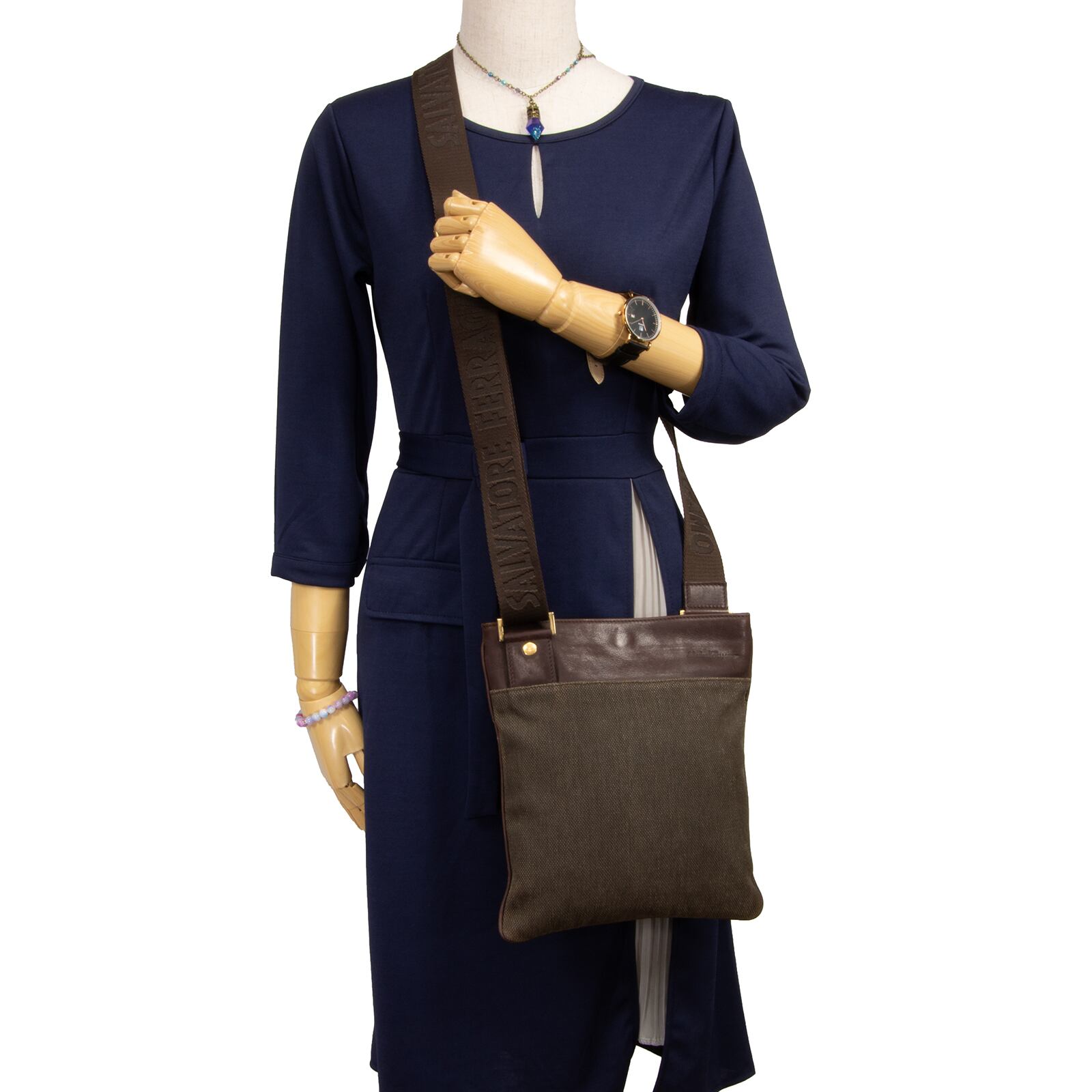 【本物・送料無料・良品】フェラガモ・ショルダーバッグ(斜め掛け・女性・メンズ・男性・ブラウン・クロスボディバック・B227)