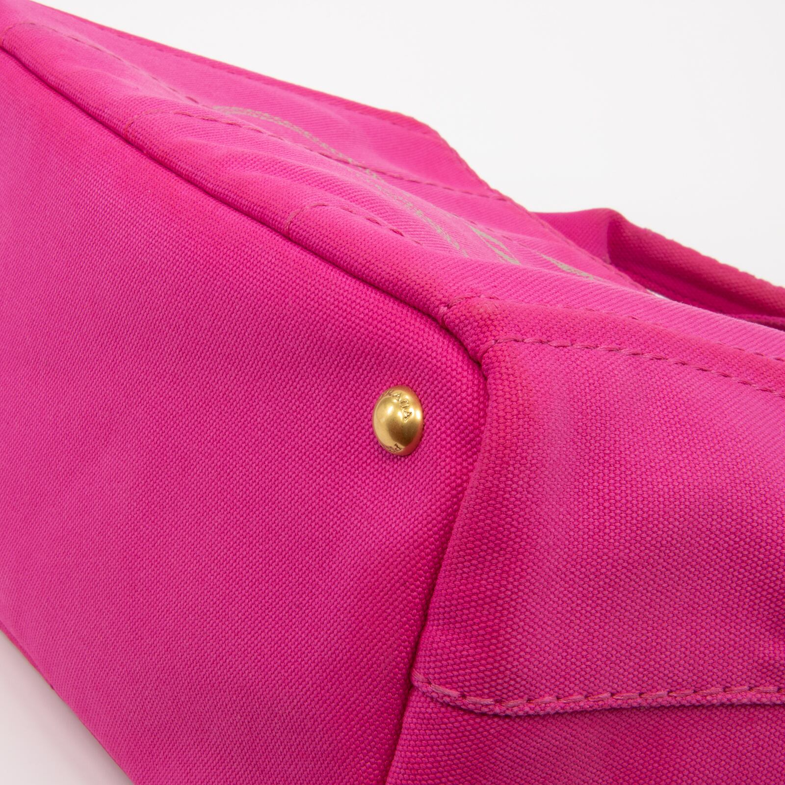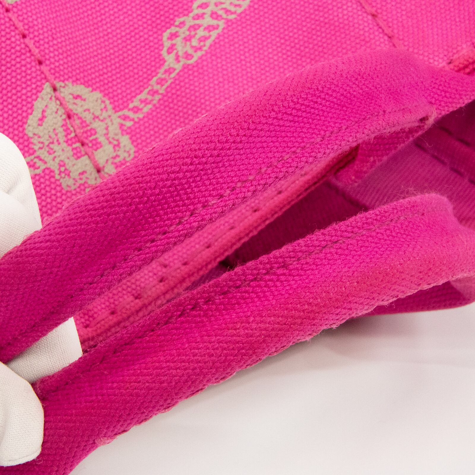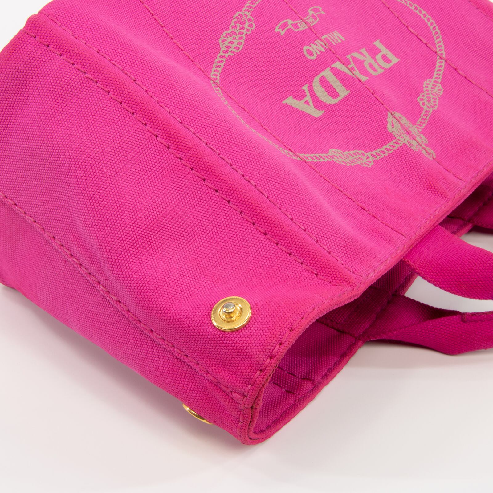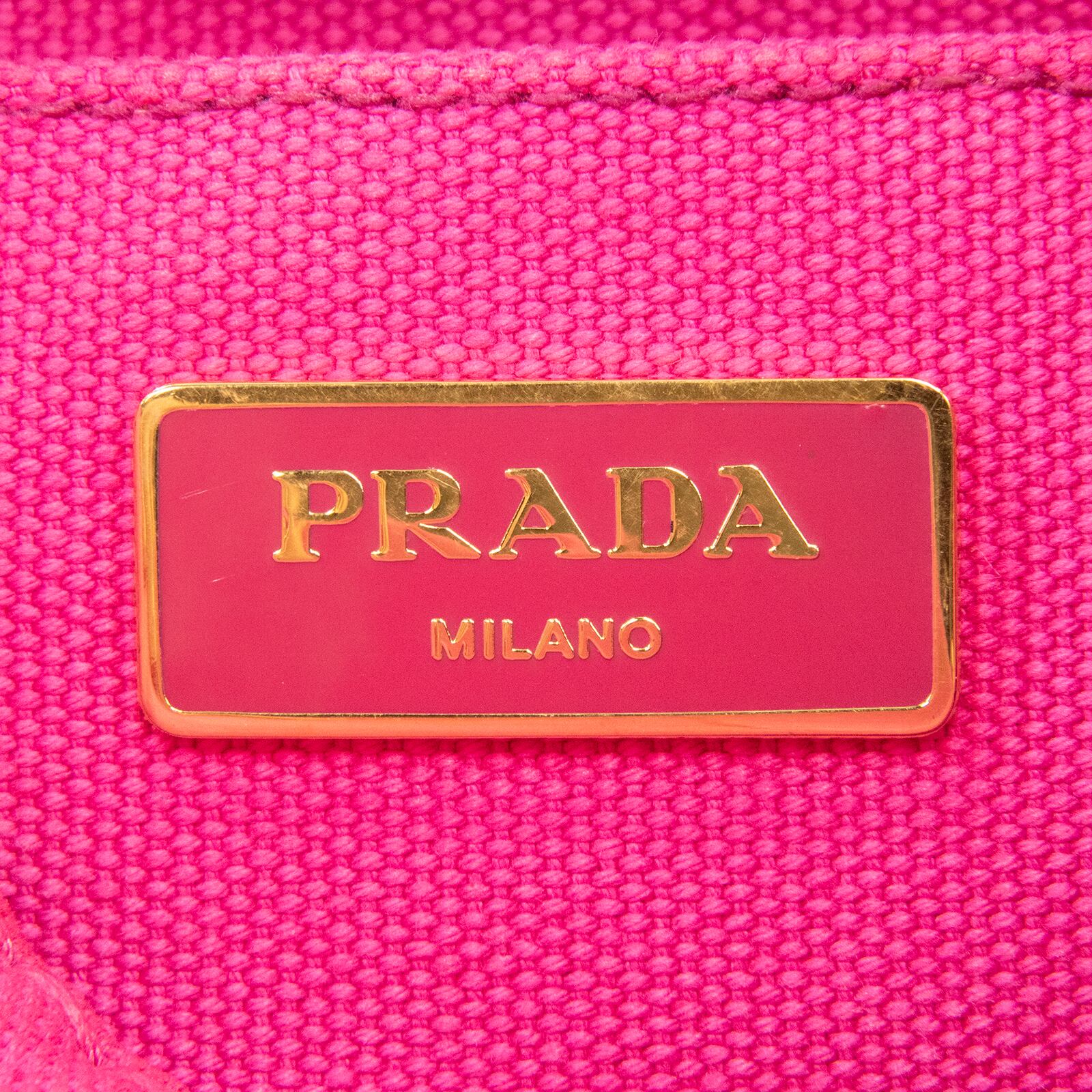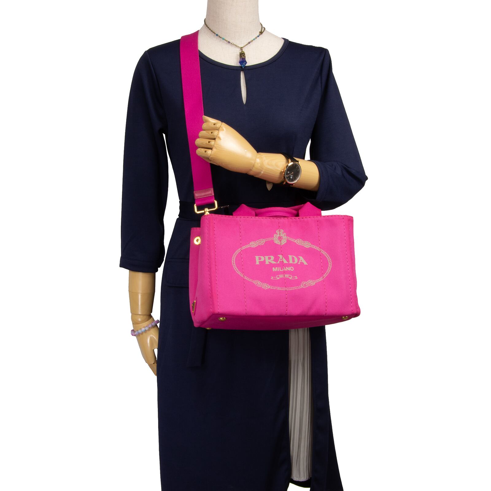 カナパ(SSサイズ・MINI)は女性に大人気のサイズ、さらにフューシャピンクは一番人気のカラーで、前面の「PRADA」の特大ロゴがフューシャピンクのキャンバスによって際立っており、一目でプラダとわかる圧倒的存在感にうっとりさせられます。