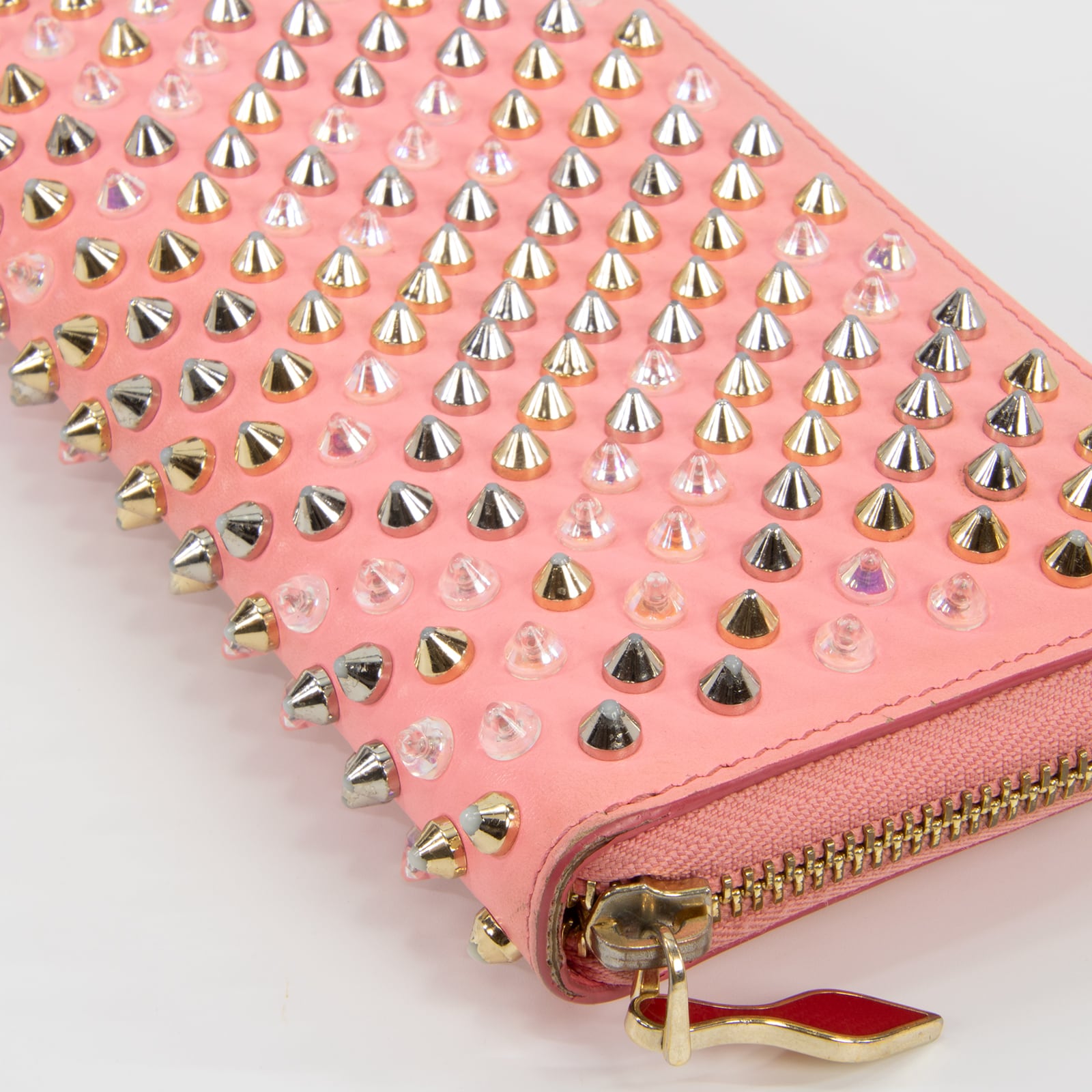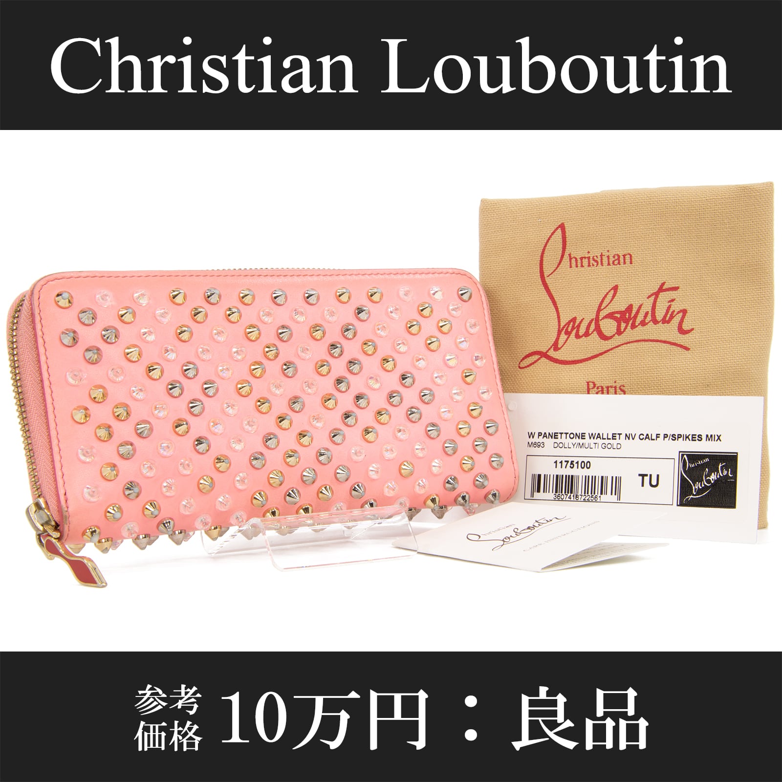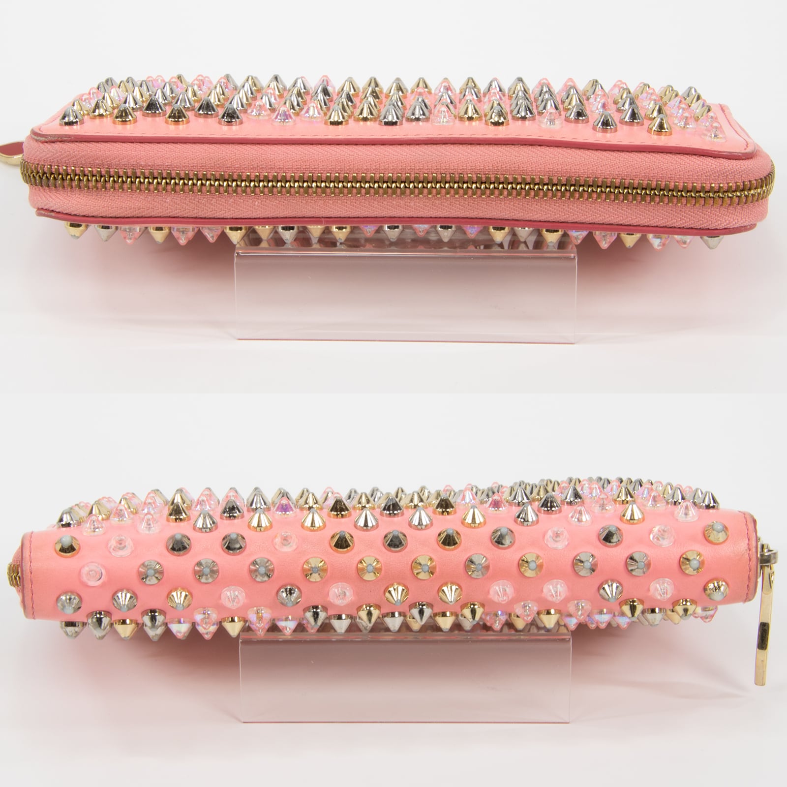 【本物・送料無料・良品】ルブタン・長財布・ラウンドファスナー(パネトーネ・人気・レア・ピンク・レッドソール・トゲトゲ・T009)
