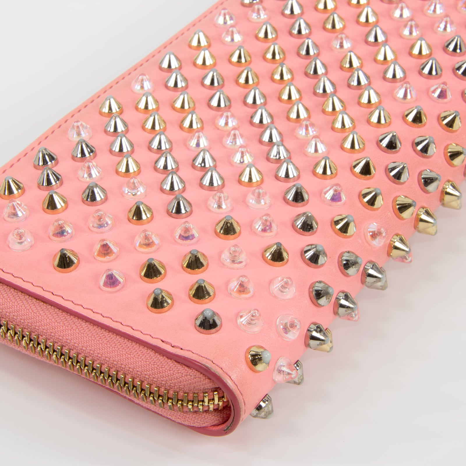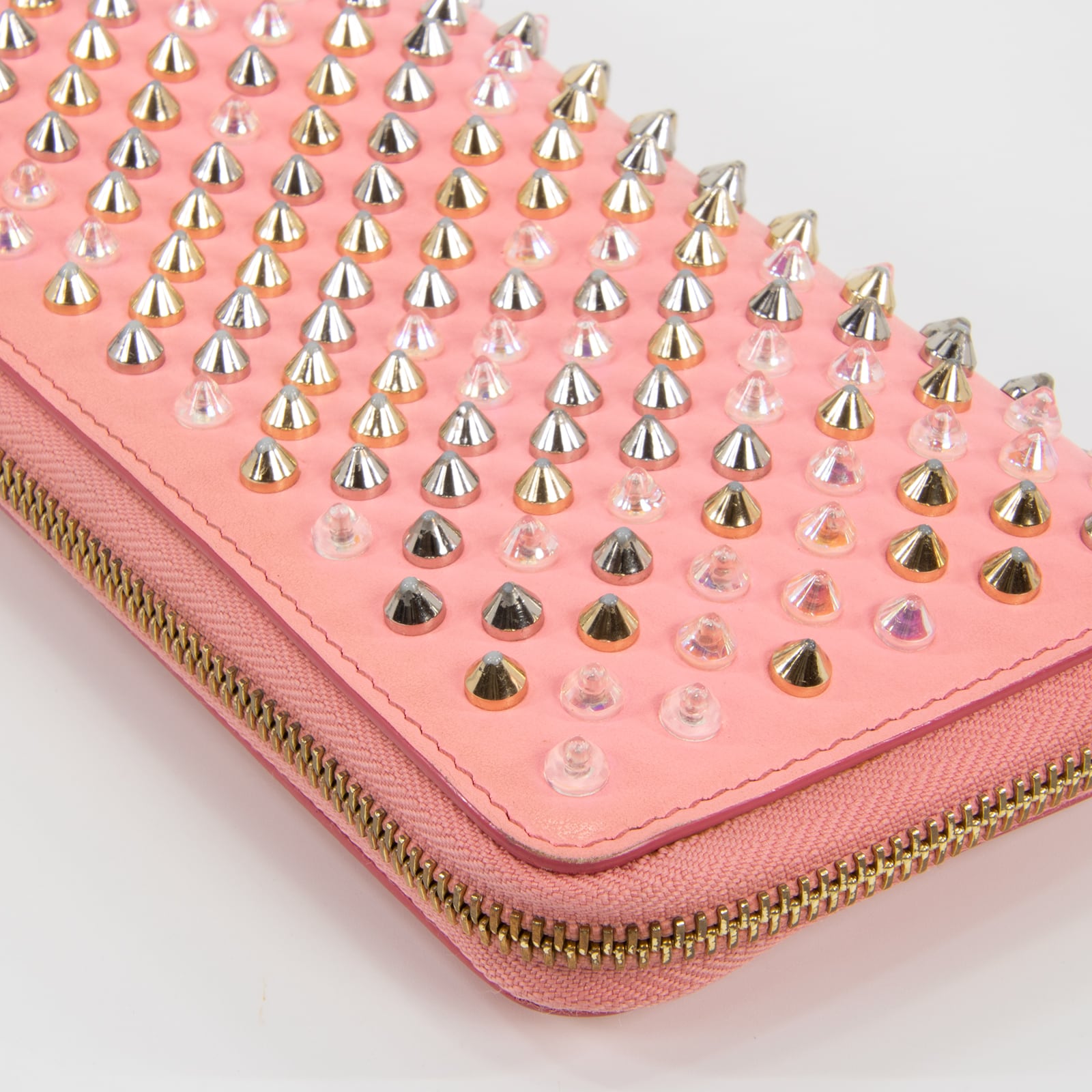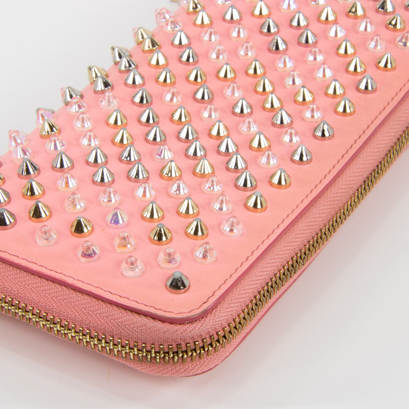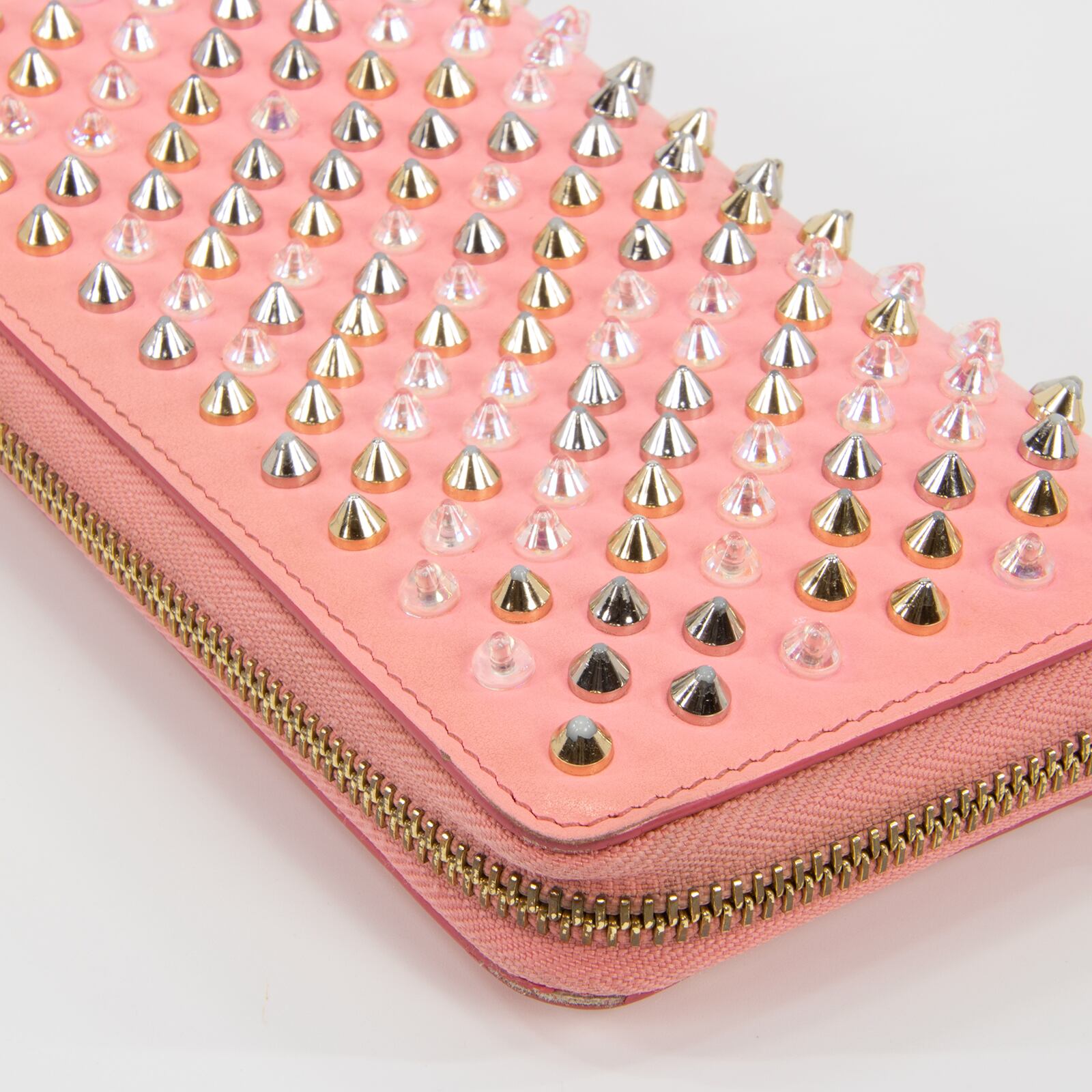【本物・送料無料・良品】ルブタン・長財布・ラウンドファスナー(パネトーネ・人気・レア・ピンク・レッドソール・トゲトゲ・T009)