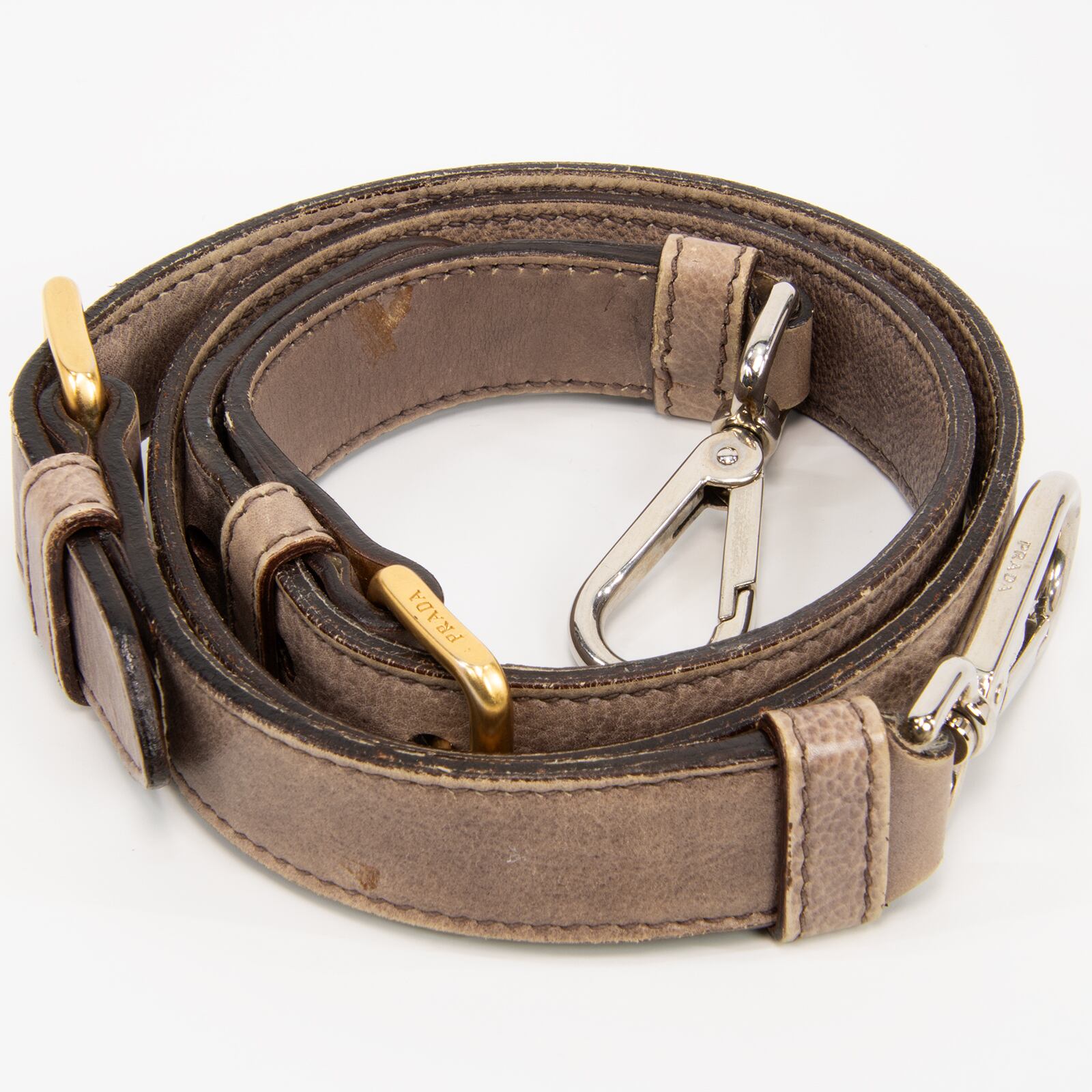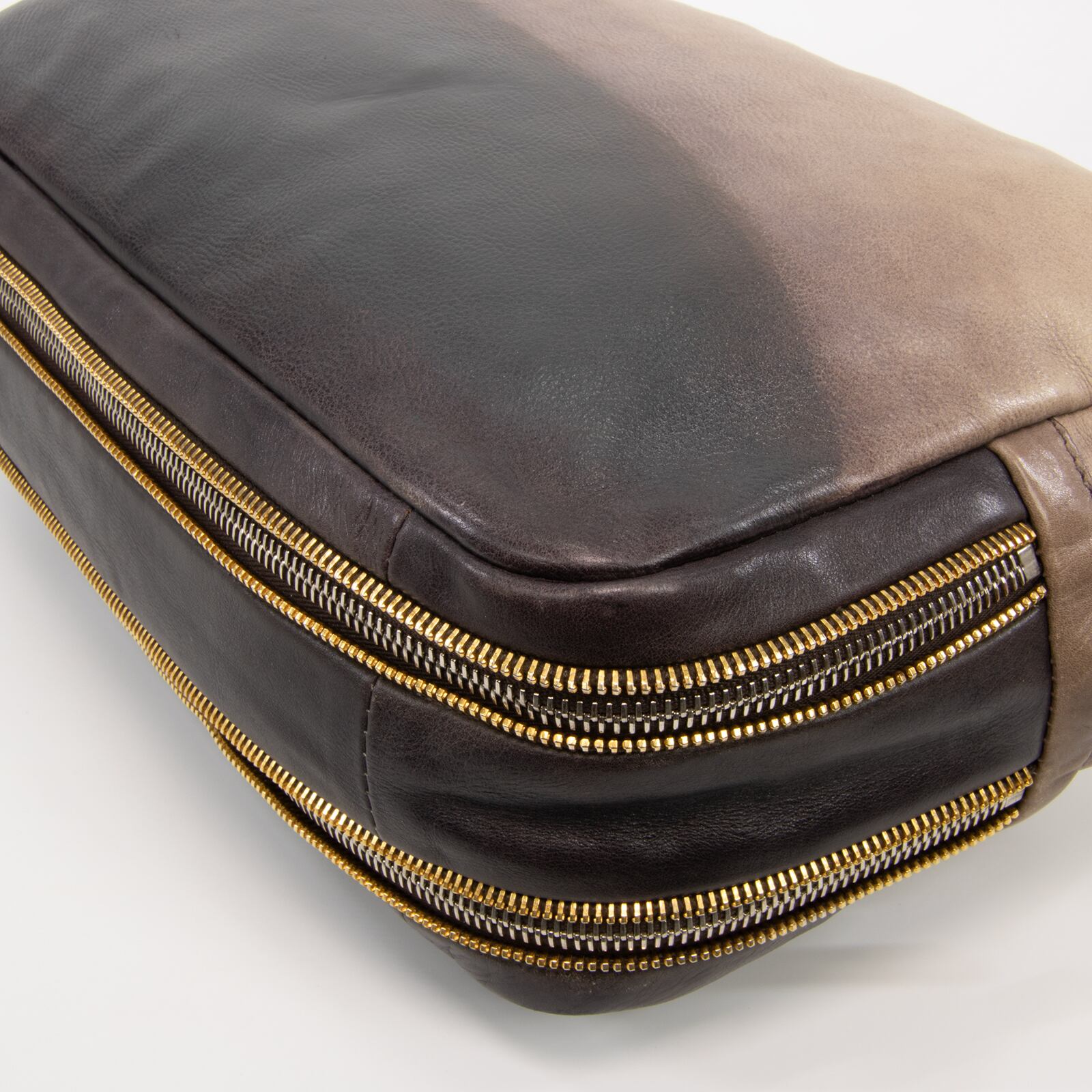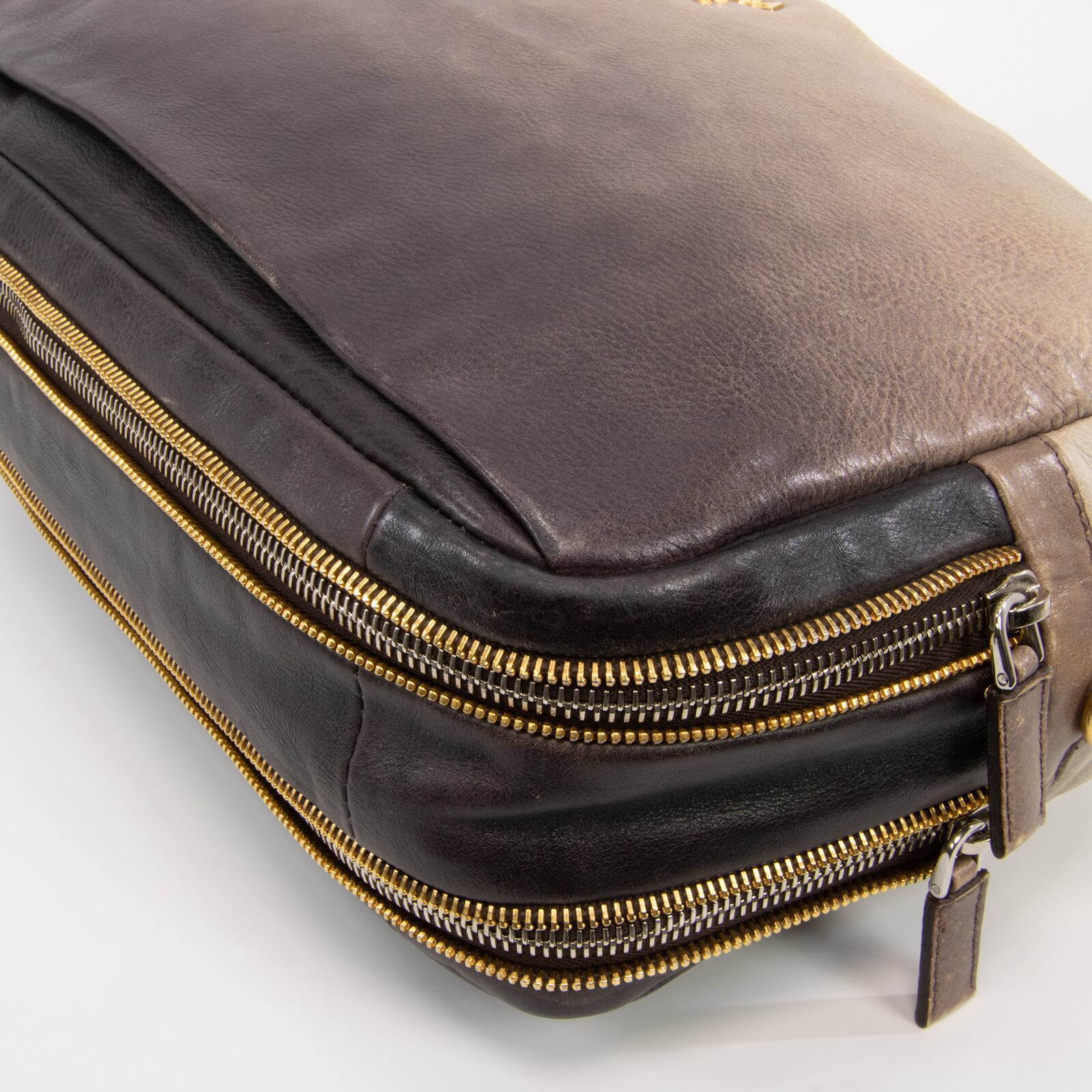 金具がゴールドとシルバーのバイカラー、エレガンスで洗練された都会的な印象のグラデーションレザーが特徴で、前面の大きなPRADAのロゴと相まって、一目でプラダとわかる存在感とただならぬ雰囲気が感じられる逸品でございます。プラダならではの最高級皮革の深い味わいにうっとりさせられます。