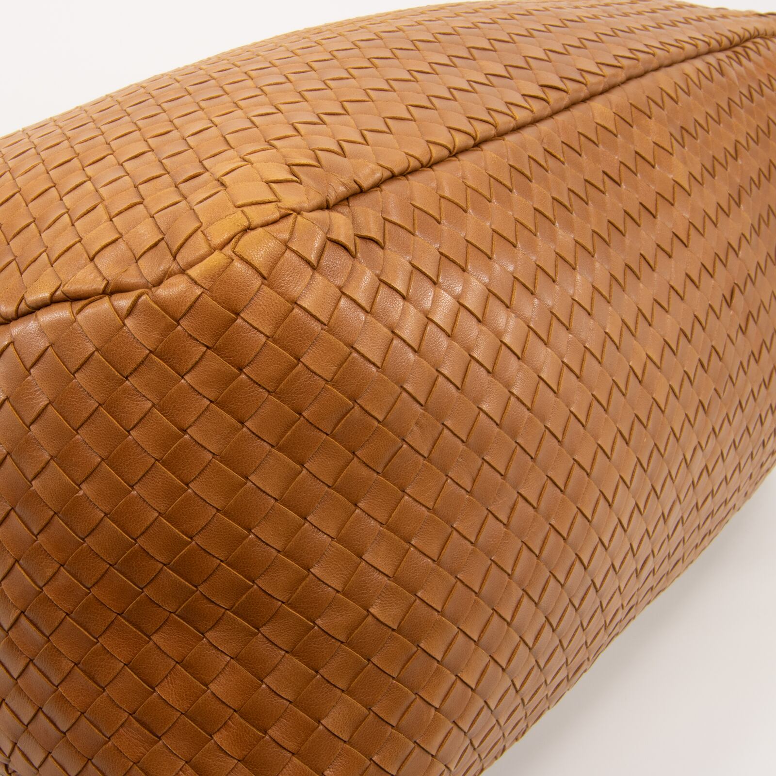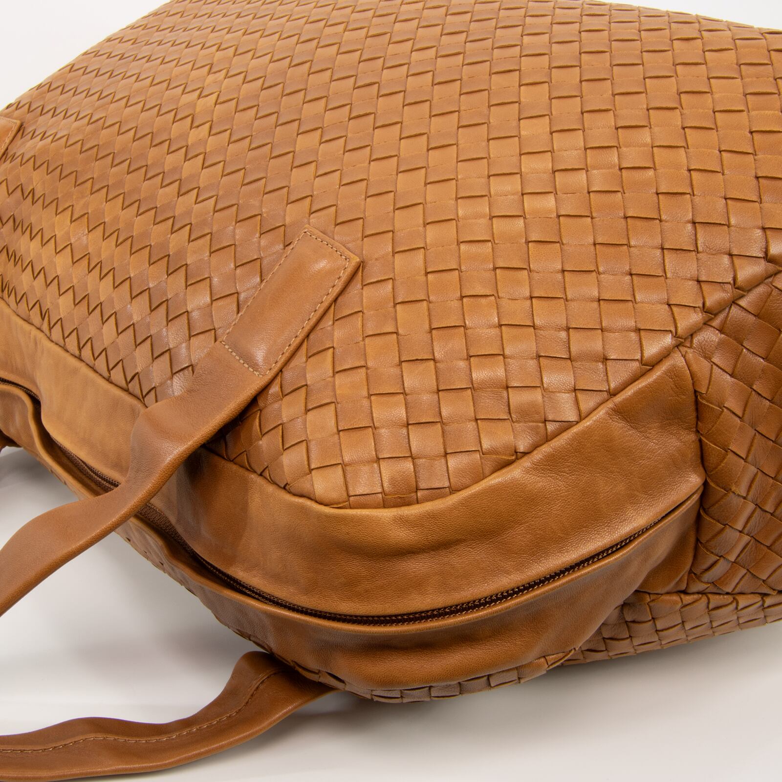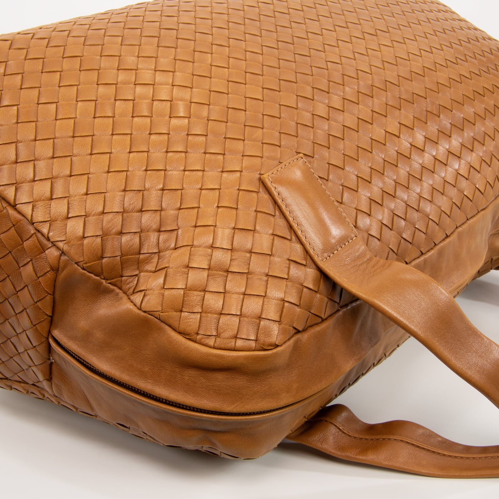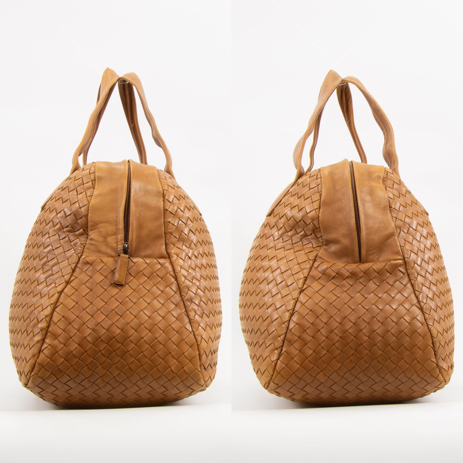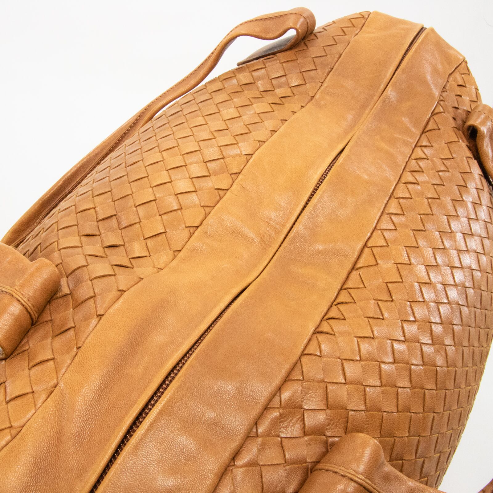 【本物・送料無料・美品】ボッテガ・ボストンバッグ(イントレチャート・綺麗・レア・A4・茶色・ブラウン・ハンドバック・鞄・I152)