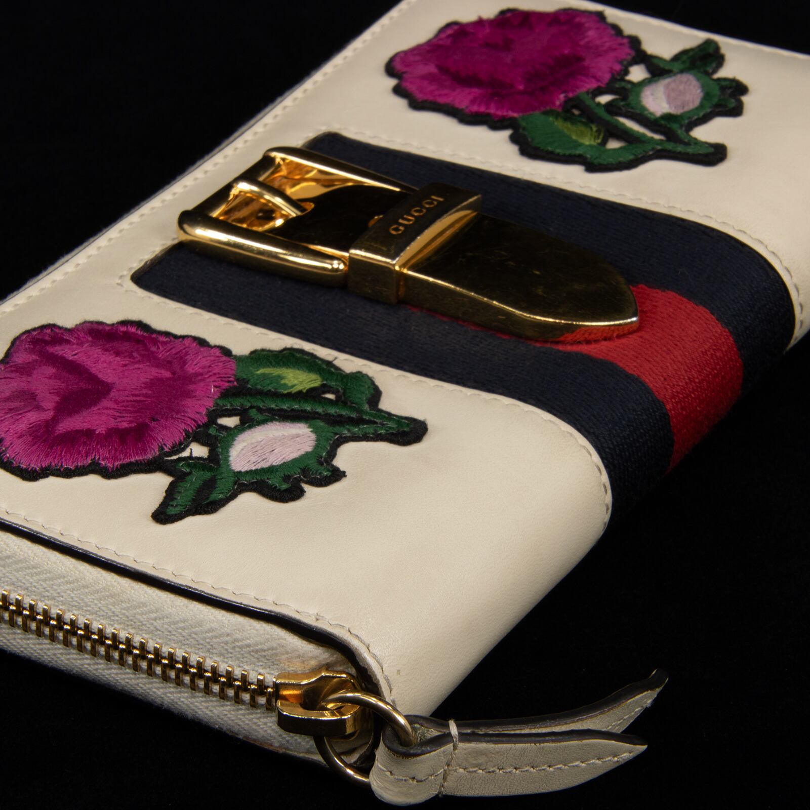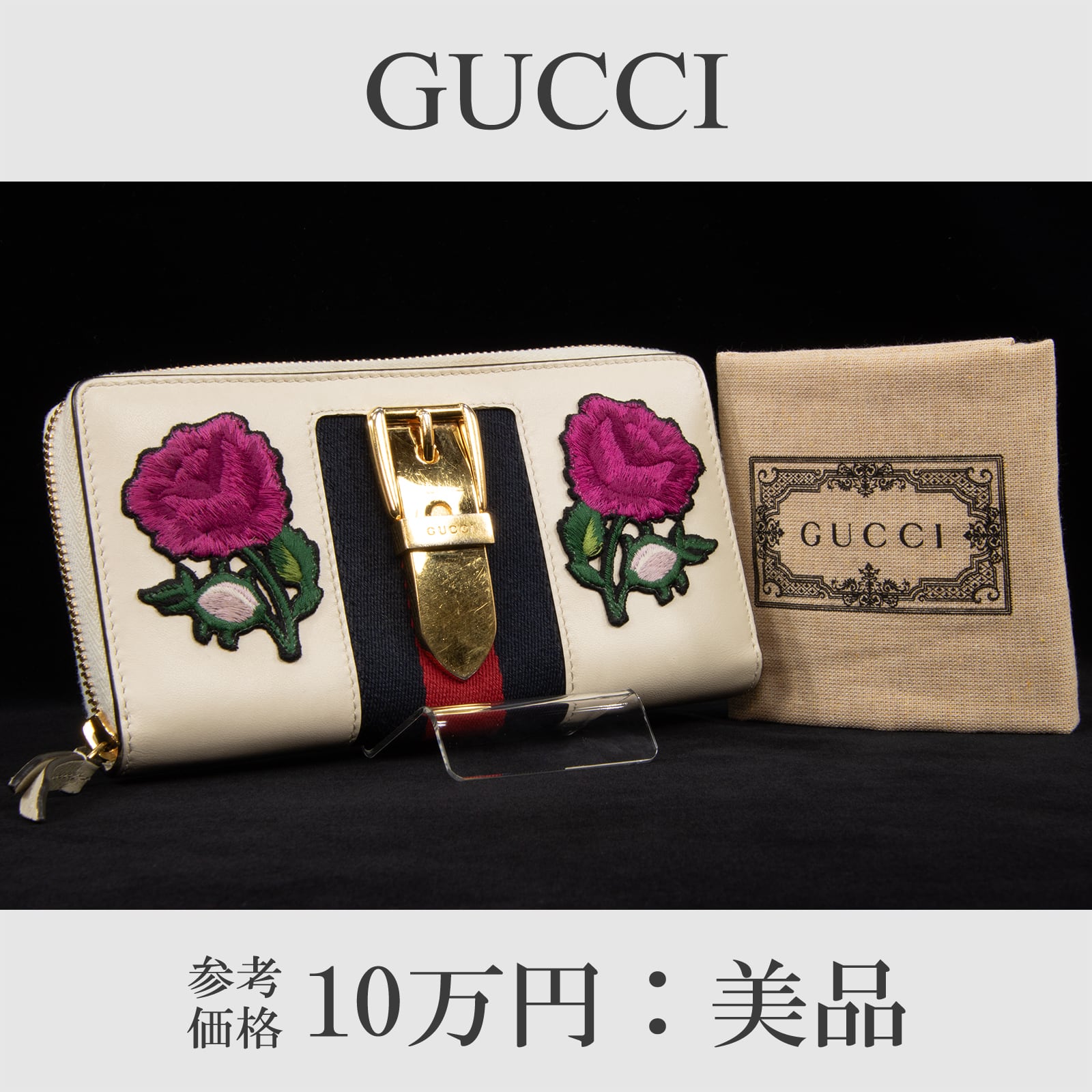 【本物・送料無料・美品】グッチ・長財布・ラウンドファスナー(シルヴィ エンブロイダリー・綺麗・レア・白・薔薇・ローズ・T010)