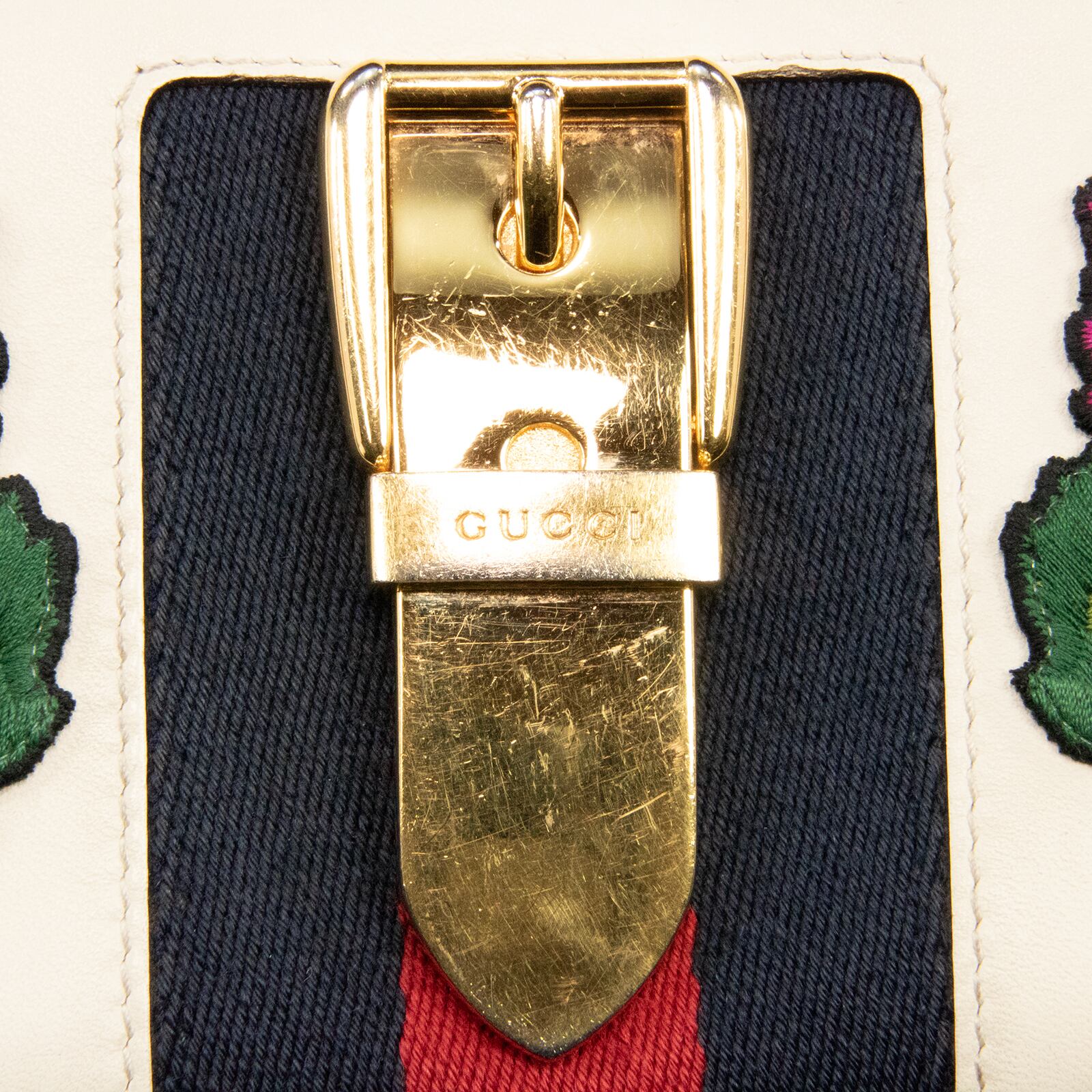 2016年・春夏コレクションで発表された「シルヴィ」は、グッチの大人気ラインとして、全世界のセレブや有名人から絶大な人気を誇っております。中央前面のウェブストライプ・ゴールドカラーのチェーンバックル・2輪のローズエンブロイダリーの刺繍が、一目でグッチとわかる存在感とエレガントな大人の女性の魅力が絶妙に組み合わさった逸品でございます。