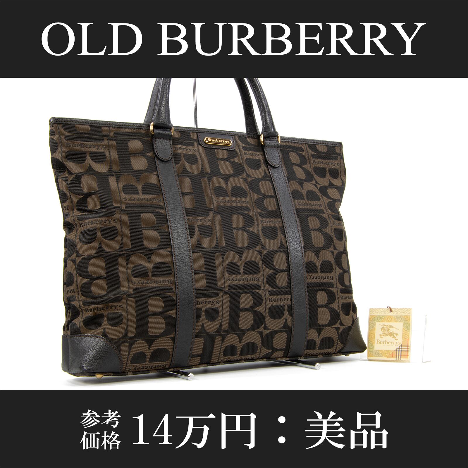 【本物・送料無料・美品】バーバリーズ・ハンドバッグ(綺麗・レア・A4対応・男女兼用・ホースロゴ・黒・ブラック・茶色・鞄・L107)