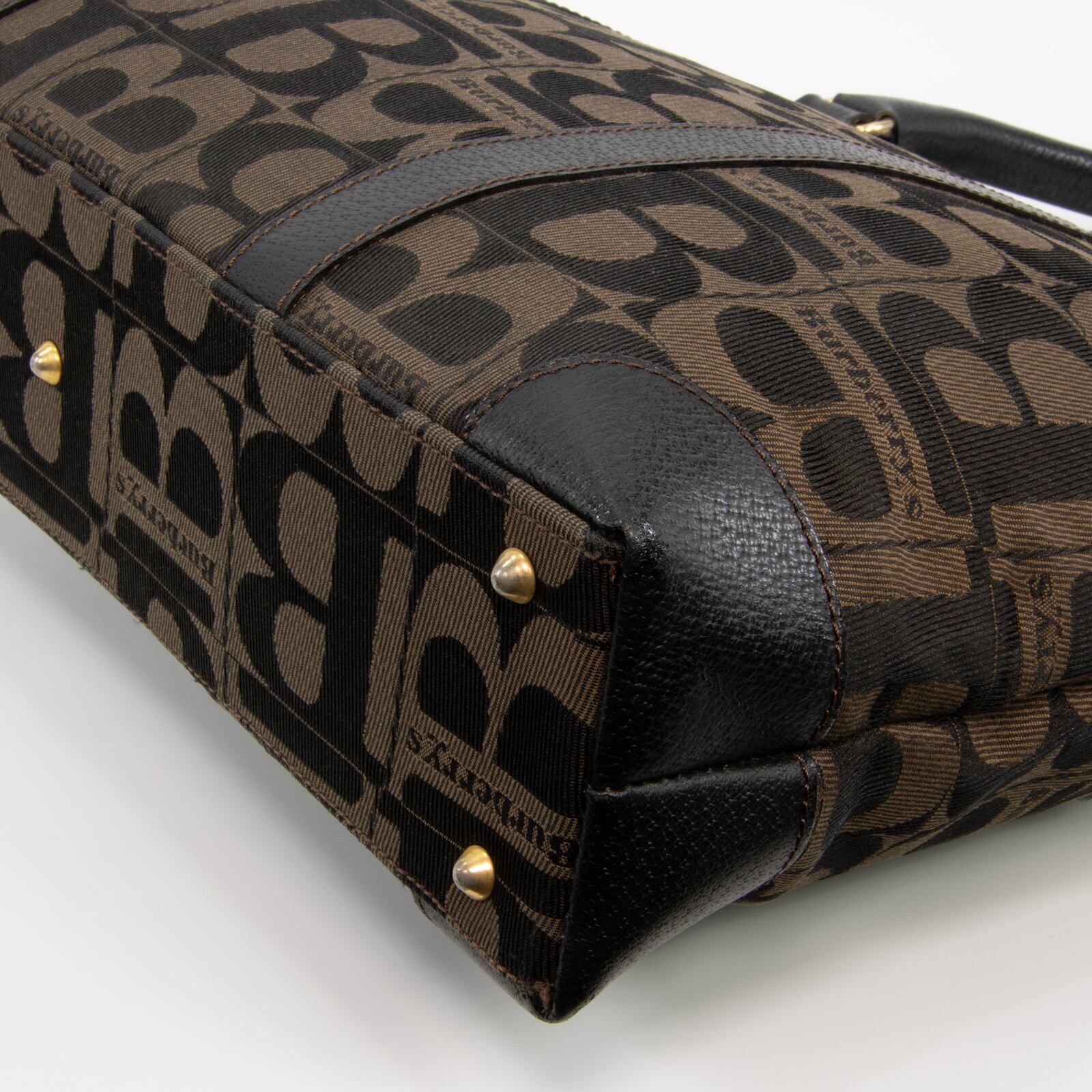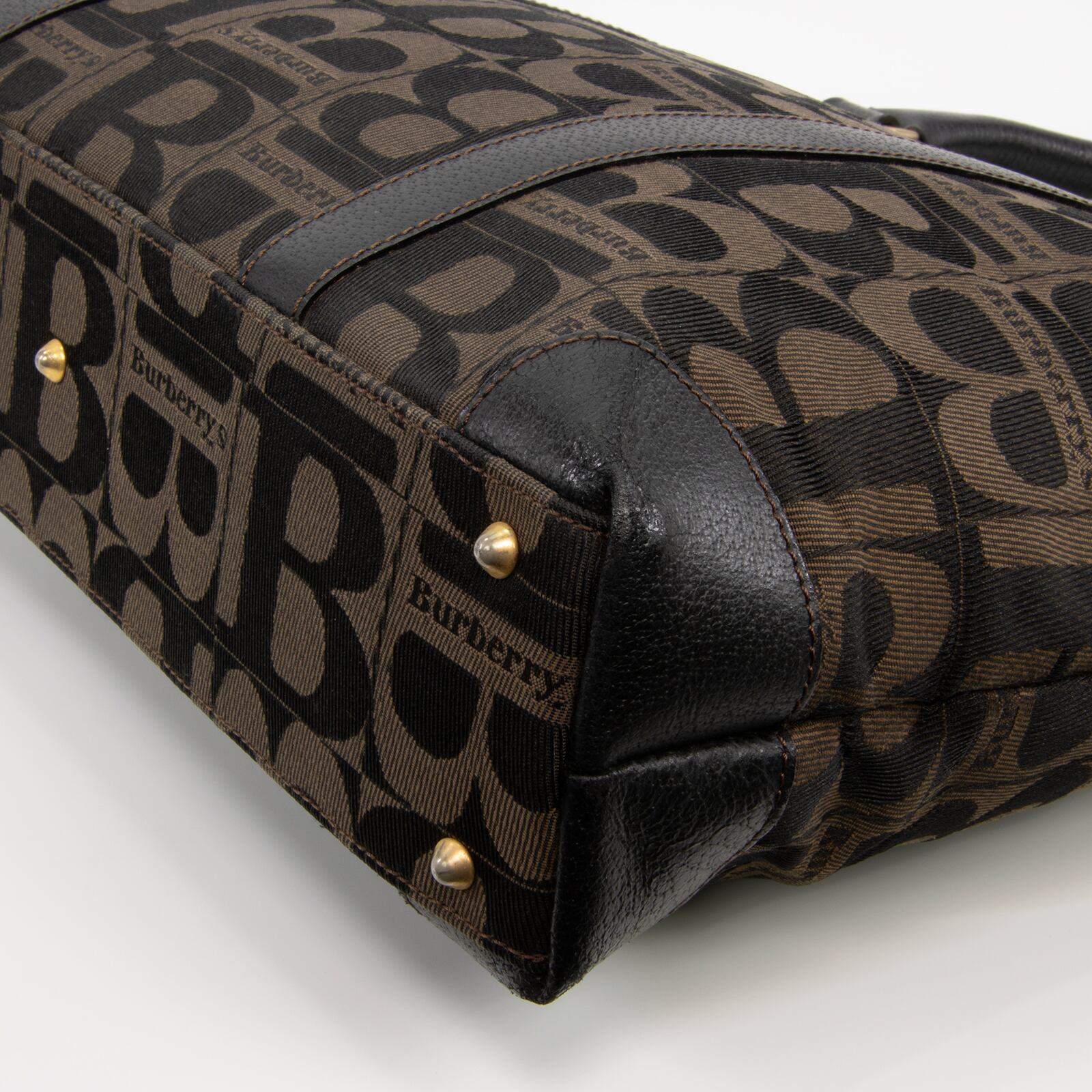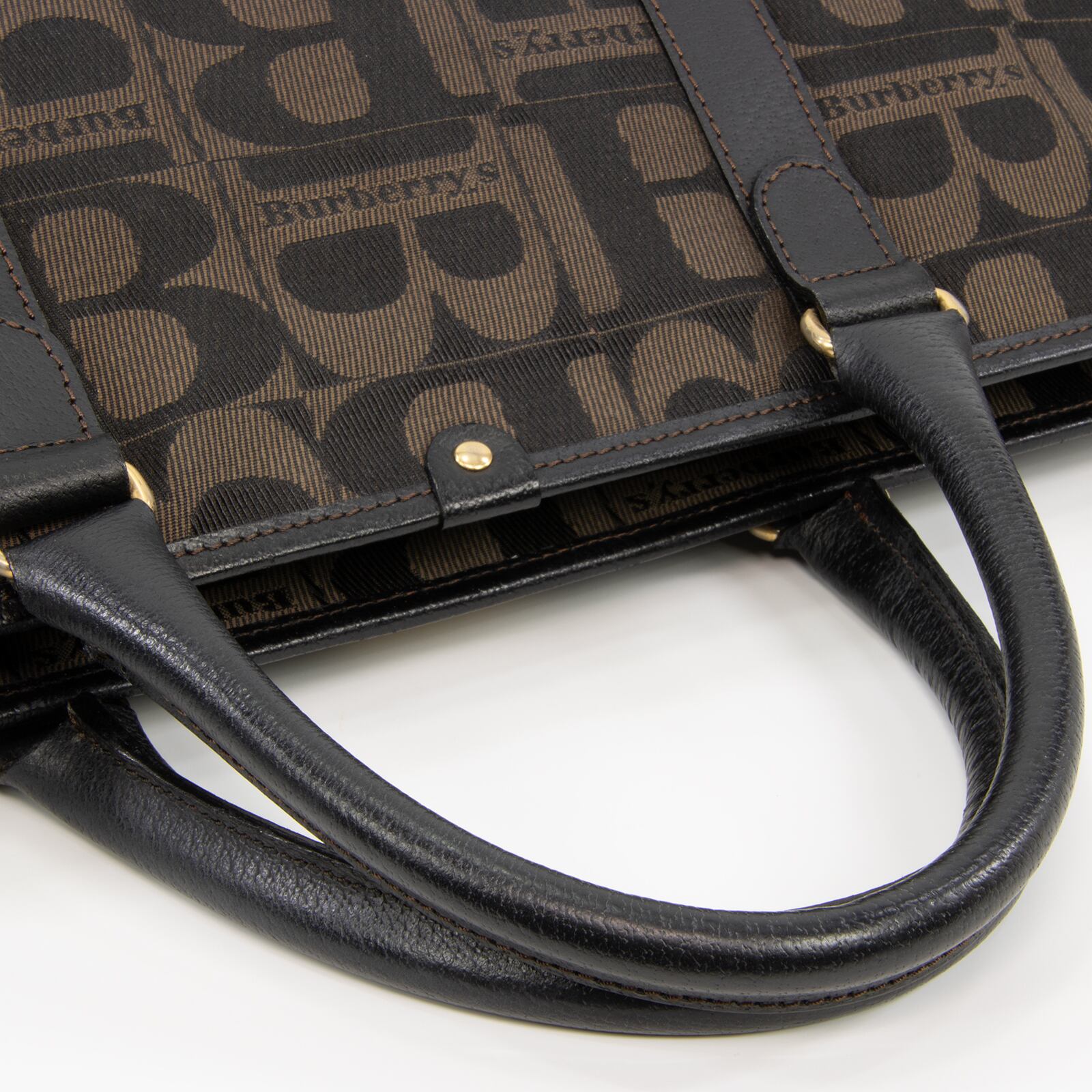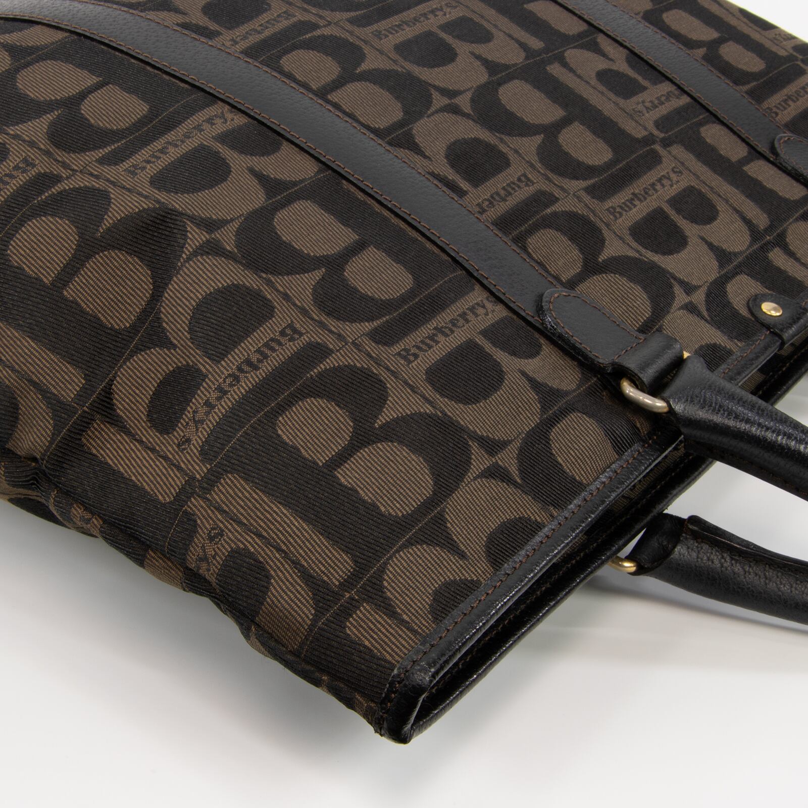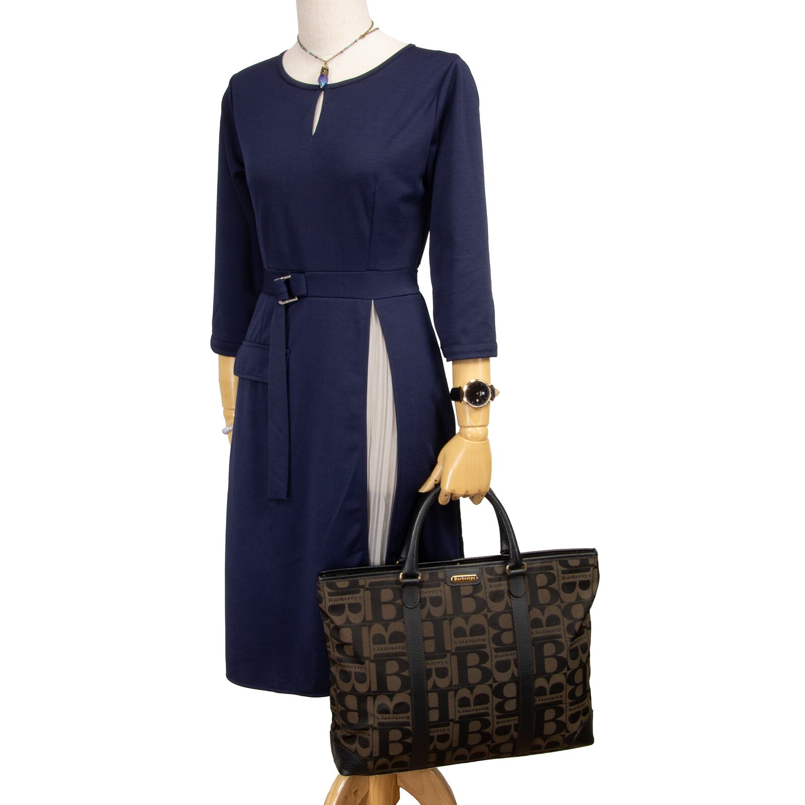 バッグの外側全面に、「Burberry.s」や特大Bマークがあしらわれており、落ち着いた配色のキャンバス・レザーと相まって、一目でバーバリーとわかる存在感とエレガントな大人の魅力が、絶妙なバランスで感じられる逸品でございます。