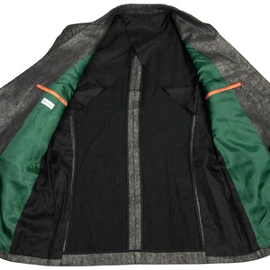 都会的な印象と光沢が美しいジャケットで、ウレタン樹脂加工により、傷や汚れに強い仕上がりとなっております。ダブルジャケットならではの重厚感やフォーマルさ、オーセンティックでただならぬ雰囲気が、絶妙に組み合わさった逸品でございます。