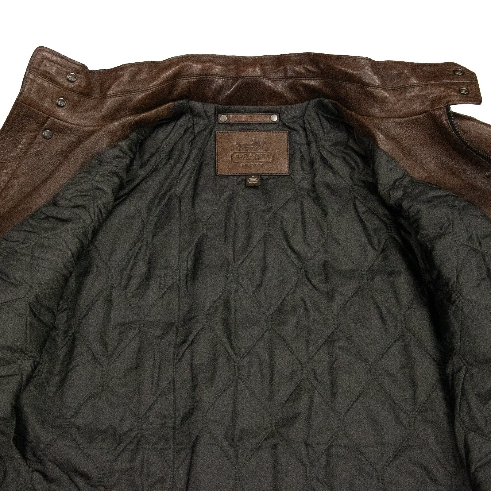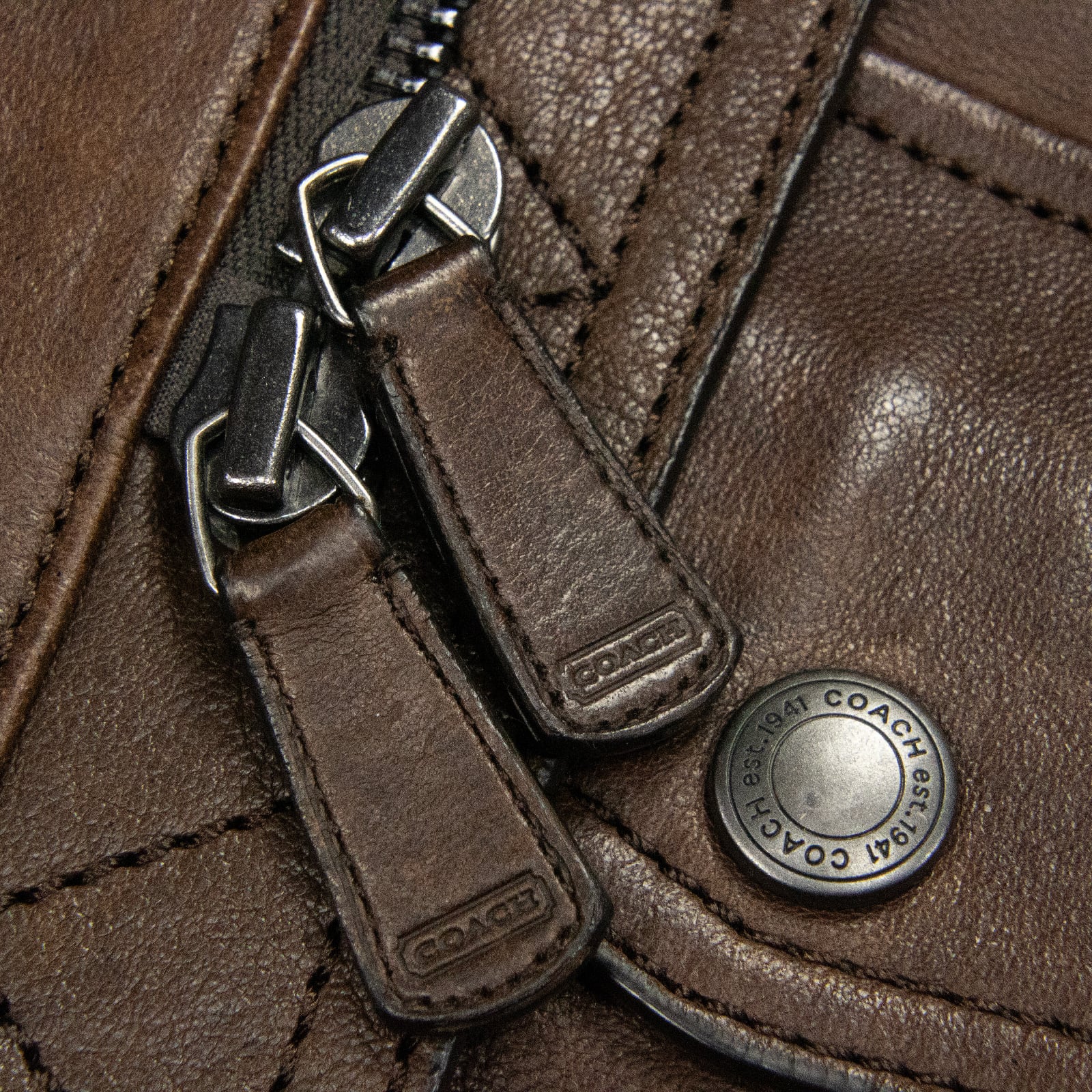 【本物・送料無料・美品】コーチ・レザージャケット・革ジャン(ラムレザー・綺麗・ライダース・メンズ・茶色・ブラウン・Y007)