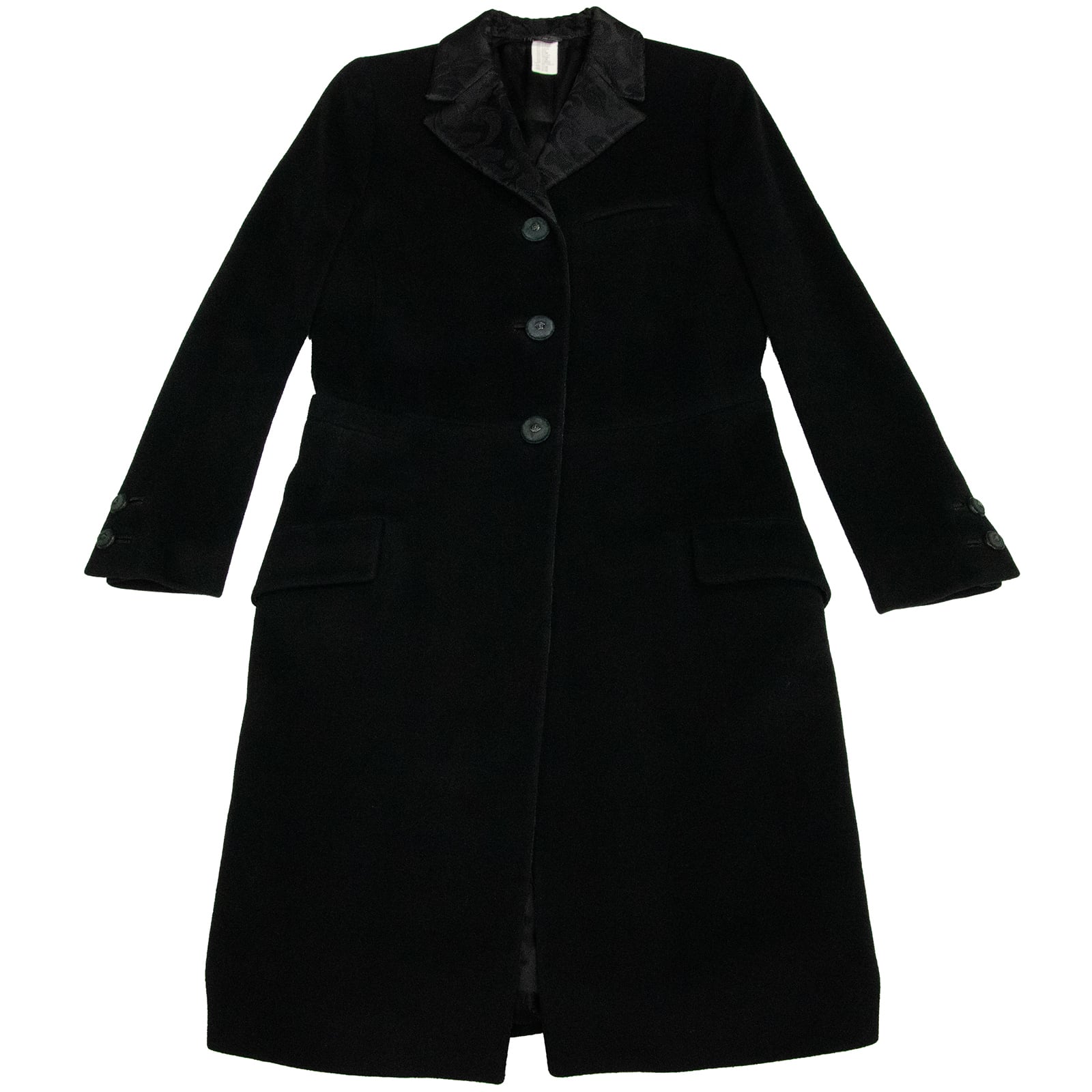 【本物・送料無料・美品】ジャンニ・ヴェルサーチェ・コート(アンゴラ・綺麗・メドゥーサ・アカンサス・レア・黒・ブラック・P001)