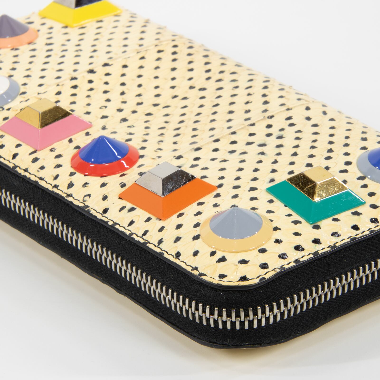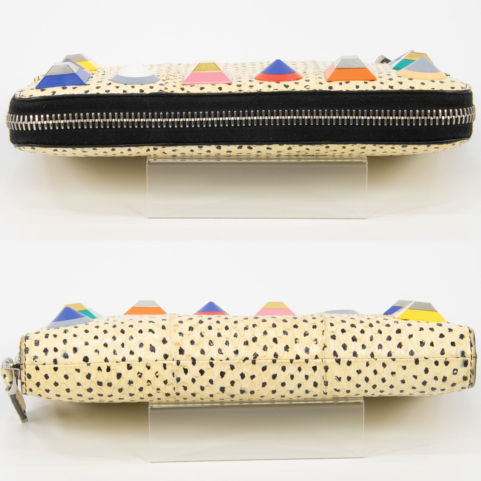 レインボーの中でも希少なマルチスタッズエディションで、合計10種類のスタッズのモチーフが目を惹きます。すべて手作業で繊細に描かれたドット柄の最高級パイソンと相まって、一目でフェンディとわかる存在感と高級感にうっとりさせられます。
