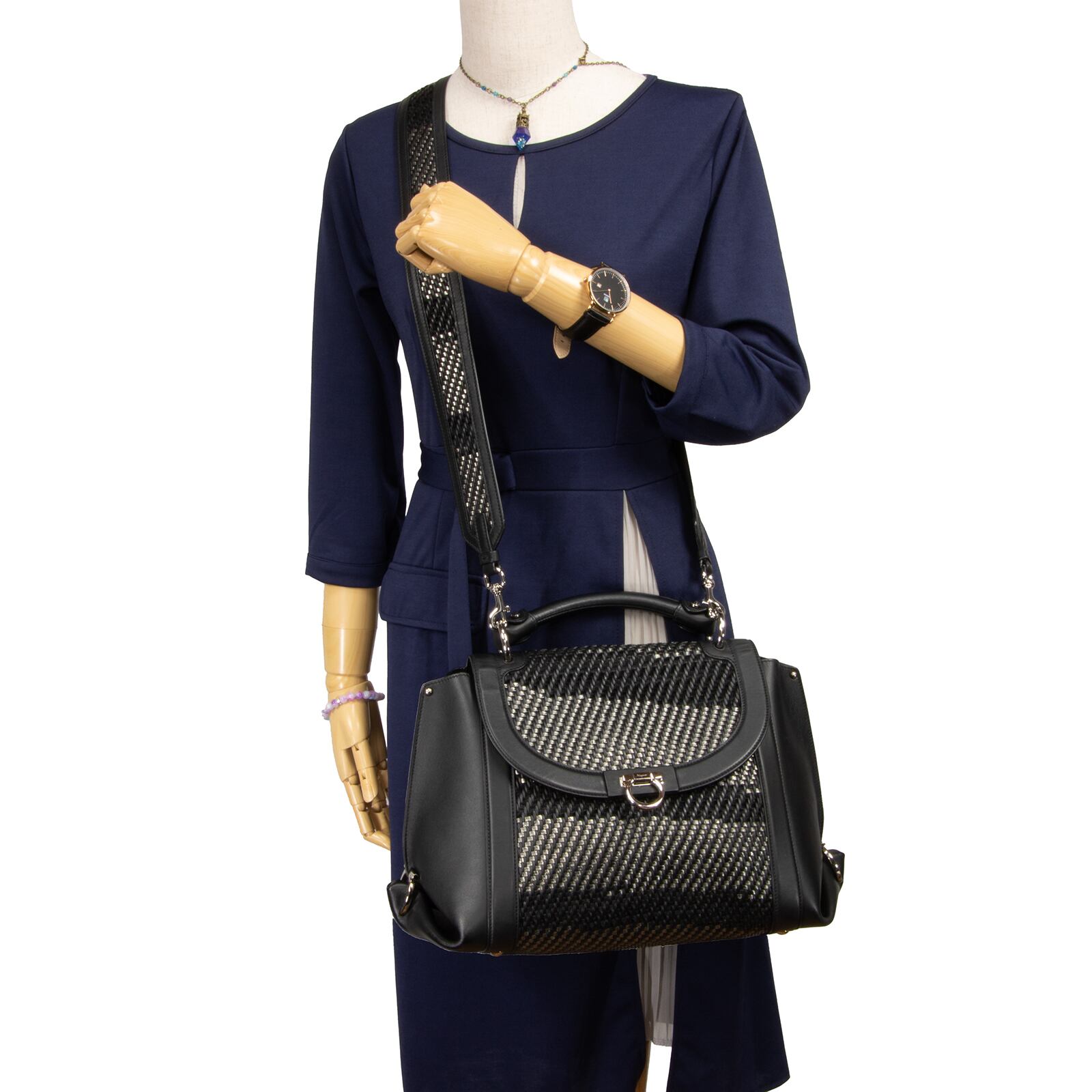 【本物・送料無料・美品】フェラガモ・2WAYショルダーバッグ(ハラコ・ソフィア・人気・綺麗・レア・斜め掛け・黒・ブラック・E310)