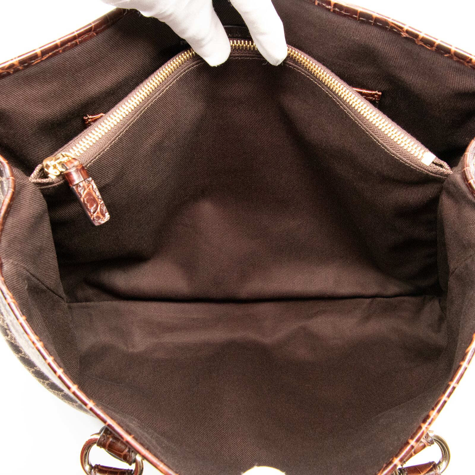 セリーヌのロゴをモノグラムのようにあしらったマカダム(ブラゾン)総柄が特徴で、一目でセリーヌとわかる存在感がありながら、クロコダイル型押しレザーの高級感と相まって、エレガントで落ち着いた大人の魅力が感じられる逸品でございます。