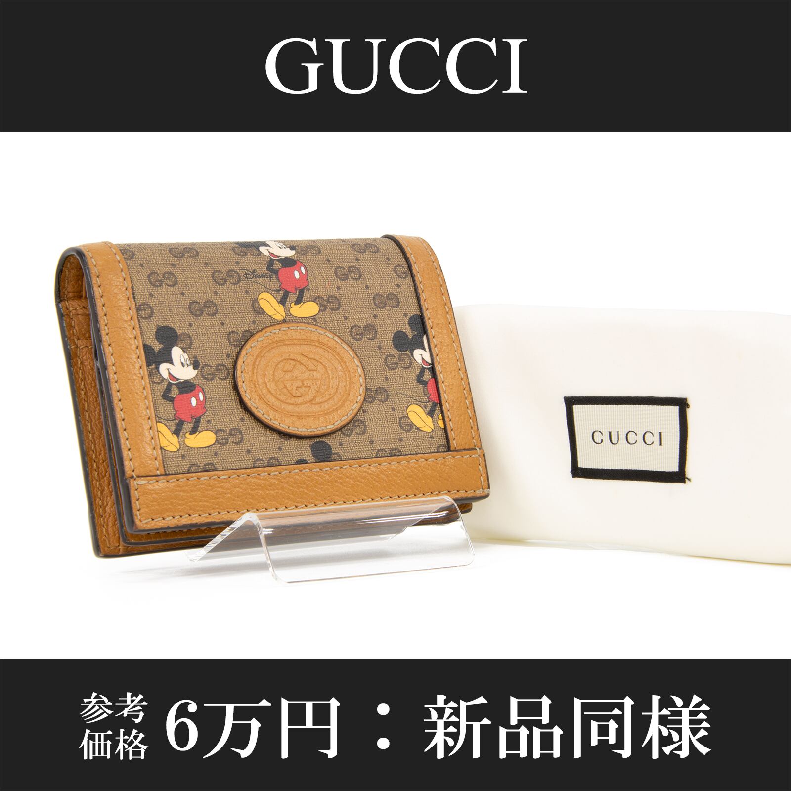 【本物・送料無料・新品同様】グッチ・短財布・二つ折り財布(ディズニーコラボ・GGスプリーム・人気・綺麗・レア・ミッキー・T020)