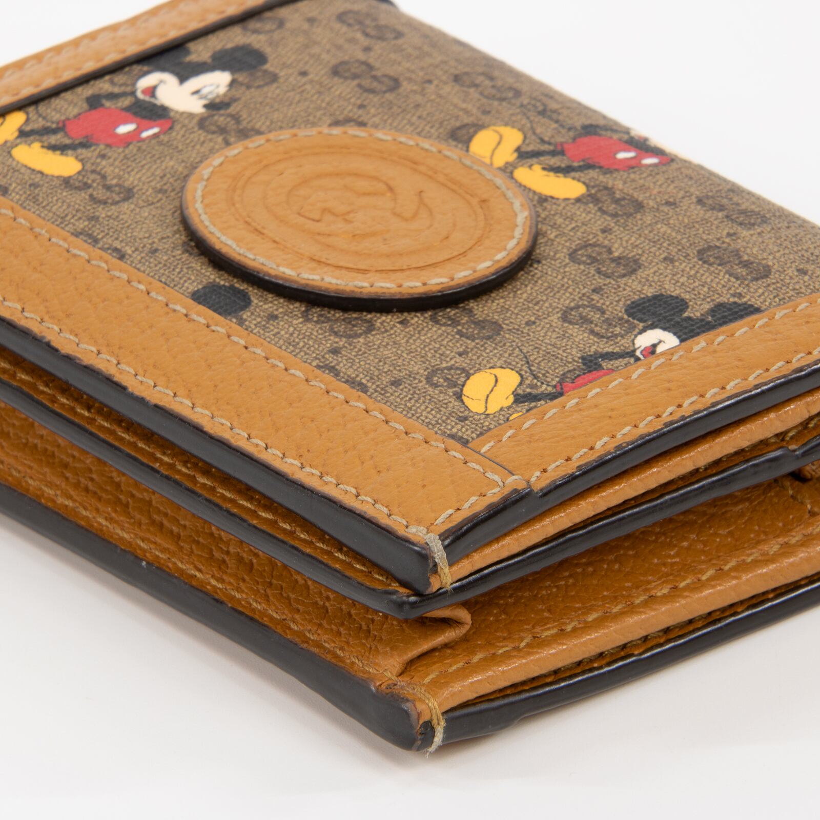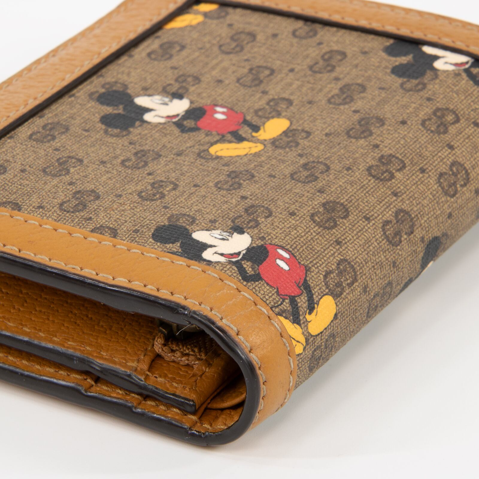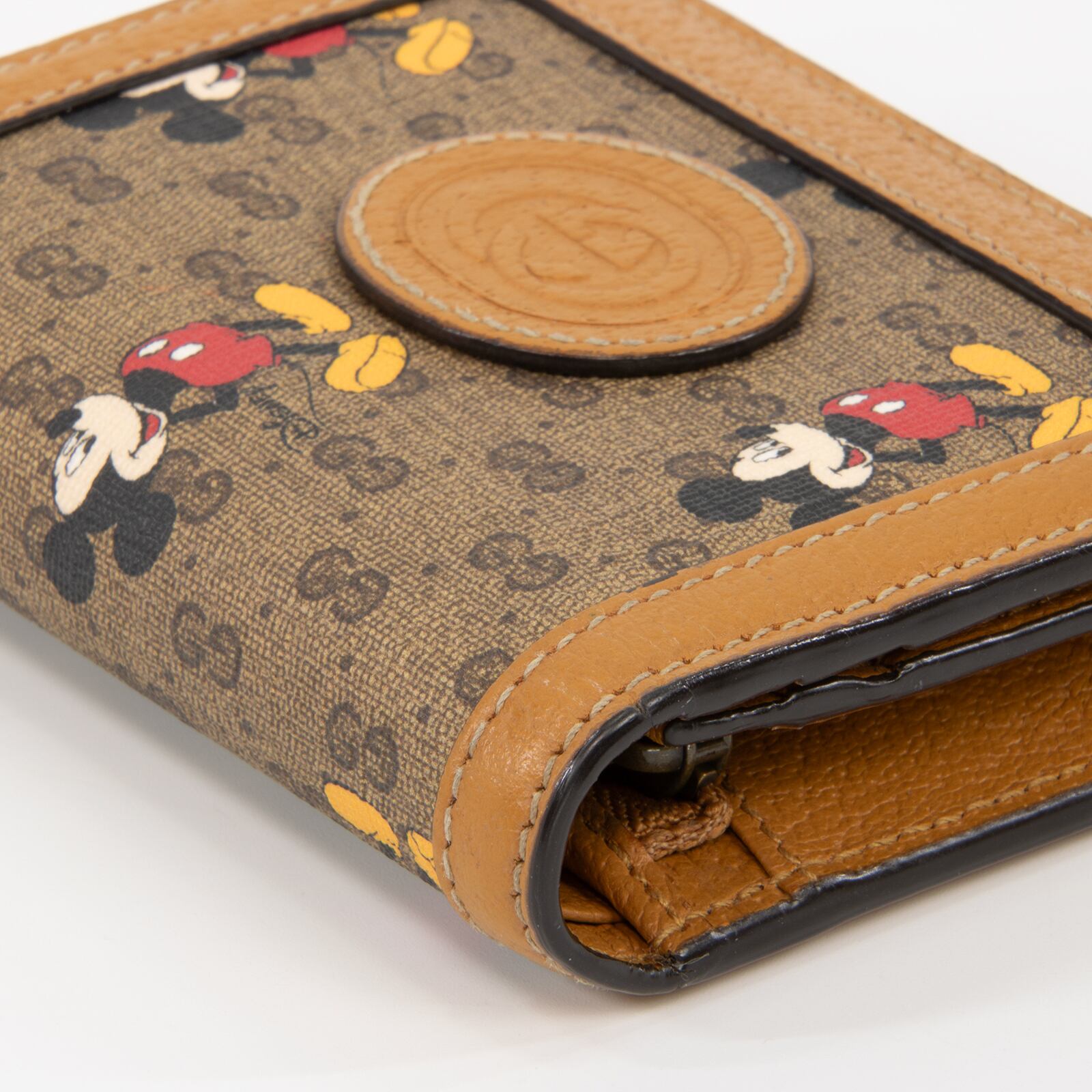 こちらの財布はディズニーコラボの中でも圧倒的人気がある、ミッキーマウスが描かれたモデルで、ドナルドのモデルの大きめなGG柄とは違い、小さめなマイクロGG柄が描かれているため、グッチの伝統的な美しさとミッキーマウスの存在感が、絶妙なバランスで調和している逸品でございます。