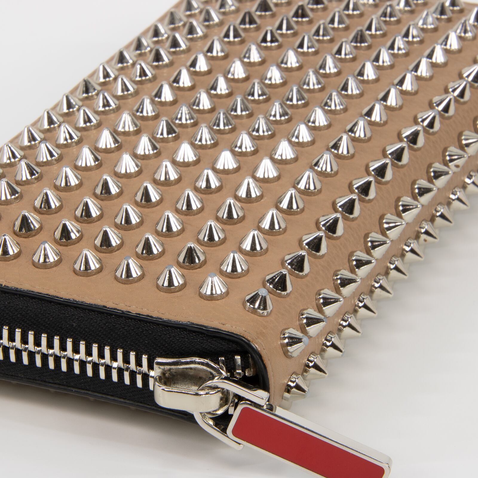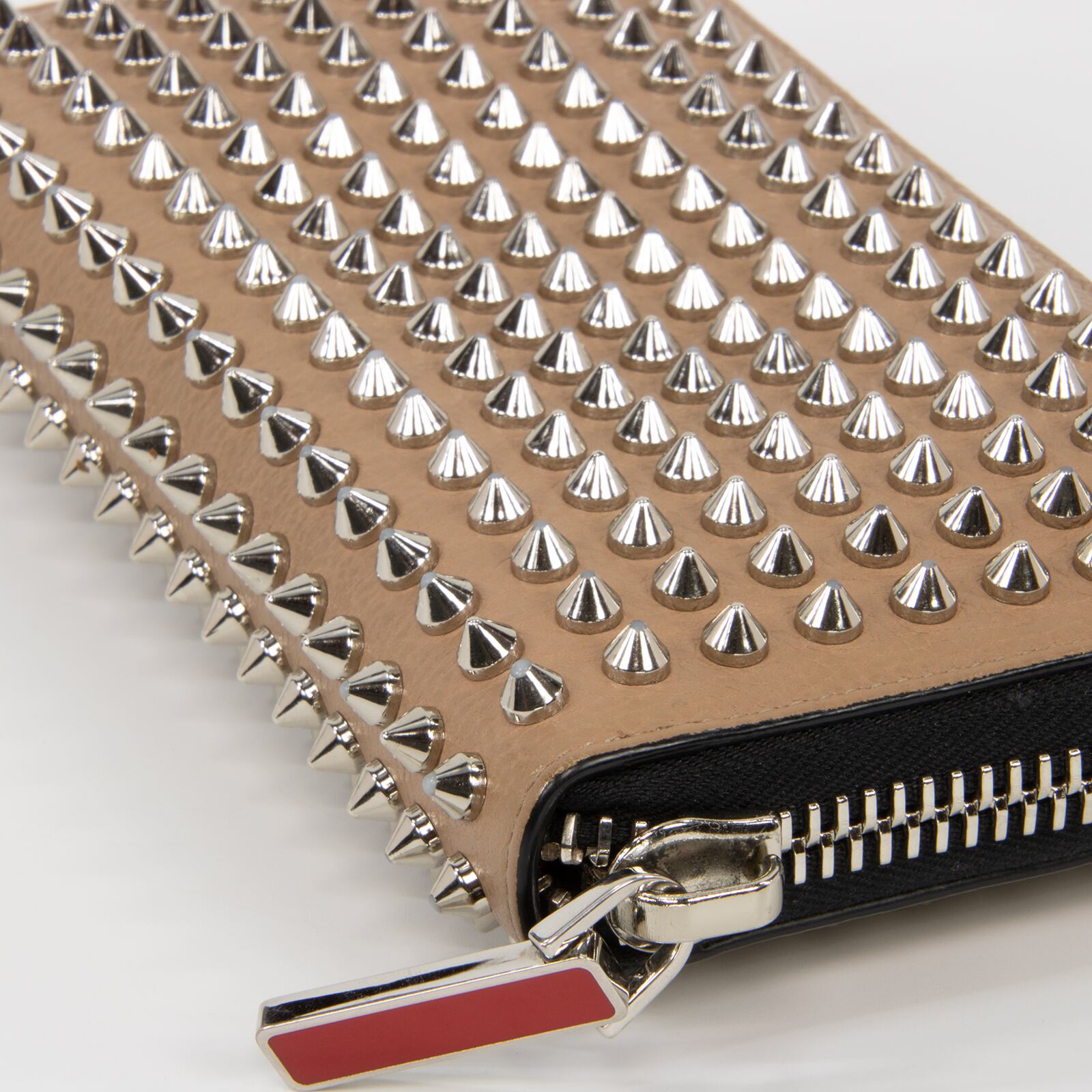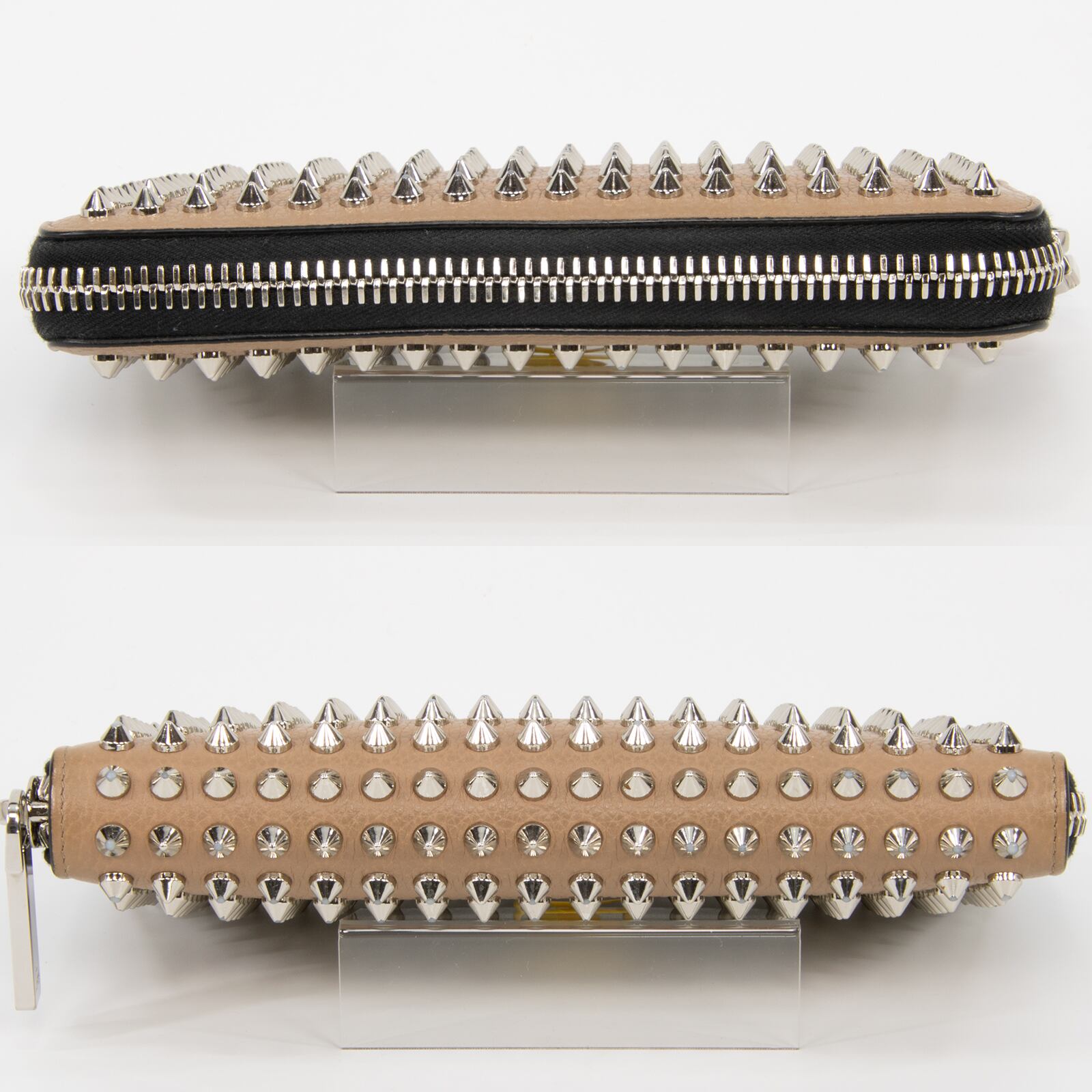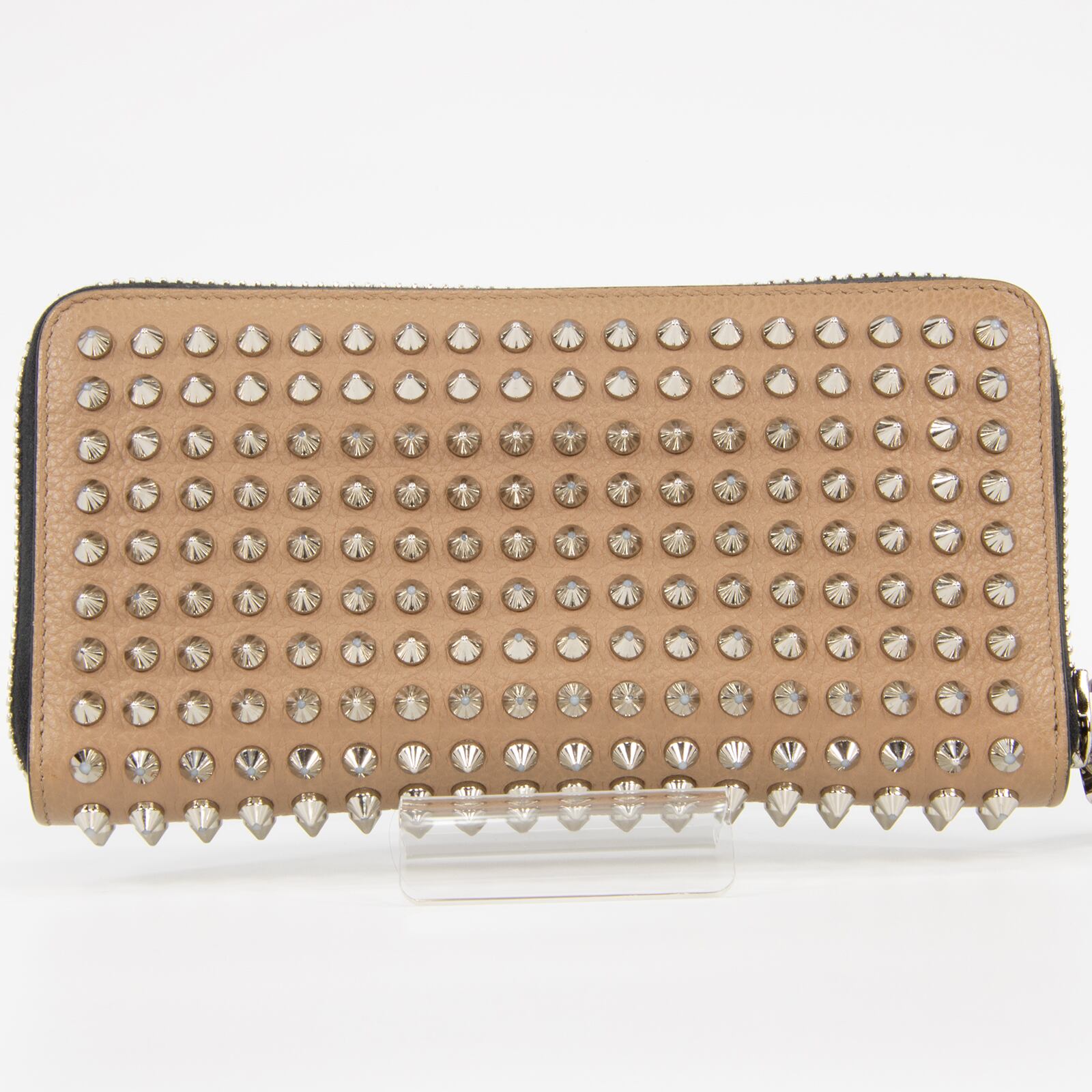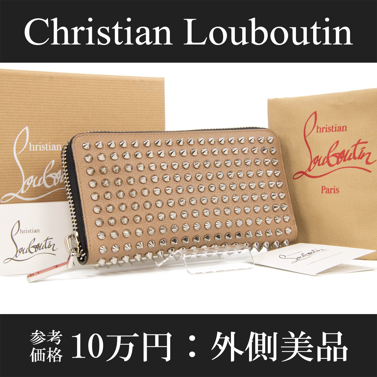 【本物・送料無料・外側美品】ルブタン・長財布・ラウンドファスナー(パネトーネ・レア・ベージュ・スタッズ・トゲトゲ・T022)