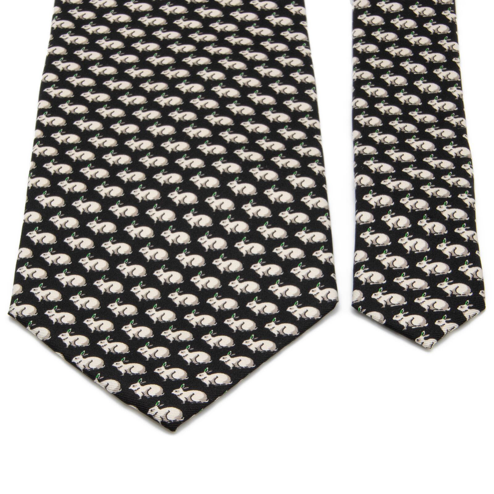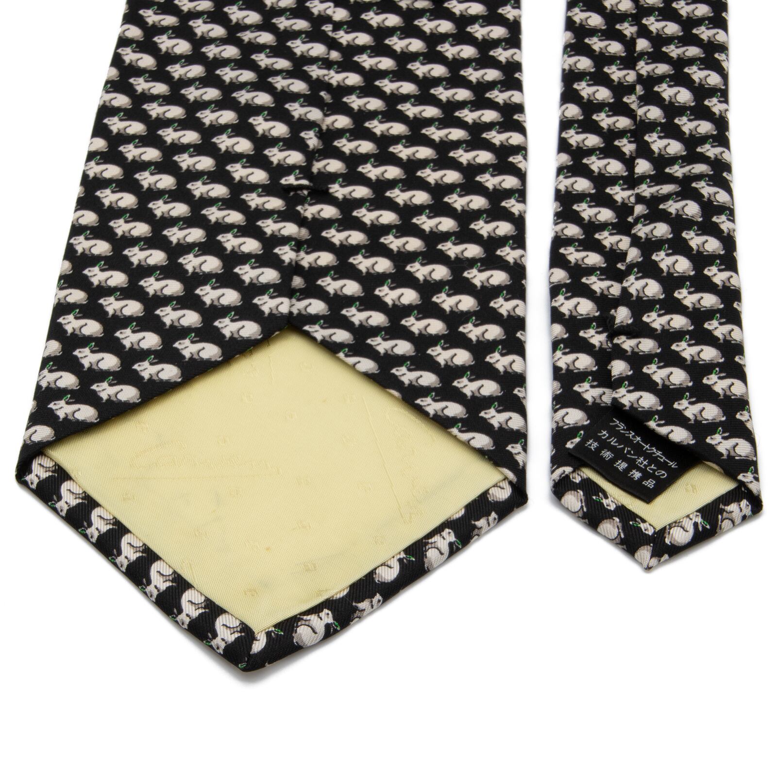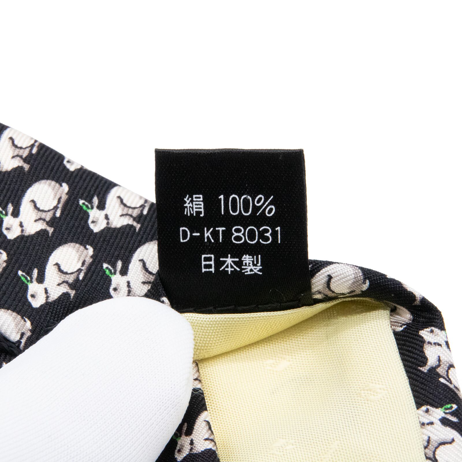 【本物・送料無料・新品】カルヴェン・小紋ネクタイ(シルク・綺麗・ウサギ・兎・レア・動物・ホワイト・ブラック・かわいい・N024)