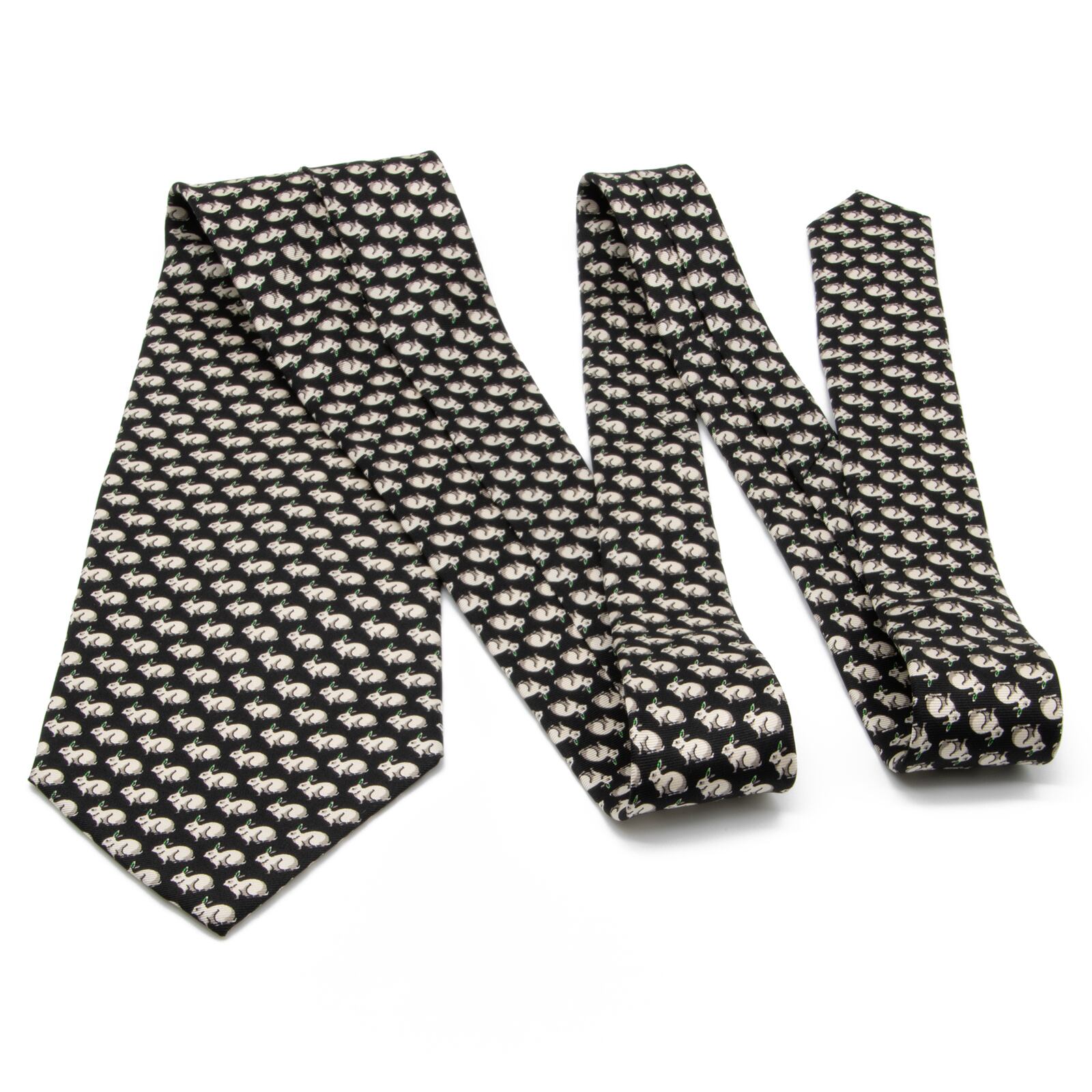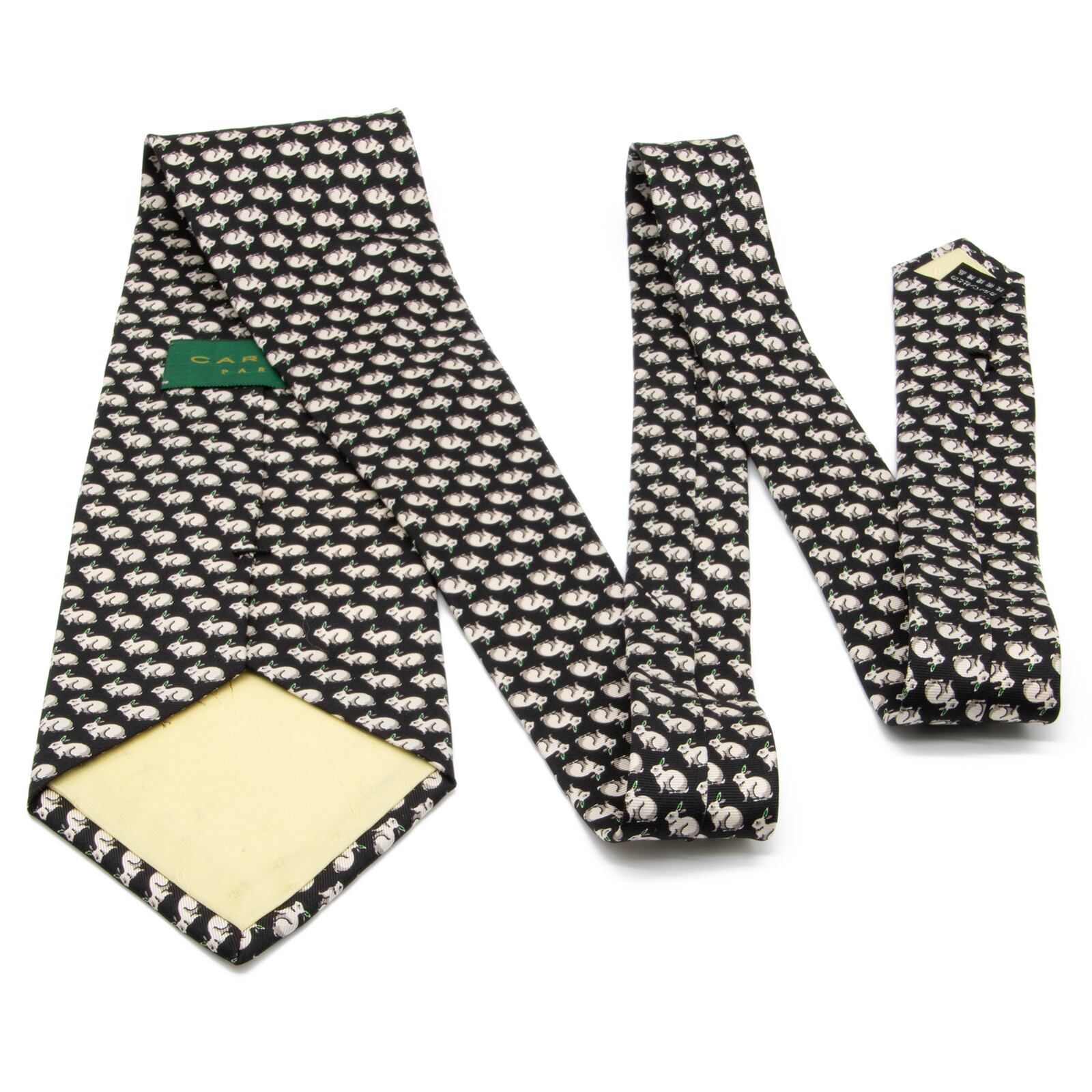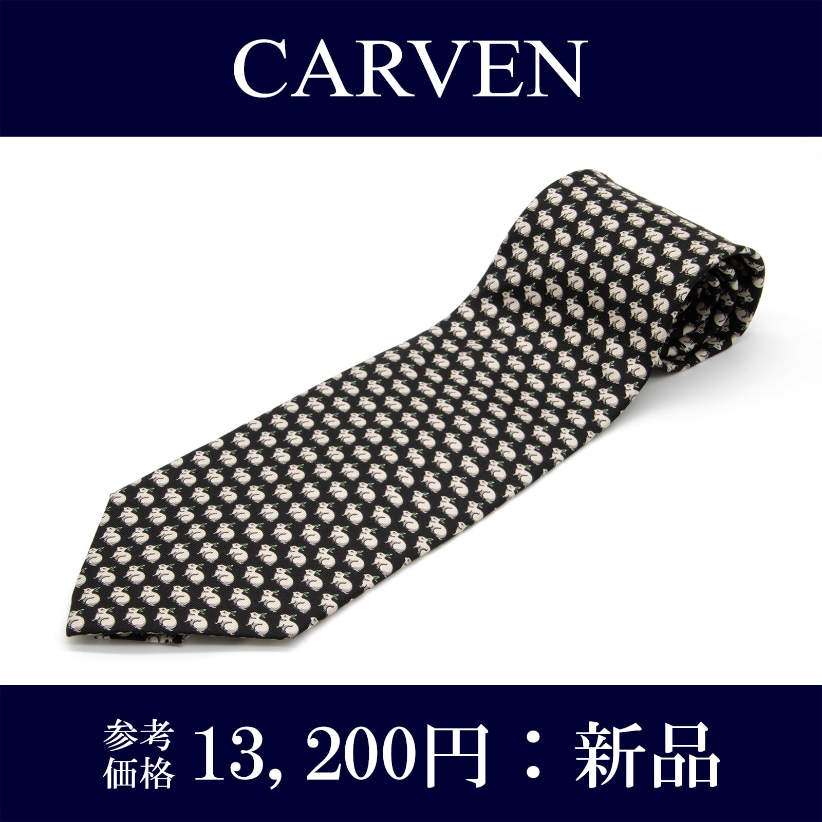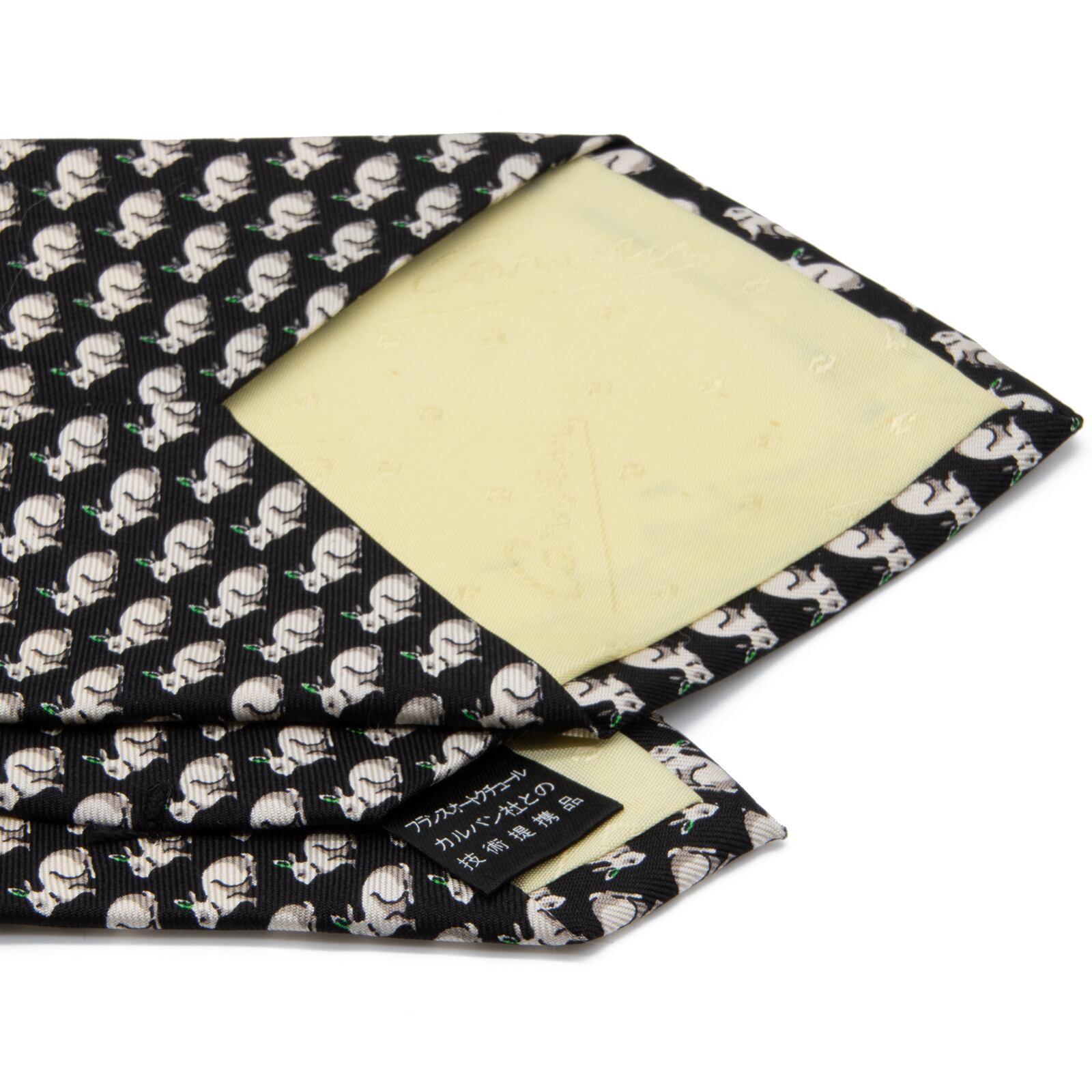 【本物・送料無料・新品】カルヴェン・小紋ネクタイ(シルク・綺麗・ウサギ・兎・レア・動物・ホワイト・ブラック・かわいい・N024)