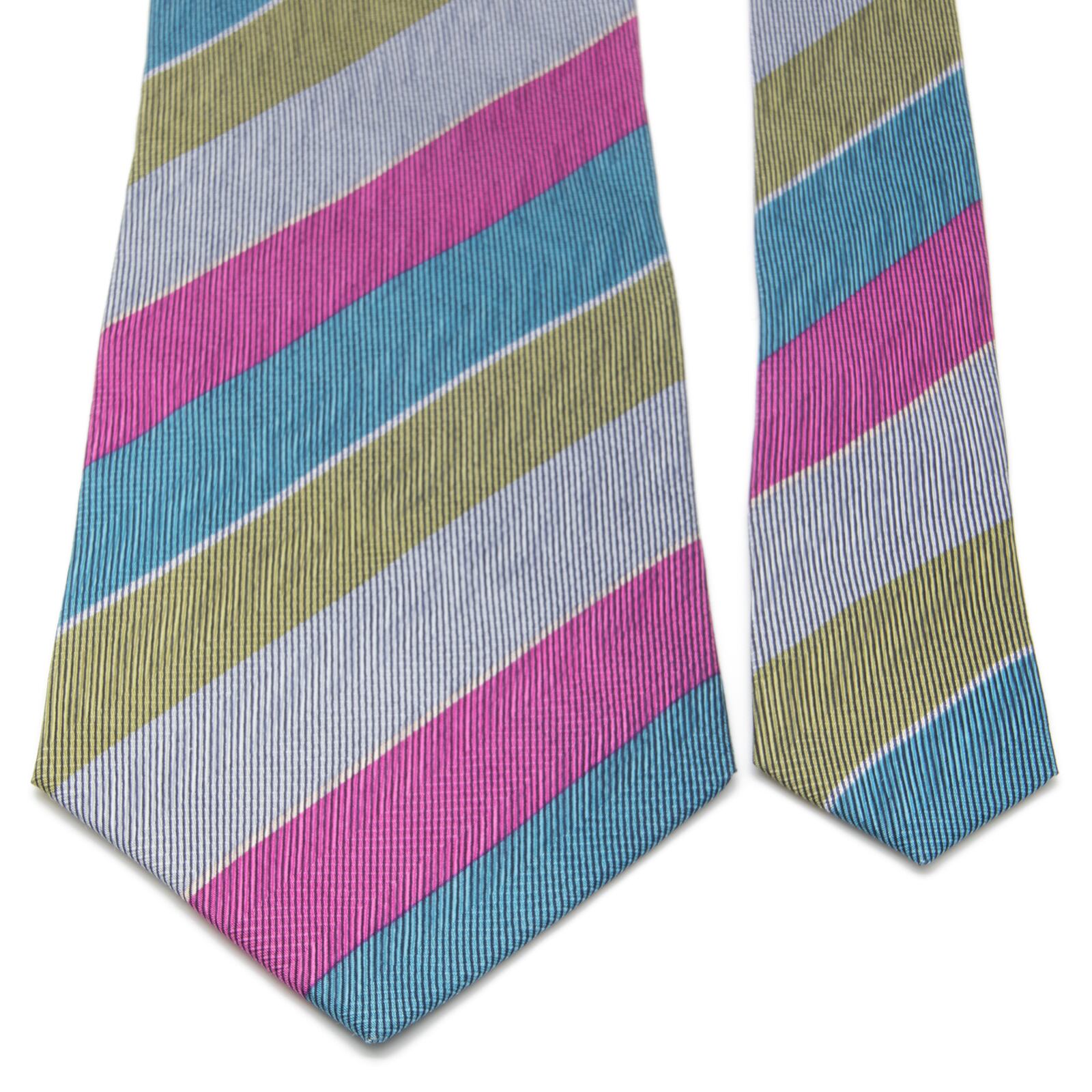 2023年6月28日、日本最大級の古物市場・エコリングで購入いたしました、カルヴェンのマルチ・ストライプネクタイでございます。
