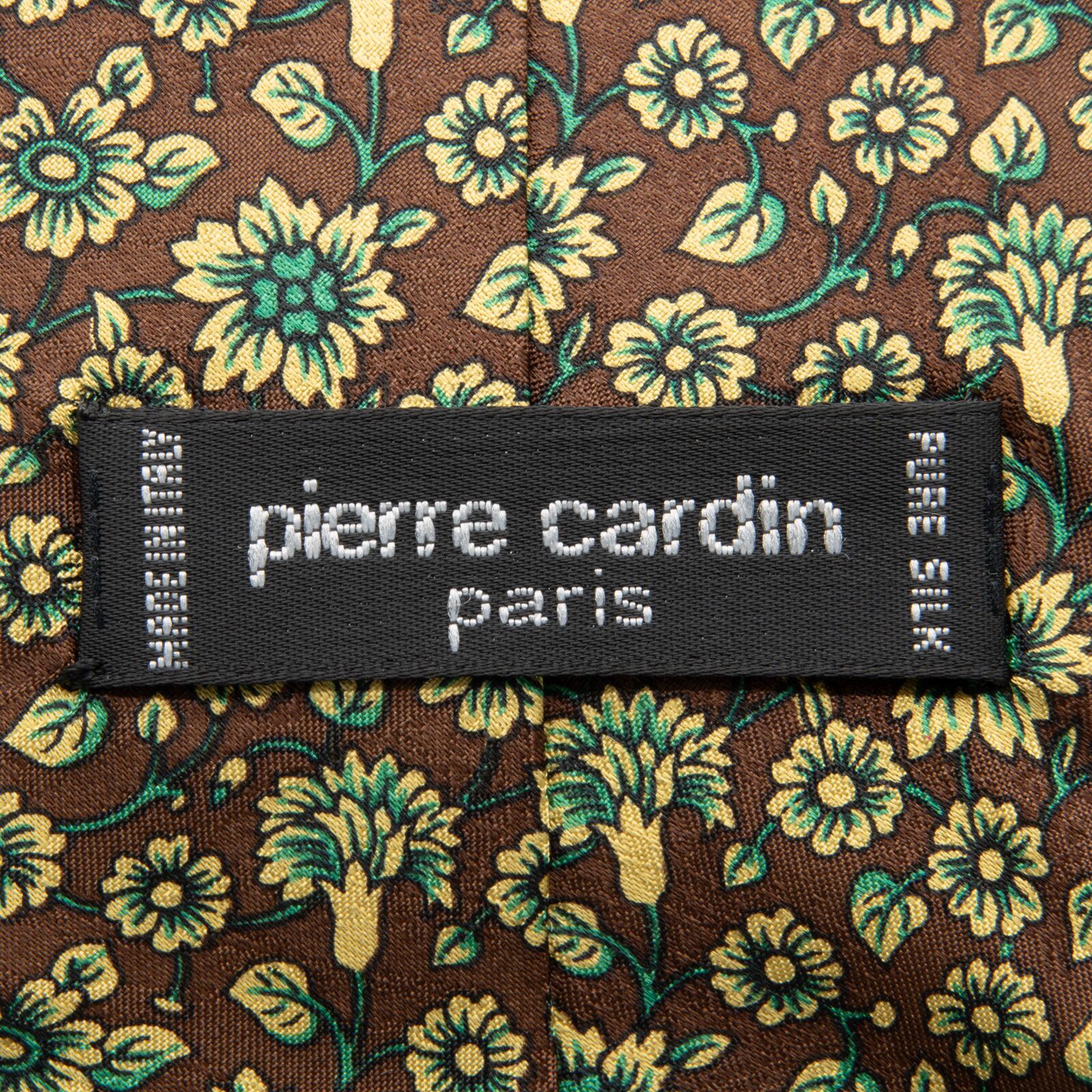 【本物・送料無料・極美品】ピエール・カルダン・オールオーバーネクタイ(シルク・綺麗・花・グリーン・ブラウン・パープル・N026)