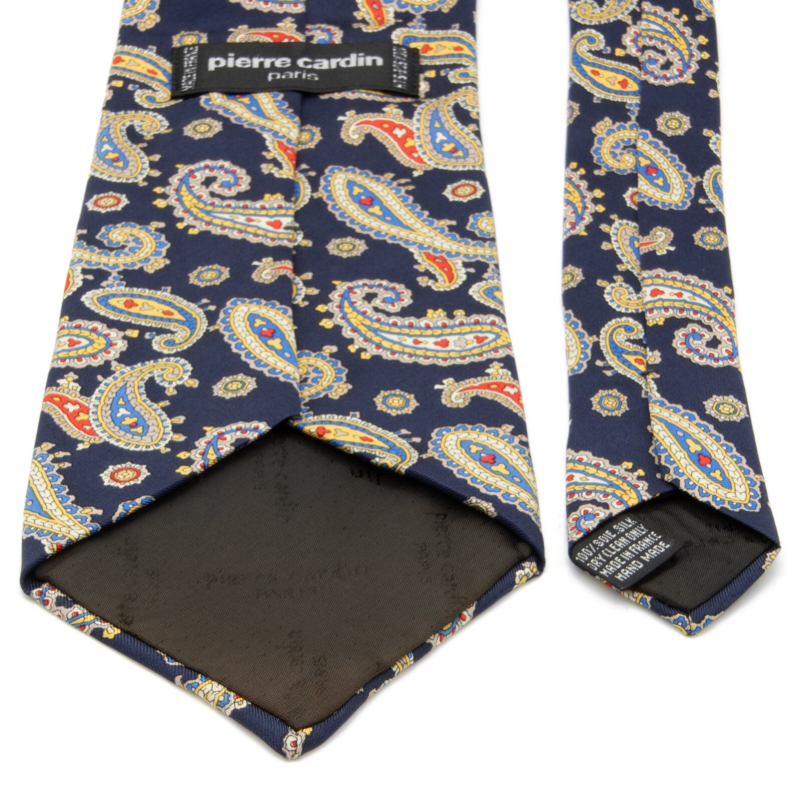 【本物・送料無料・極美品】ピエール・カルダン・ペイズリーネクタイ(シルク・綺麗・ネイビーブルー・レッド・イエロー・N029)